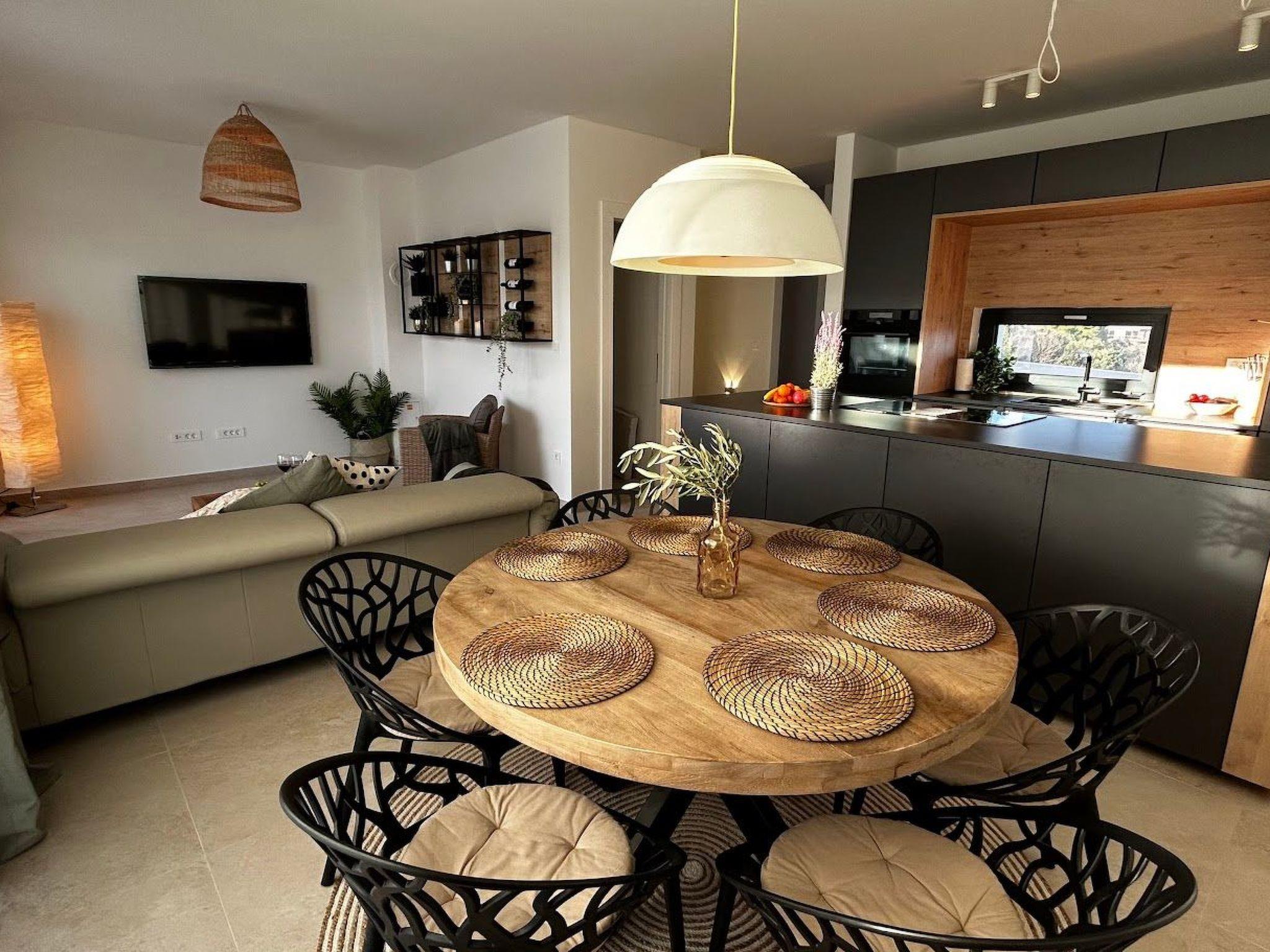 Inside, the villa presents a spacious living room complemented by a fully equipped kitchen and dining room, ensuring a homely atmosphere. Guests will find three tastefully decorated bedrooms, offering a restful night's sleep for up to six people. The villa is fitted with two modern bathrooms and a convenient guest toilet, adding to the comfort and privacy of your stay. Air conditioning throughout the villa, alongside extras such as a coffee machine capsules/pods, dishwasher, an electric kettle, and a mini oven, ensure every need is met with sophistication.