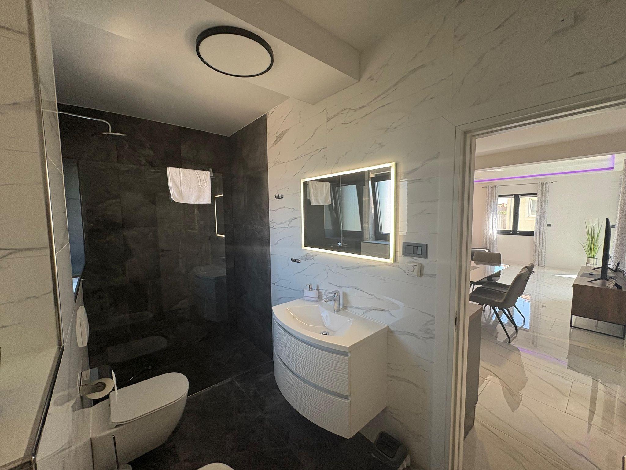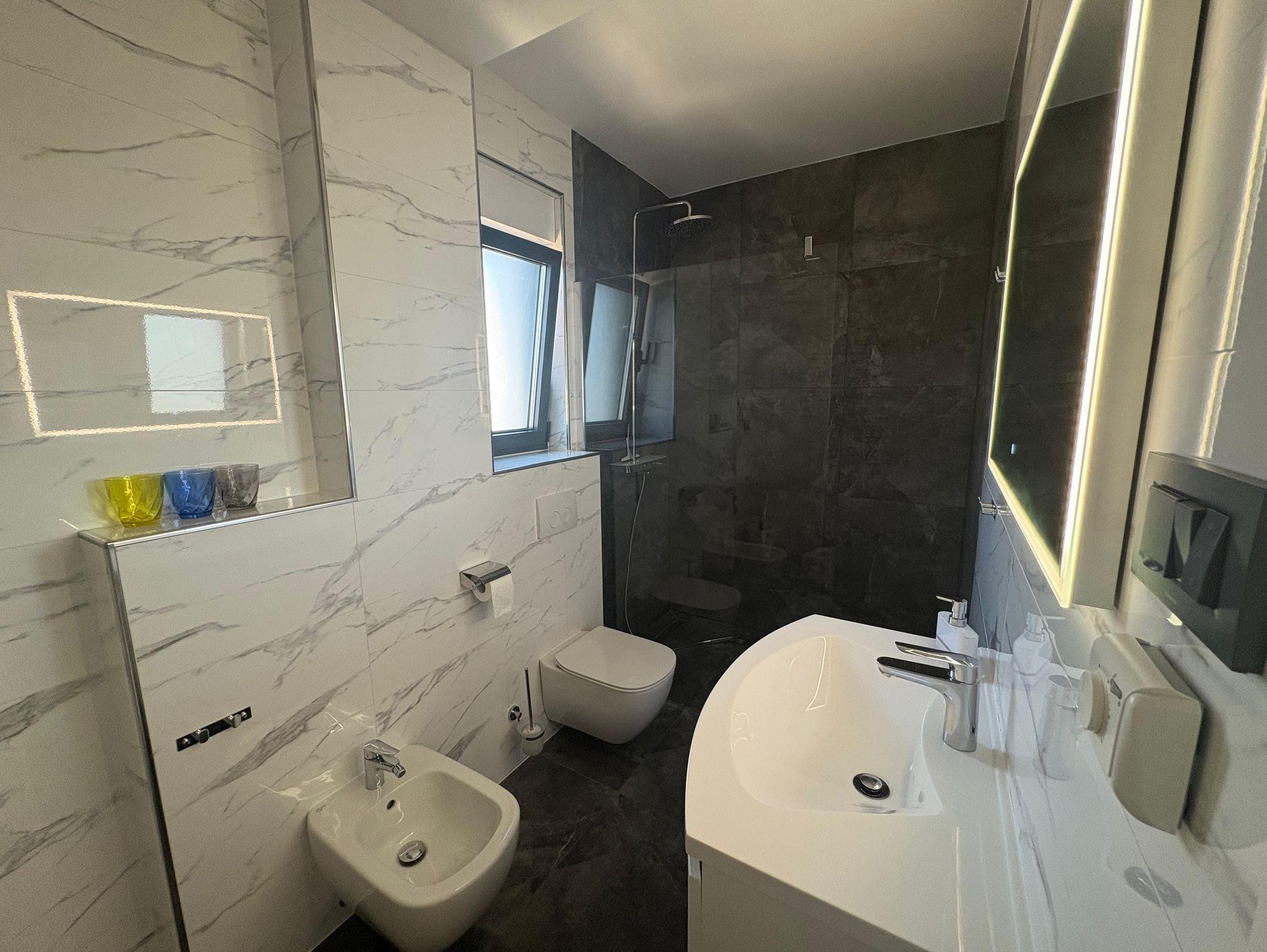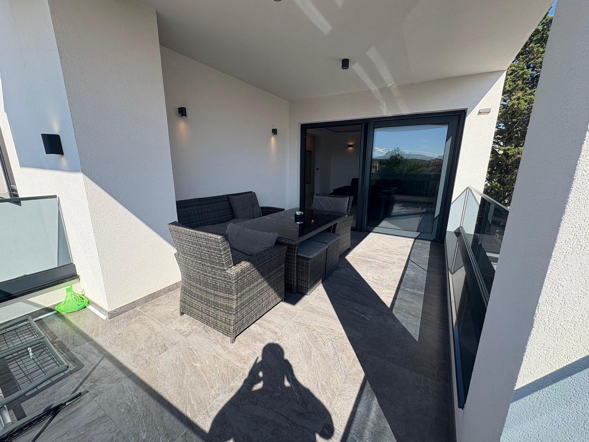 Ferienwohnung bietet Platz für 5 Gäste. Die Betten sind in Schlafzimmern, die es 2 gibt, und in Wohnzimmer, innerhalb einer Gesamtfläche von 72m2, angeordnet. Die Gäste haben eine eigene Terrasse zur Verfügung, auf der sie in warmen Sommernächten genießen können. Das Apartment bietet Meerblick. Es ist erlaubt, Speisen auf dem Gemeinschafts-Grill vorzubereiten. IM PREIS INBEGRIFFEN: Kurtaxe, Endreinigung, Klimatisierung, Zentralheizung, Parkplatz, Internet, Wäschewaschen, Kinderbett, Bügeleisen, Bügelbrett, Föhn. Die Verfügbarkeit zusätzlicher Dienstleistungen in Ihrem reservierten Termin und die Preise derselben (falls nicht aufgeführt) müssen im Voraus überprüft werden. Zusätzliche Dienstleistungen die in der Zahlungsaufforderung nicht aufgeführt sind werden direkt beim Vermieter bezahlt, angenommen der Gast nutzt auch diese. Ermäßigung auf den Grundpreis: Gratistag 14=13 (bei einem Aufenthalt von 14 Tagen oder mehr erhalten Sie einen Gratistag für den Aufenthalt bis 31.12.26).