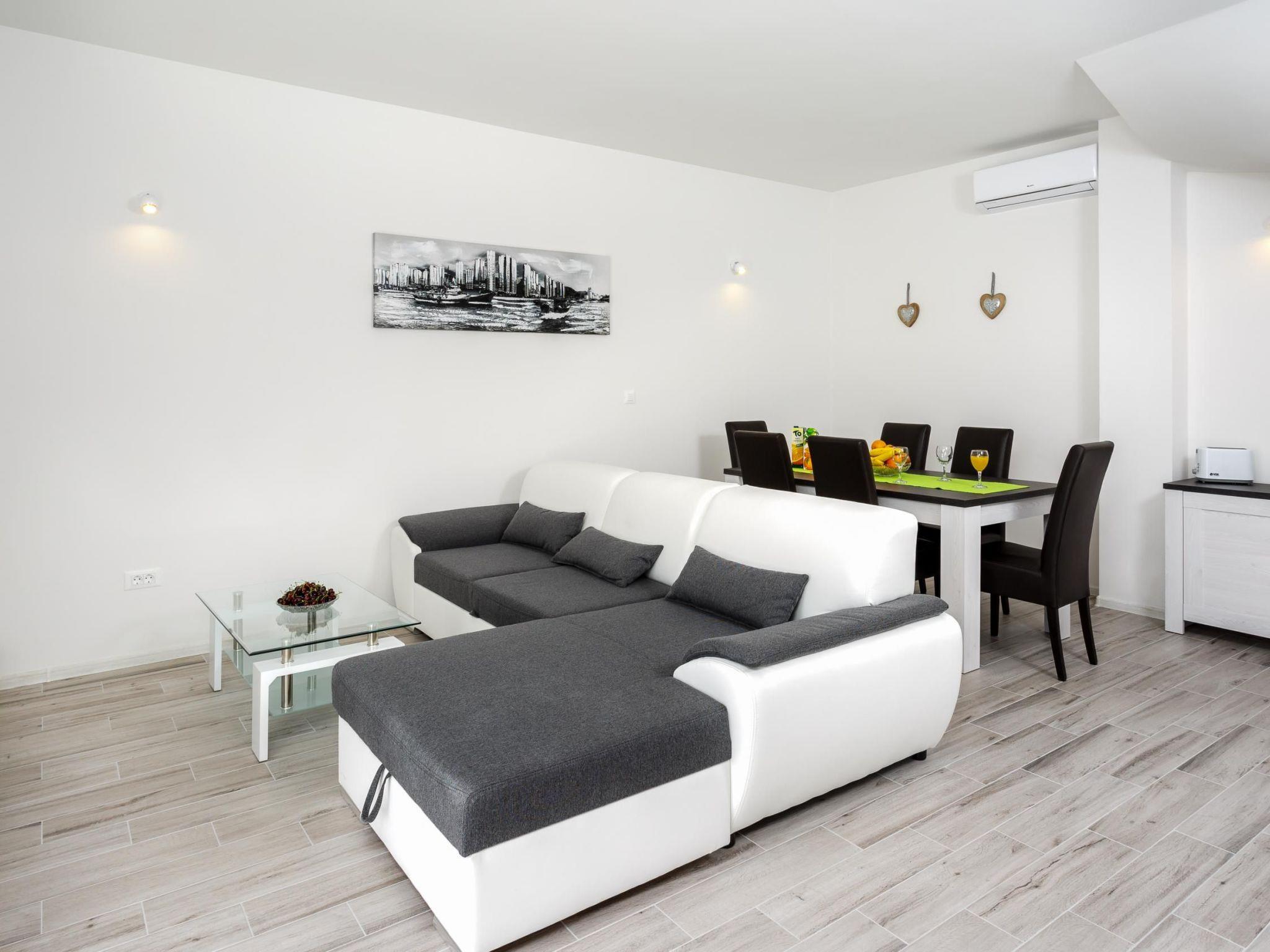 The village centre is about 2km away, just five minutes by car. Here you can find shops, three supermarkets, a bakery, colourful street markets, a post office and a good range of cafés and restaurants. It is about 14km to Omiš and about 16km to Split with its famous Diocletian Palace. In Omiš there is a very well-maintained and clean sandy beach with two little cafés, a jet-ski rental and also rafting, canyoning, kayaking, diving, zipline, banana boat ride, parasailing, boat trips to the islands etc. The nearest bus stop is about 2km away by the main road, with regular connections to Omiš and Split.