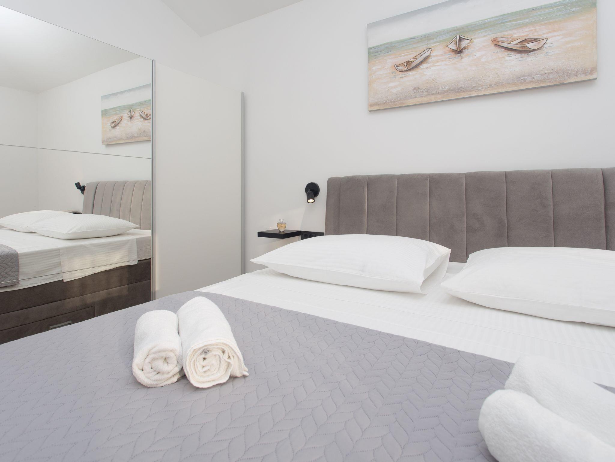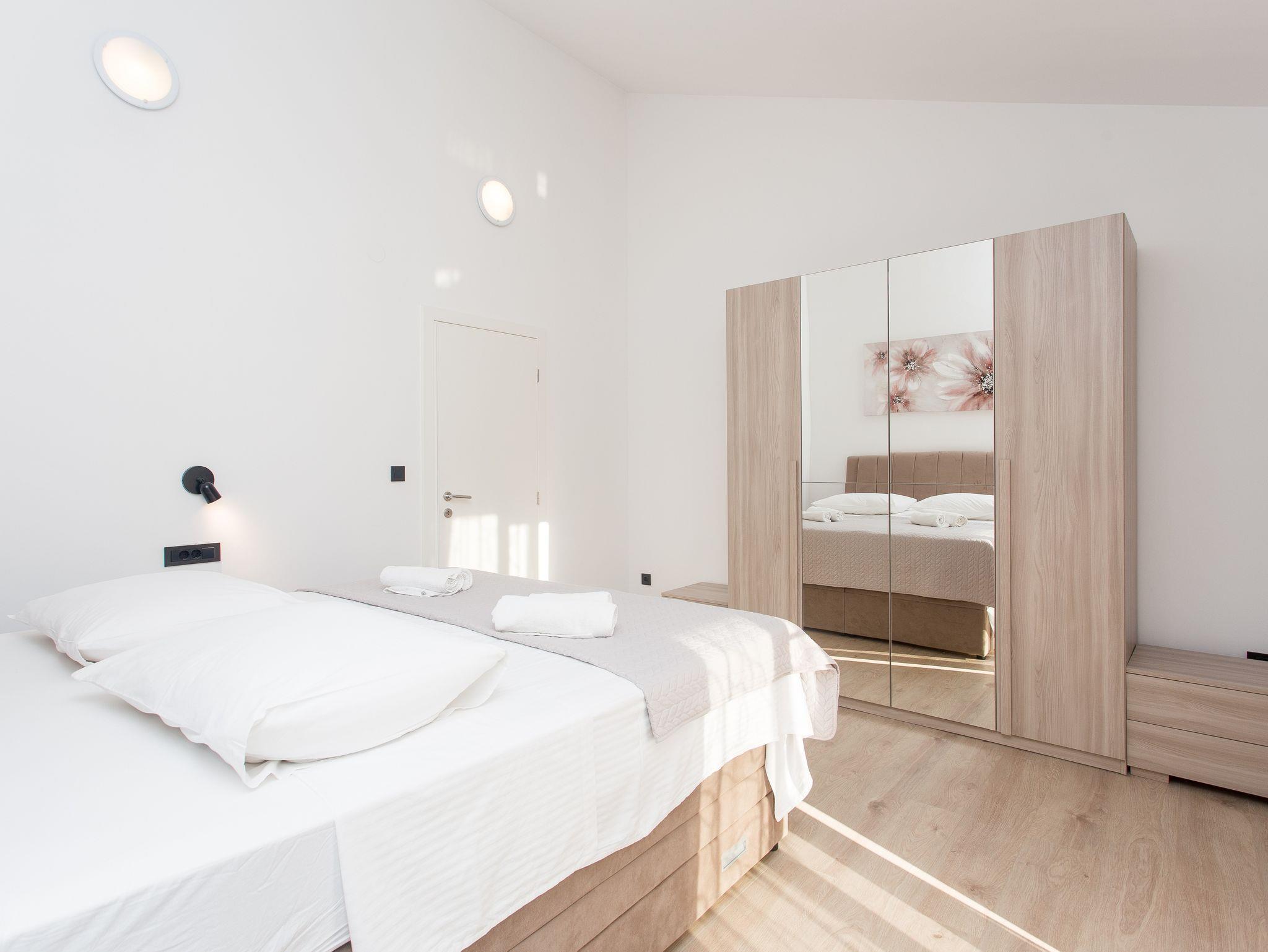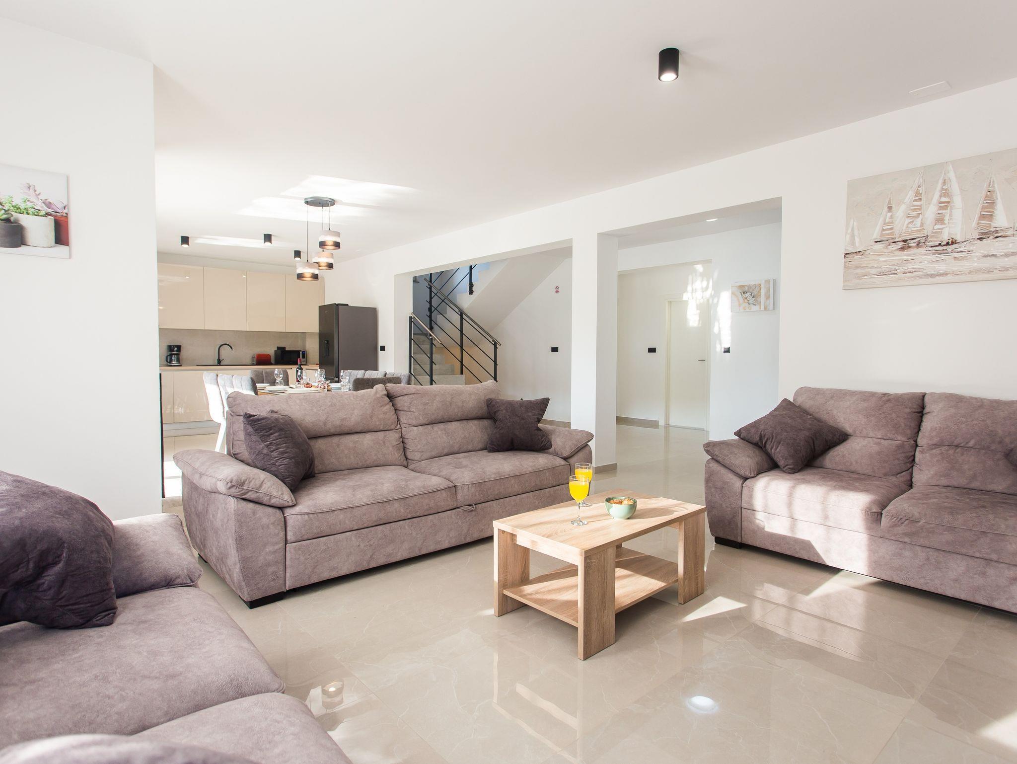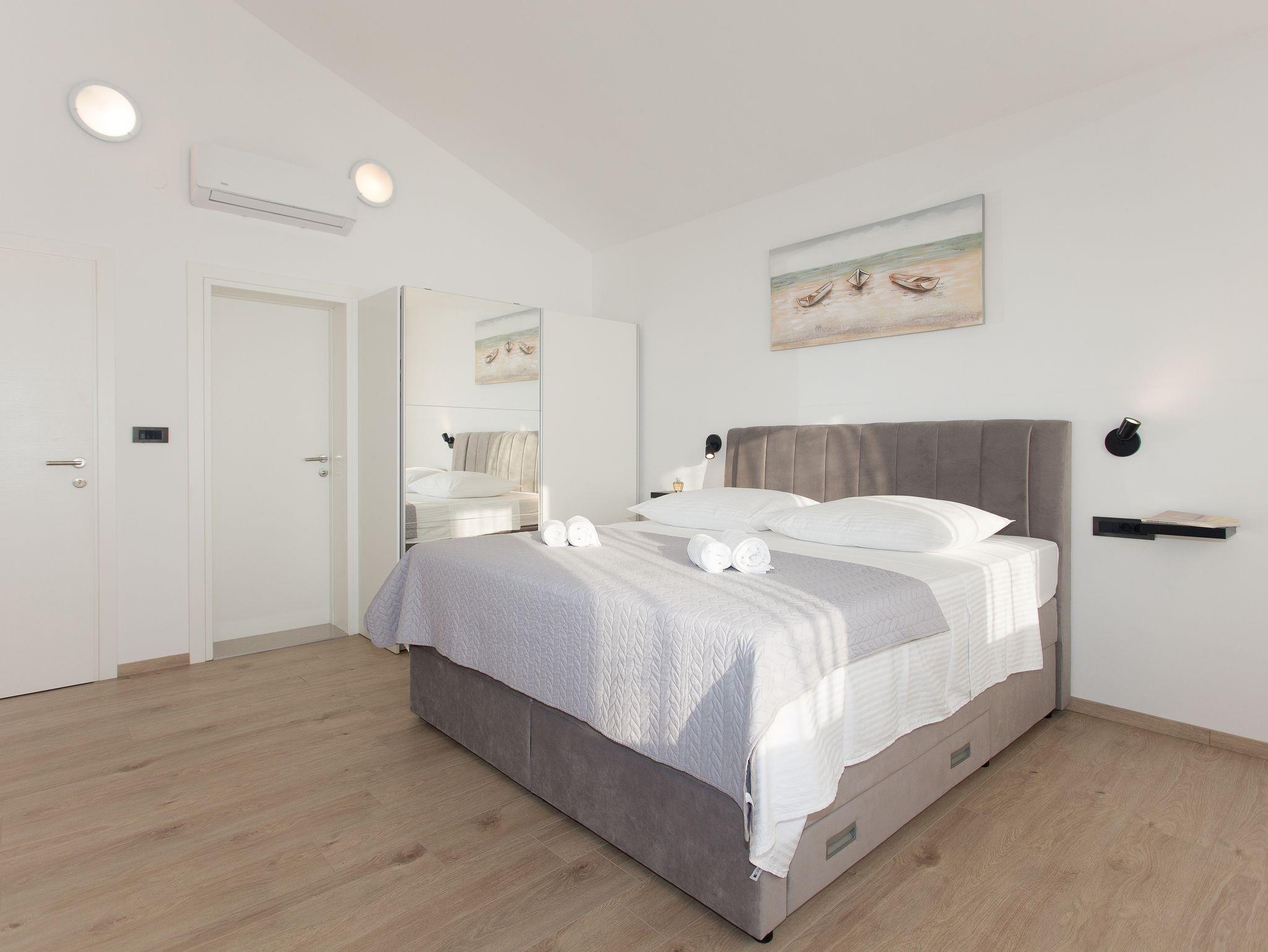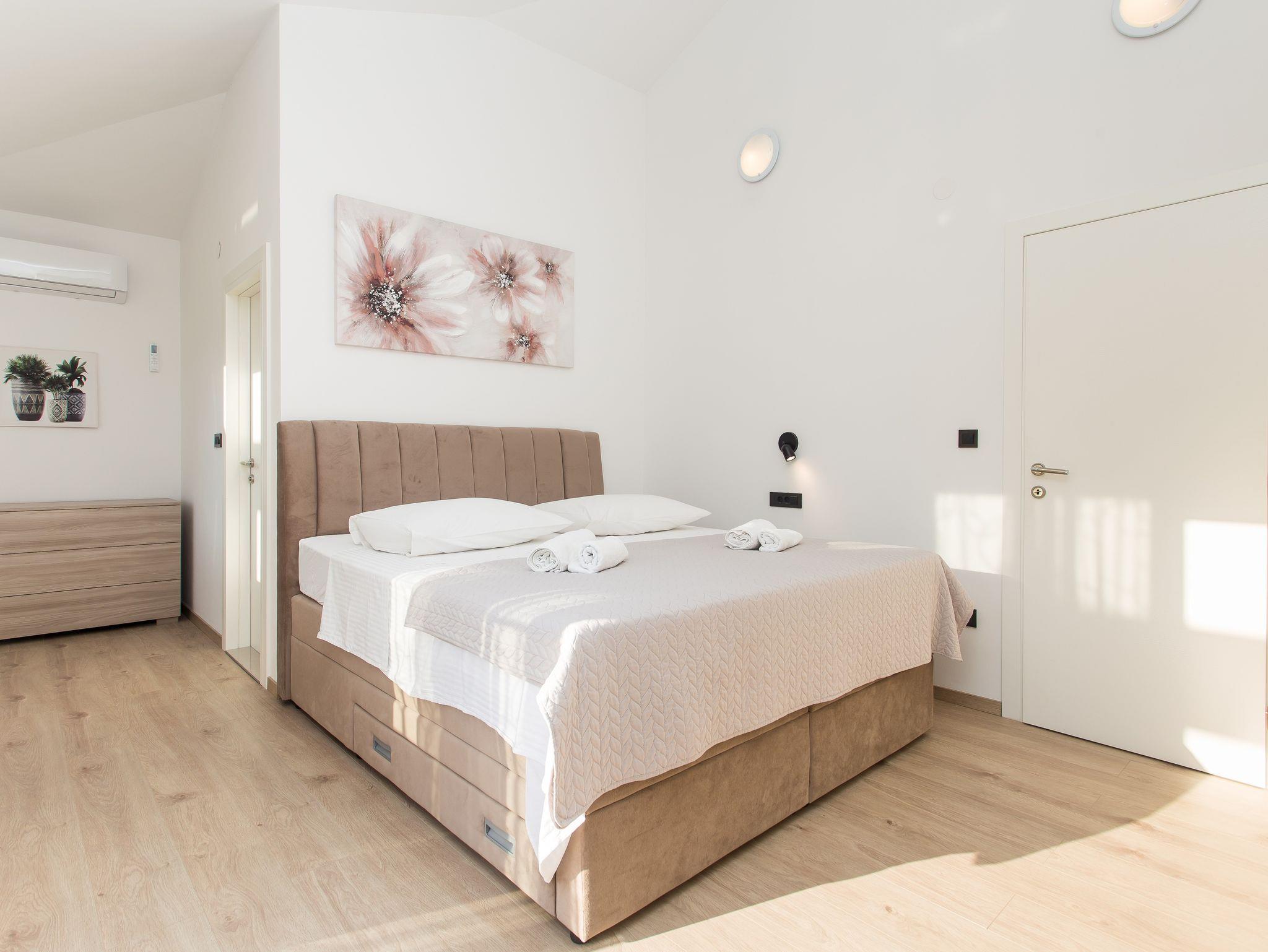 Haus bietet Platz für 10 Gäste. Die Betten sind in Schlafzimmern, die es 5 gibt, innerhalb einer Gesamtfläche von 184m2, angeordnet. Die Gäste haben eine eigene Terrasse zur Verfügung, auf der sie in warmen Sommernächten genießen können. Für vollen Genuss und Entspannung gibt es einen privaten Grill für Gäste dieser Unterkunft. Während ihres Aufenthalts können sich Gäste im privaten Schwimmbad entspannen. IM PREIS INBEGRIFFEN: Kurtaxe, Endreinigung, Klimatisierung, Pool, Parkplatz, Internet, Kinderbett, Bügeleisen, Bügelbrett, Föhn. Die Verfügbarkeit zusätzlicher Dienstleistungen in Ihrem reservierten Termin und die Preise derselben (falls nicht aufgeführt) müssen im Voraus überprüft werden. Zusätzliche Dienstleistungen die in der Zahlungsaufforderung nicht aufgeführt sind werden direkt beim Vermieter bezahlt, angenommen der Gast nutzt auch diese.