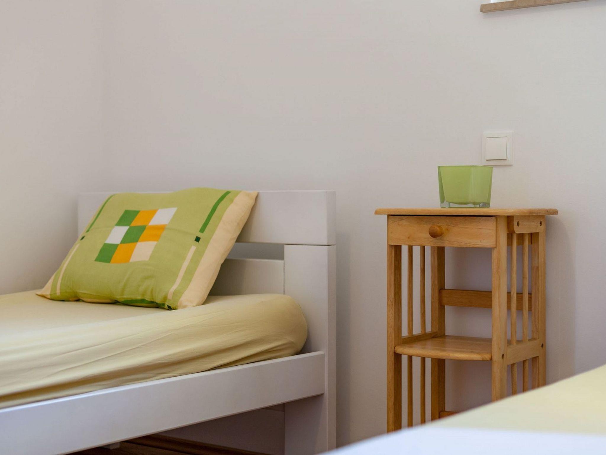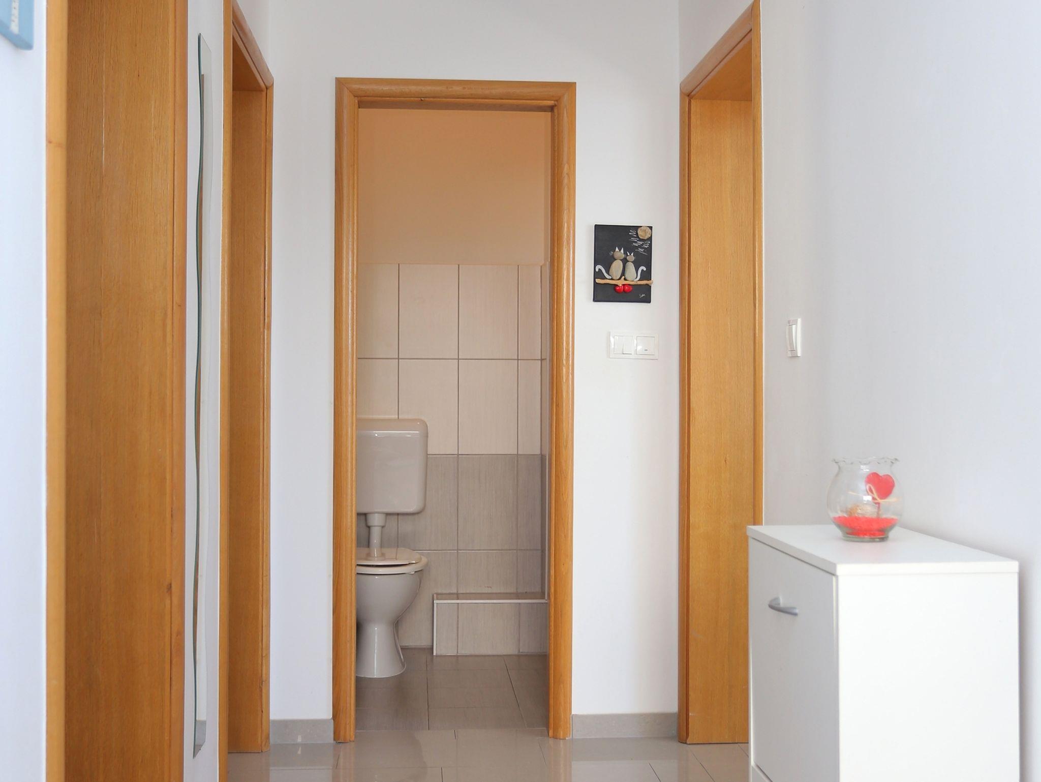 Ferienwohnung bietet Platz für 6 Gäste. Die Betten sind in Schlafzimmern, die es 2 gibt, und in Wohnzimmer, innerhalb einer Gesamtfläche von 51m2, angeordnet. Die Gäste haben eine eigene Terrasse zur Verfügung, auf der sie in warmen Sommernächten genießen können. Das Apartment bietet Meerblick. Es ist erlaubt, Speisen auf dem Gemeinschafts-Grill vorzubereiten. In der Unterkunftseinheit besteht die Möglichkeit des Mitbringens von Haustieren gegen Aufpreis. IM PREIS INBEGRIFFEN: Kurtaxe, Endreinigung, Klimatisierung, Parkplatz, Internet, Kinderbett, Bügeleisen, Bügelbrett, Föhn. VERBINDLICHE ZUSÄTZLICHE KOSTEN: Aufzahlung für Kurzaufenthalte (prozentualer Zuschlag pro Nächtigungsanzahl: 30% - 1, 20% - 2, 10% - 3). UNVERBINDLICHE ZUSÄTZLICHE KOSTEN: Wäschewaschen (5,00 € Waschen), Haustiere (5,00 € pro Nacht). Die Verfügbarkeit zusätzlicher Dienstleistungen in Ihrem reservierten Termin und die Preise derselben (falls nicht aufgeführt) müssen im Voraus überprüft werden. Zusätzliche Dienstleistungen die in der Zahlungsaufforderung nicht aufgeführt sind werden direkt beim Vermieter bezahlt, angenommen der Gast nutzt auch diese.