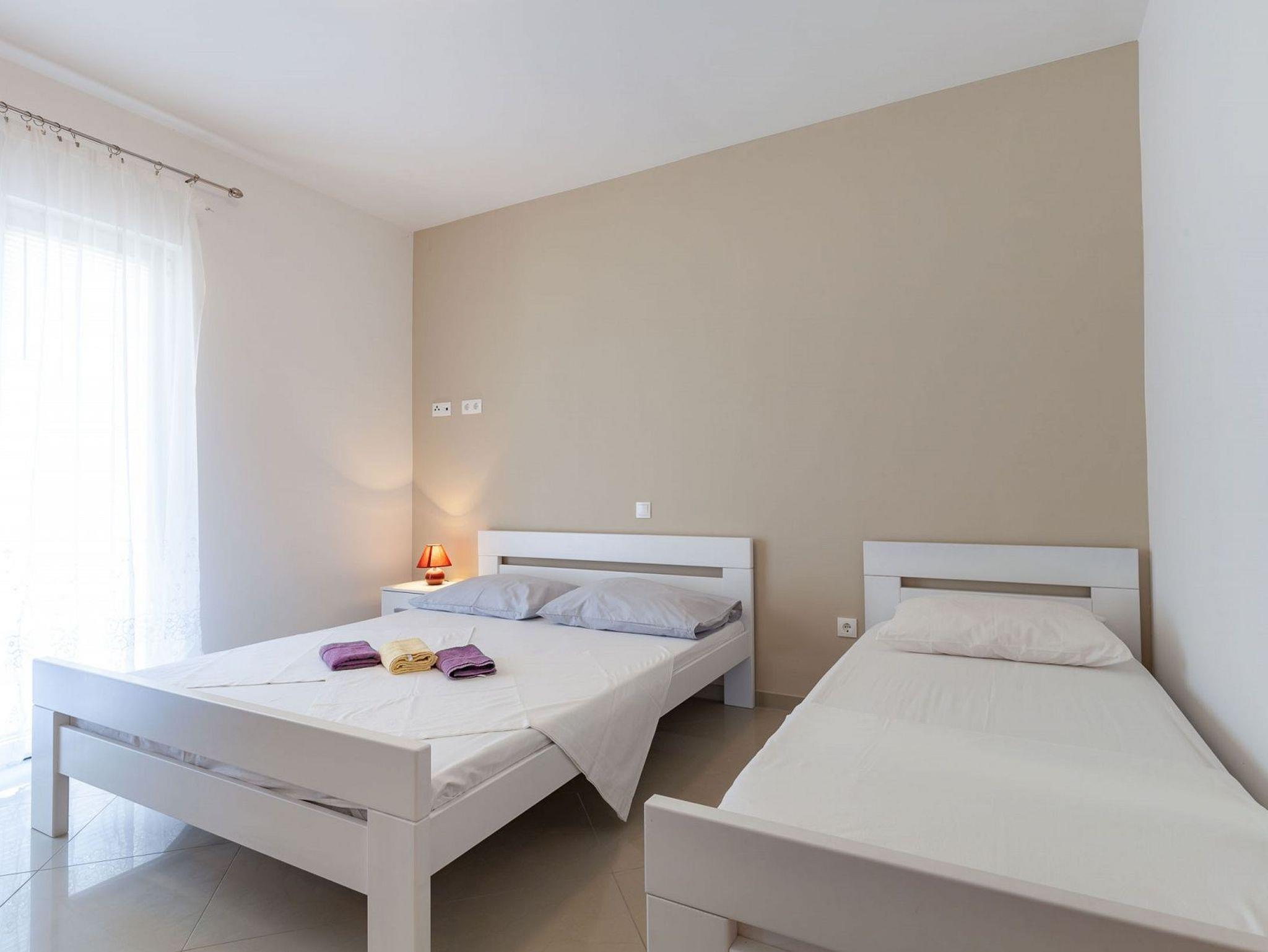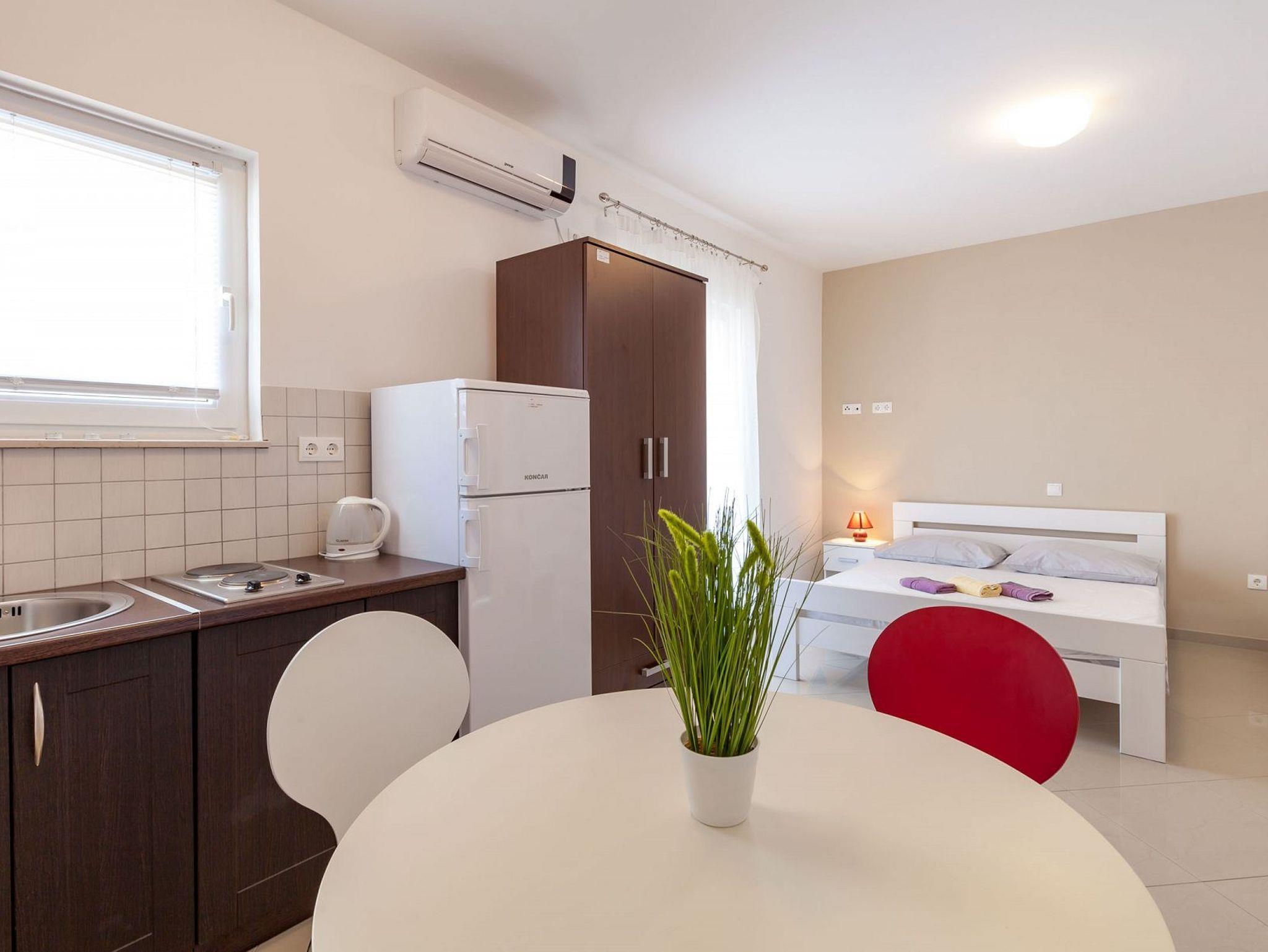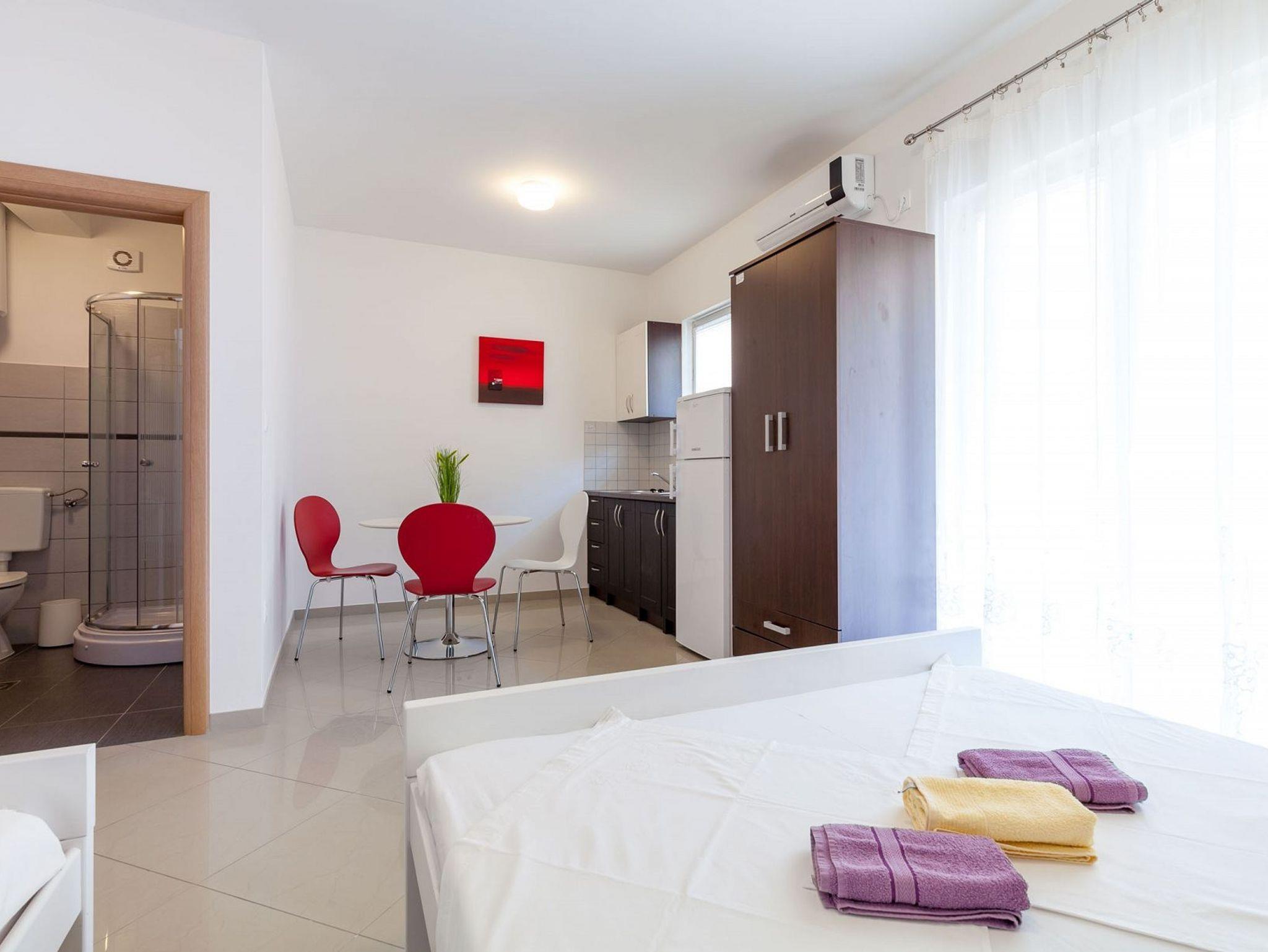 Studio bietet Platz für 3 Gäste. Die Betten sind in Schlafzimmern, die es 1 gibt, innerhalb einer Gesamtfläche von 24m2, angeordnet. Die Gäste haben eine eigene Terrasse zur Verfügung, auf der sie in warmen Sommernächten genießen können. Das Studio-Apartment bietet Meerblick. Es ist erlaubt, Speisen auf dem Gemeinschafts-Grill vorzubereiten. In der Unterkunftseinheit besteht die Möglichkeit des Mitbringens von Haustieren gegen Aufpreis. Durch die Terrasse der gebuchten Unterkunftseinheit gehen auch andere Gäste oder Vermieter. IM PREIS INBEGRIFFEN: Kurtaxe, Endreinigung, Klimatisierung, Parkplatz, Internet, Kinderbett, Bügeleisen, Bügelbrett, Föhn. VERBINDLICHE ZUSÄTZLICHE KOSTEN: Aufzahlung für Kurzaufenthalte (prozentualer Zuschlag pro Nächtigungsanzahl: 30% - 1, 20% - 2, 10% - 3). UNVERBINDLICHE ZUSÄTZLICHE KOSTEN: Wäschewaschen (5,00 € Waschen), Haustiere (5,00 € pro Nacht). Die Verfügbarkeit zusätzlicher Dienstleistungen in Ihrem reservierten Termin und die Preise derselben (falls nicht aufgeführt) müssen im Voraus überprüft werden. Zusätzliche Dienstleistungen die in der Zahlungsaufforderung nicht aufgeführt sind werden direkt beim Vermieter bezahlt, angenommen der Gast nutzt auch diese.