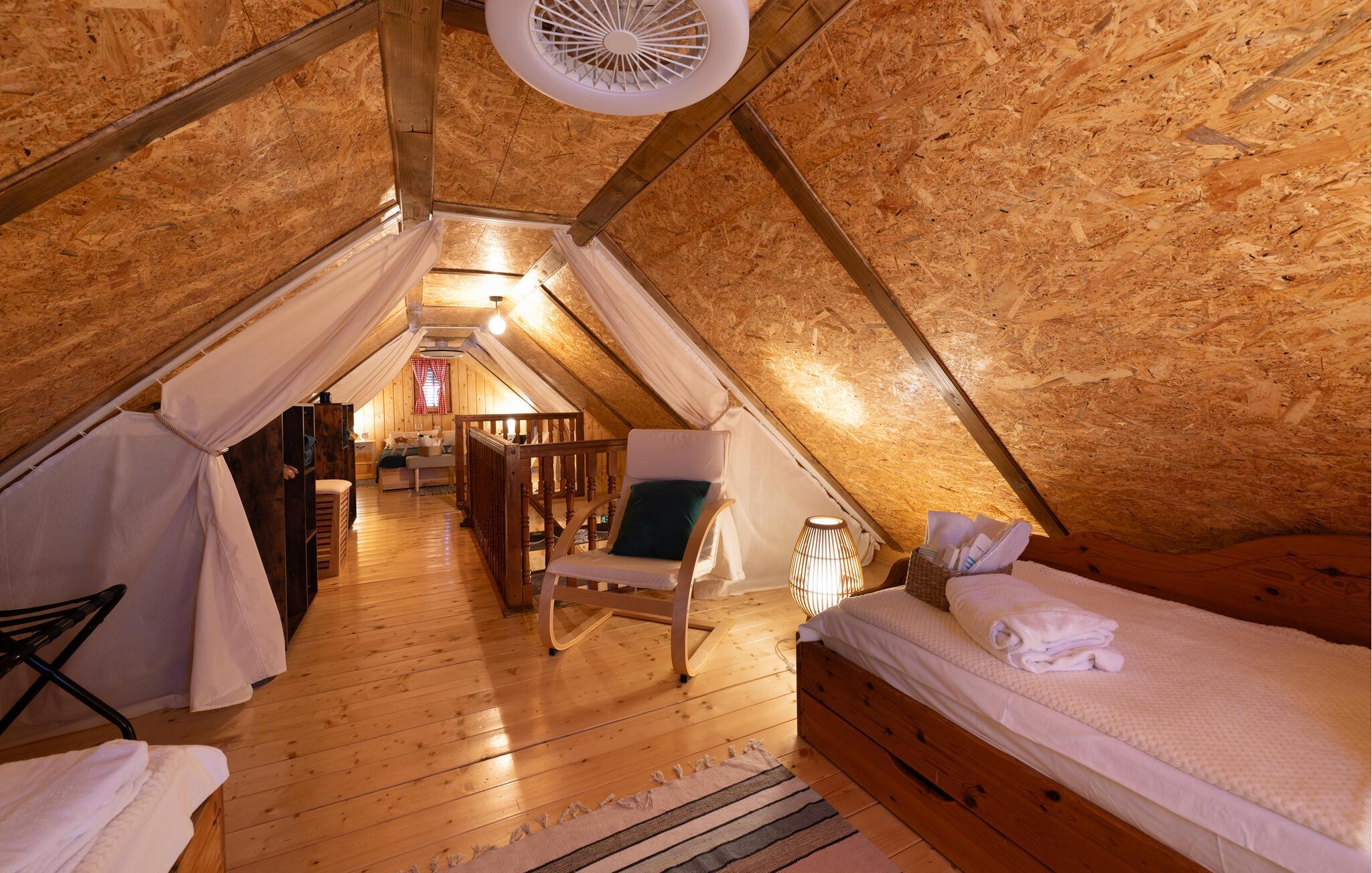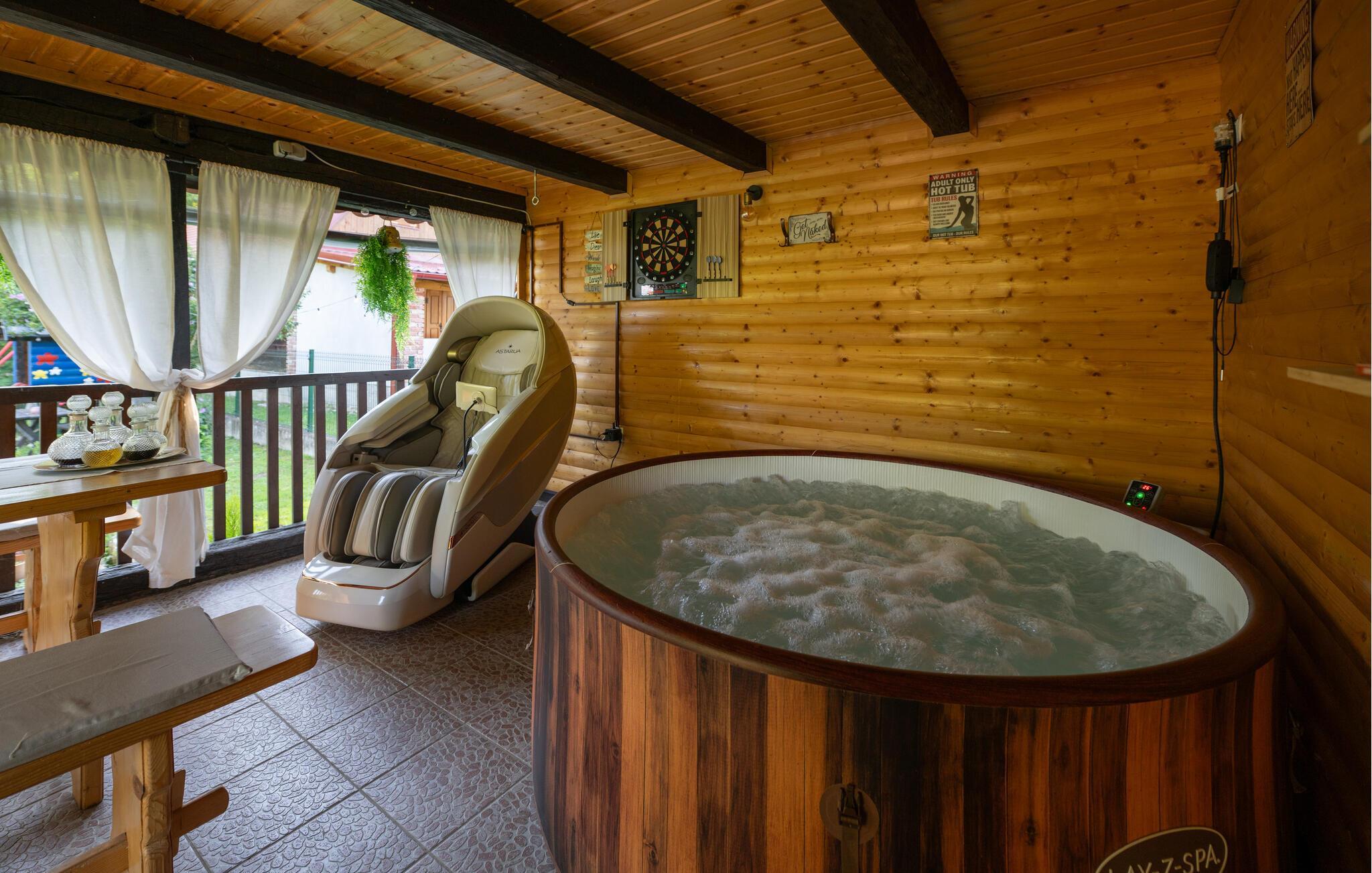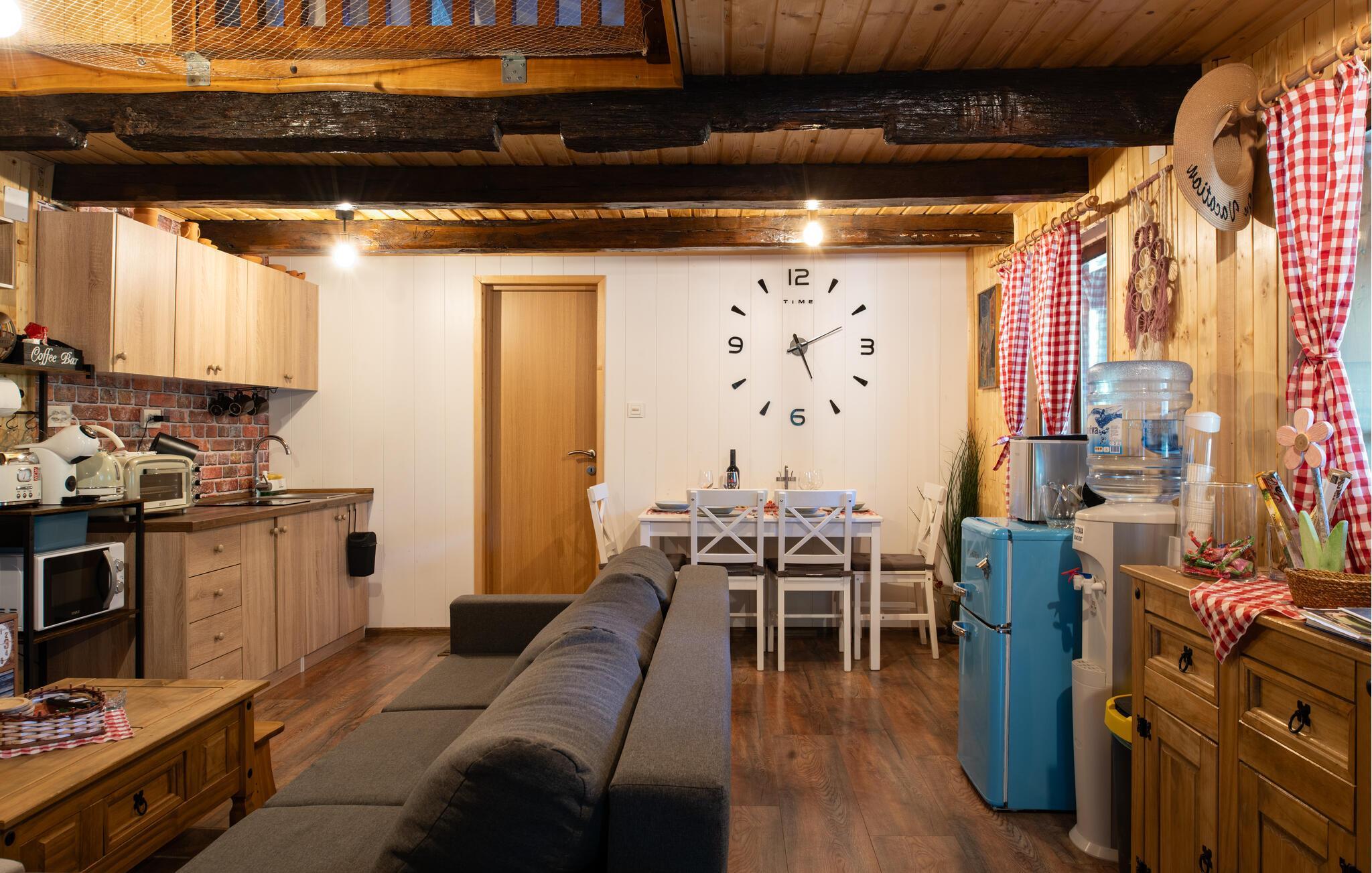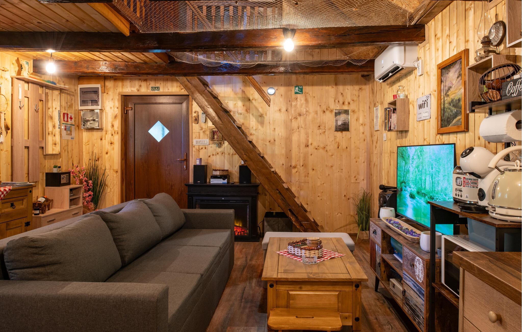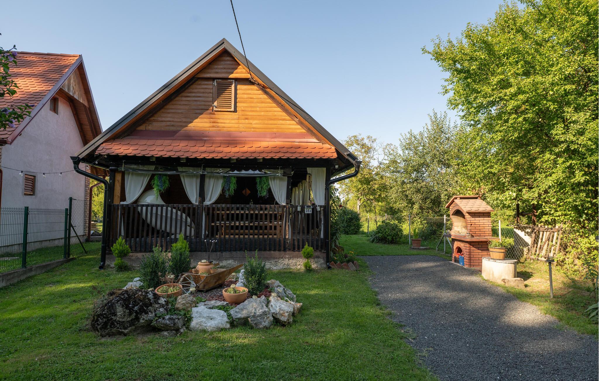 Nyd en afslappende ferie i dette charmerende feriehus med spabad og sauna. Dette smukke hus kombinerer rustik charme og moderne komfort på en indbydende måde. Et varmt trælook, en rummelig sofagruppe og gennemtænkte detaljer skaber et hyggeligt hjem væk fra hjemmet fra første øjeblik. Tilbered lækre måltider i det moderne køkken og server dem med et glas vin. Forkæl jer selv med afslappende timer i spabadet eller saunaen, og lad pejsen skabe en hyggelig og behagelig atmosfære på køligere aftener. Den idylliske have inviterer jer til at slappe af hele dagen. Start morgenen med morgenmad på terrassen omgivet af grønne områder eller nyd en hyggelig middag under stjernerne. Mens børnene spiller badminton eller fodbold så meget de vil, kan I læne jer tilbage og slappe af med en kop kaffe. Vandet er lige uden for døren og inviterer jer til en forfriskende dukkert eller tilbringe afslappende øjeblikke ved bredden. Udforsk den omkringliggende natur på en vandretur eller cykeltur langs maleriske flodlandskaber. Tag en tur til den nærliggende by Petrinja og oplev dens charmerende gamle bydel med historiske bygninger og hyggelige caféer. Prøv regionale specialiteter i traditionelle kroer og bliv betaget af den varme gæstfrihed.