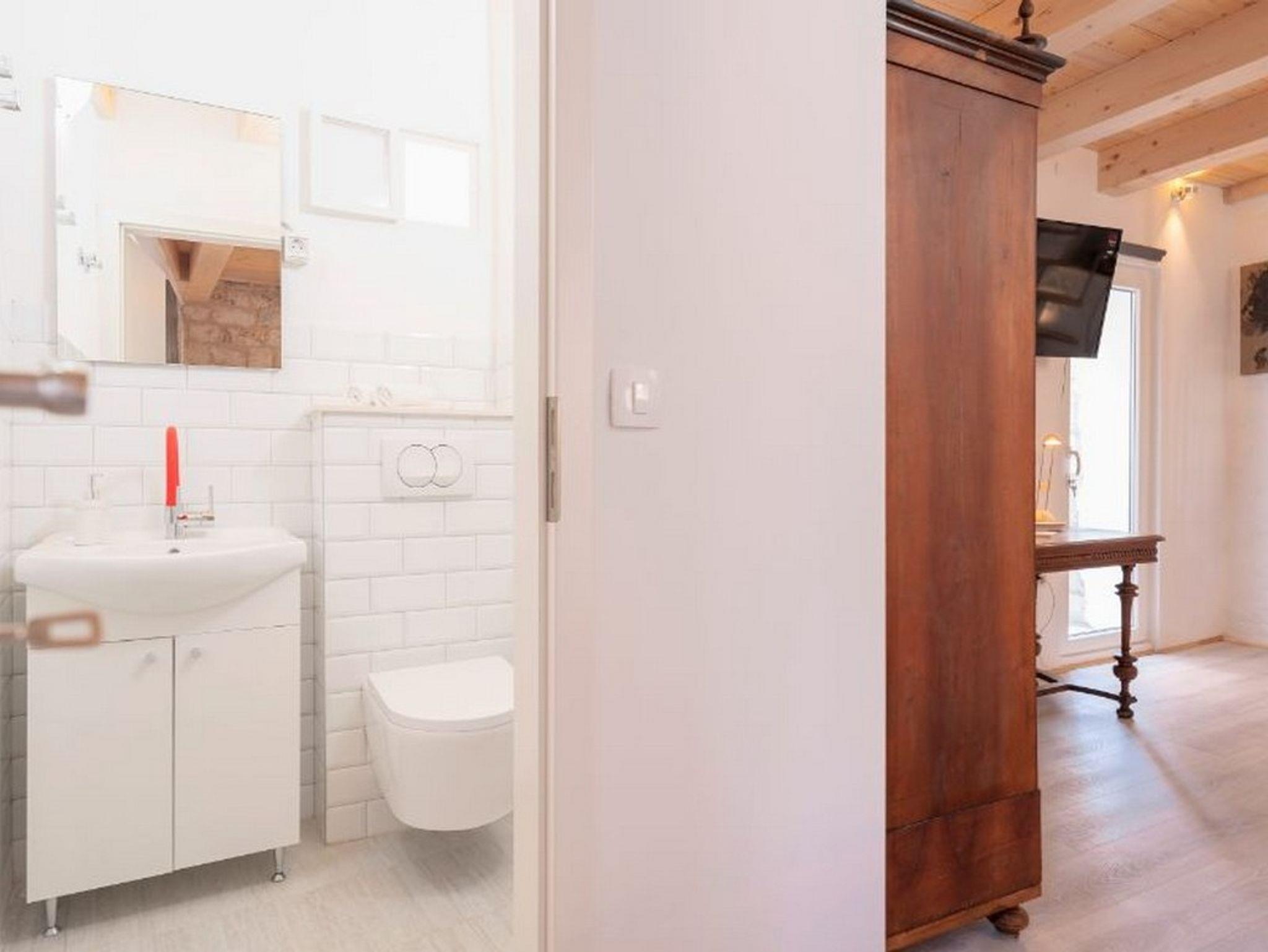 Haus bietet Platz für 2 Gäste. Die Betten sind in Schlafzimmern, die es 1 gibt, innerhalb einer Gesamtfläche von 66m2, angeordnet. Die Gäste haben eine eigene Terrasse zur Verfügung, auf der sie in warmen Sommernächten genießen können. In der Unterkunftseinheit besteht die Möglichkeit des Mitbringens von Haustieren gegen Aufpreis. IM PREIS INBEGRIFFEN: Kurtaxe, Endreinigung, Klimatisierung, Internet, Fahrrad, Föhn. VERBINDLICHE ZUSÄTZLICHE KOSTEN: Aufzahlung für Kurzaufenthalte (prozentualer Zuschlag pro Nächtigungsanzahl: 30% - 1, 20% - 2, 10% - 3). UNVERBINDLICHE ZUSÄTZLICHE KOSTEN: Haustiere (10,00 € pro Nacht). Die Verfügbarkeit zusätzlicher Dienstleistungen in Ihrem reservierten Termin und die Preise derselben (falls nicht aufgeführt) müssen im Voraus überprüft werden. Zusätzliche Dienstleistungen die in der Zahlungsaufforderung nicht aufgeführt sind werden direkt beim Vermieter bezahlt, angenommen der Gast nutzt auch diese. Ermäßigung auf den Grundpreis: Gratistag 14=13 (bei einem Aufenthalt von 14 Tagen oder mehr erhalten Sie einen Gratistag für den Aufenthalt bis 31.12.26).