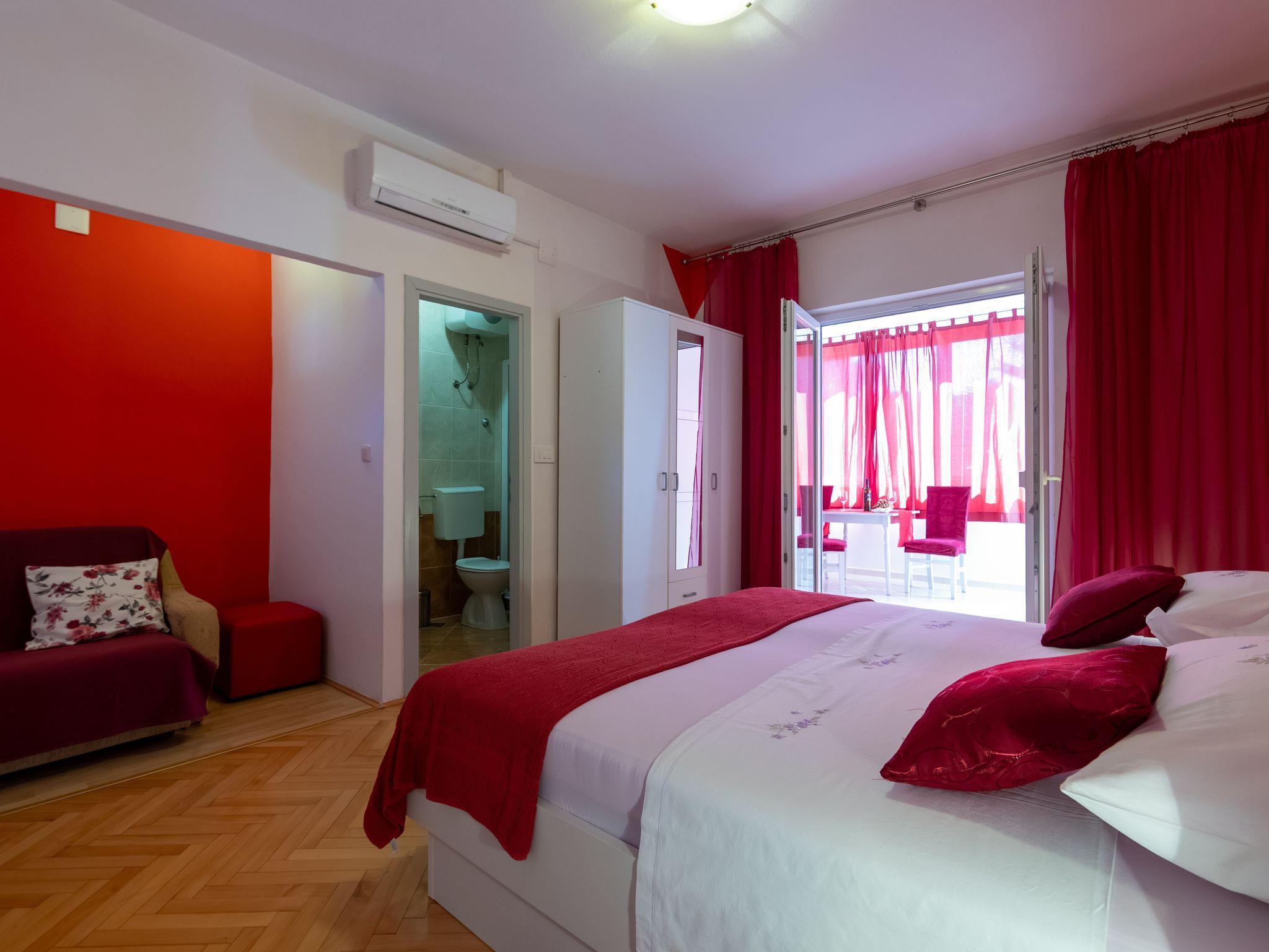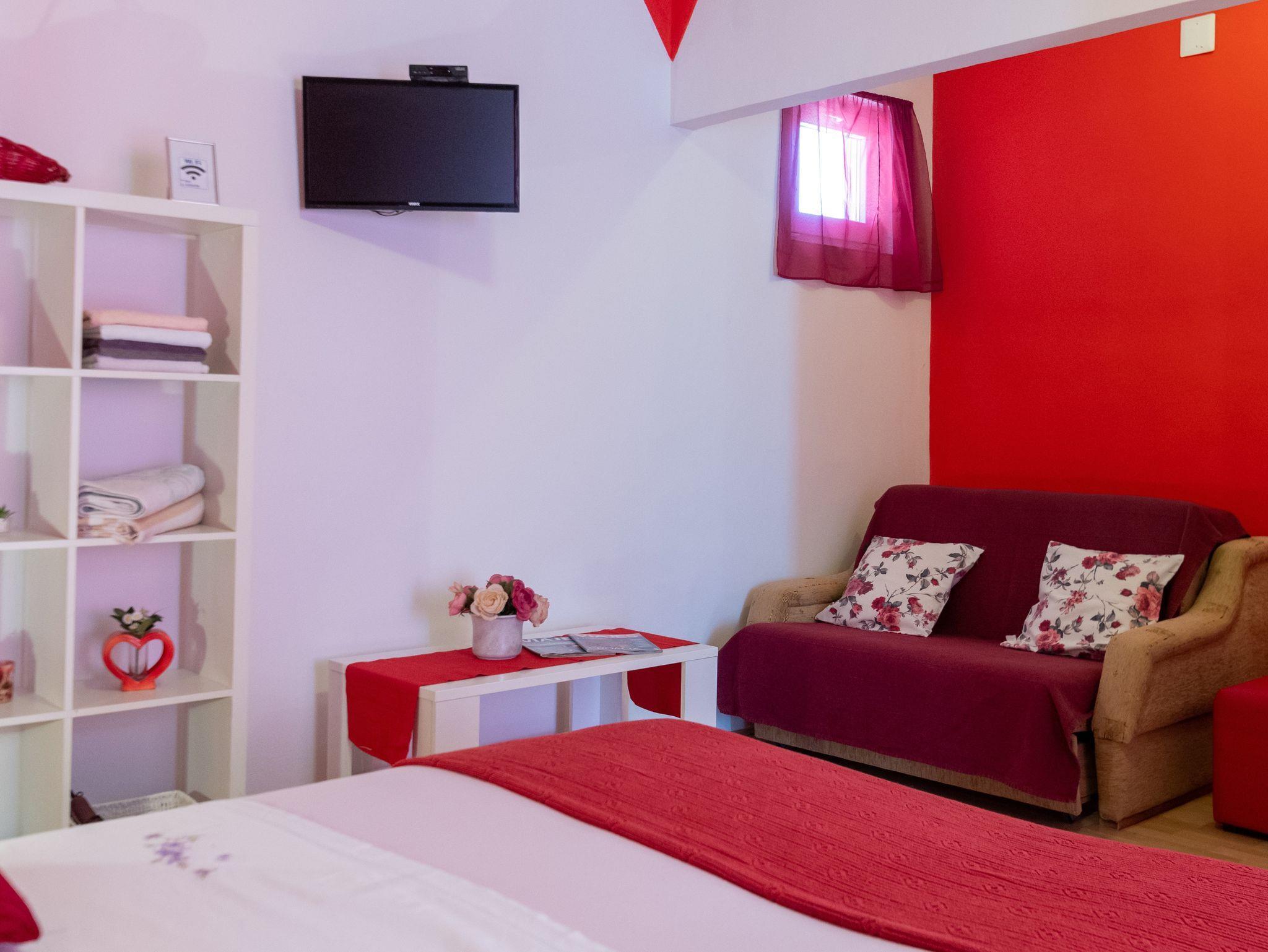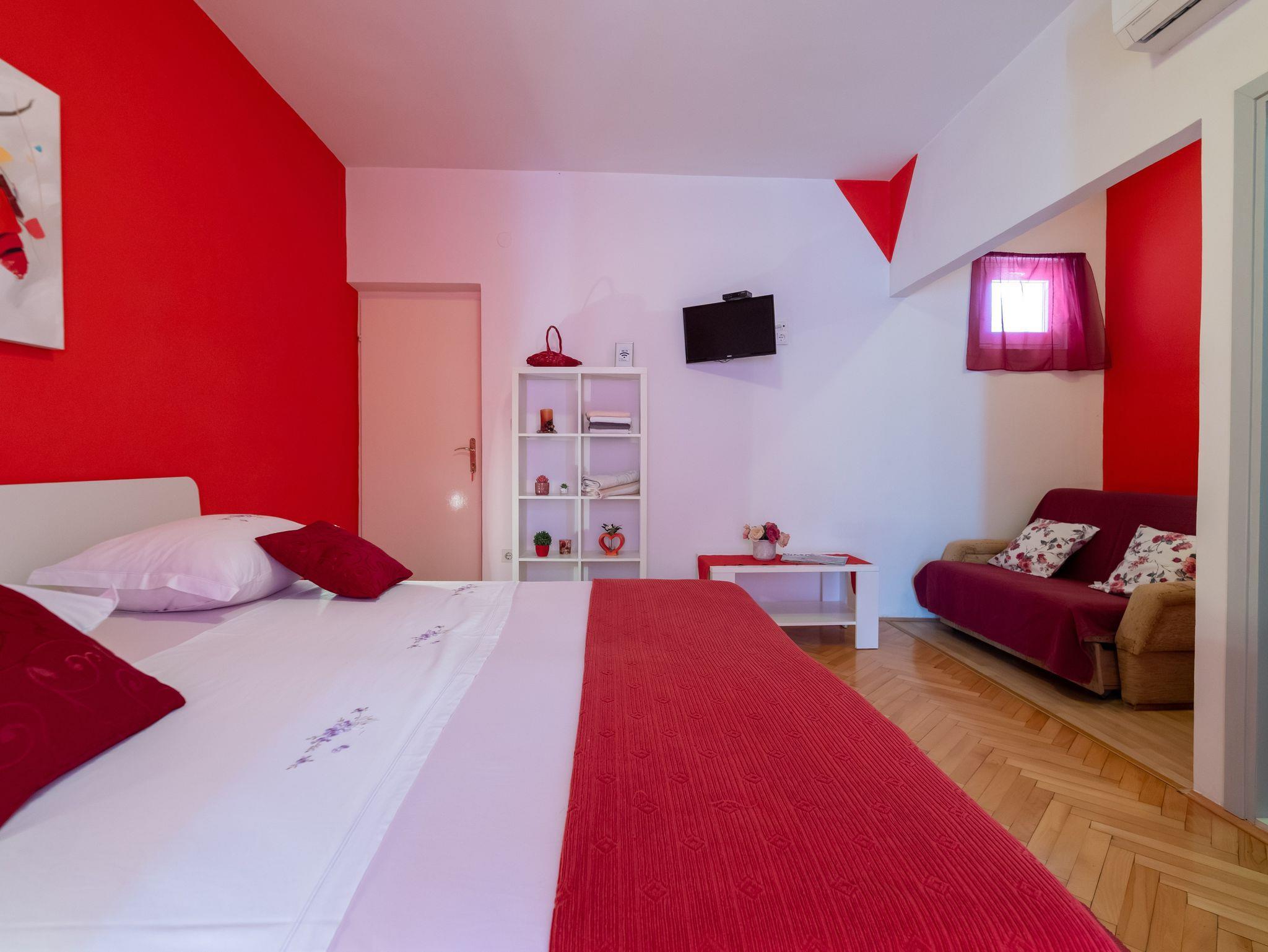 Studio bietet Platz für 3 Gäste. Die Betten sind in Schlafzimmern, die es 1 gibt, innerhalb einer Gesamtfläche von 32m2, angeordnet. Die Gäste haben eine eigene Terrasse zur Verfügung, auf der sie in warmen Sommernächten genießen können. Es ist erlaubt, Speisen auf dem Gemeinschafts-Grill vorzubereiten. IM PREIS INBEGRIFFEN: Kurtaxe, Endreinigung, Klimatisierung, Parkplatz, Internet, Kinderbett, Bügeleisen, Bügelbrett, Föhn. VERBINDLICHE ZUSÄTZLICHE KOSTEN: Aufzahlung für Kurzaufenthalte (prozentualer Zuschlag pro Nächtigungsanzahl: 30% - 1, 20% - 2, 10% - 3). UNVERBINDLICHE ZUSÄTZLICHE KOSTEN: Wäschewaschen (5,00 € Waschen). Die Verfügbarkeit zusätzlicher Dienstleistungen in Ihrem reservierten Termin und die Preise derselben (falls nicht aufgeführt) müssen im Voraus überprüft werden. Zusätzliche Dienstleistungen die in der Zahlungsaufforderung nicht aufgeführt sind werden direkt beim Vermieter bezahlt, angenommen der Gast nutzt auch diese.