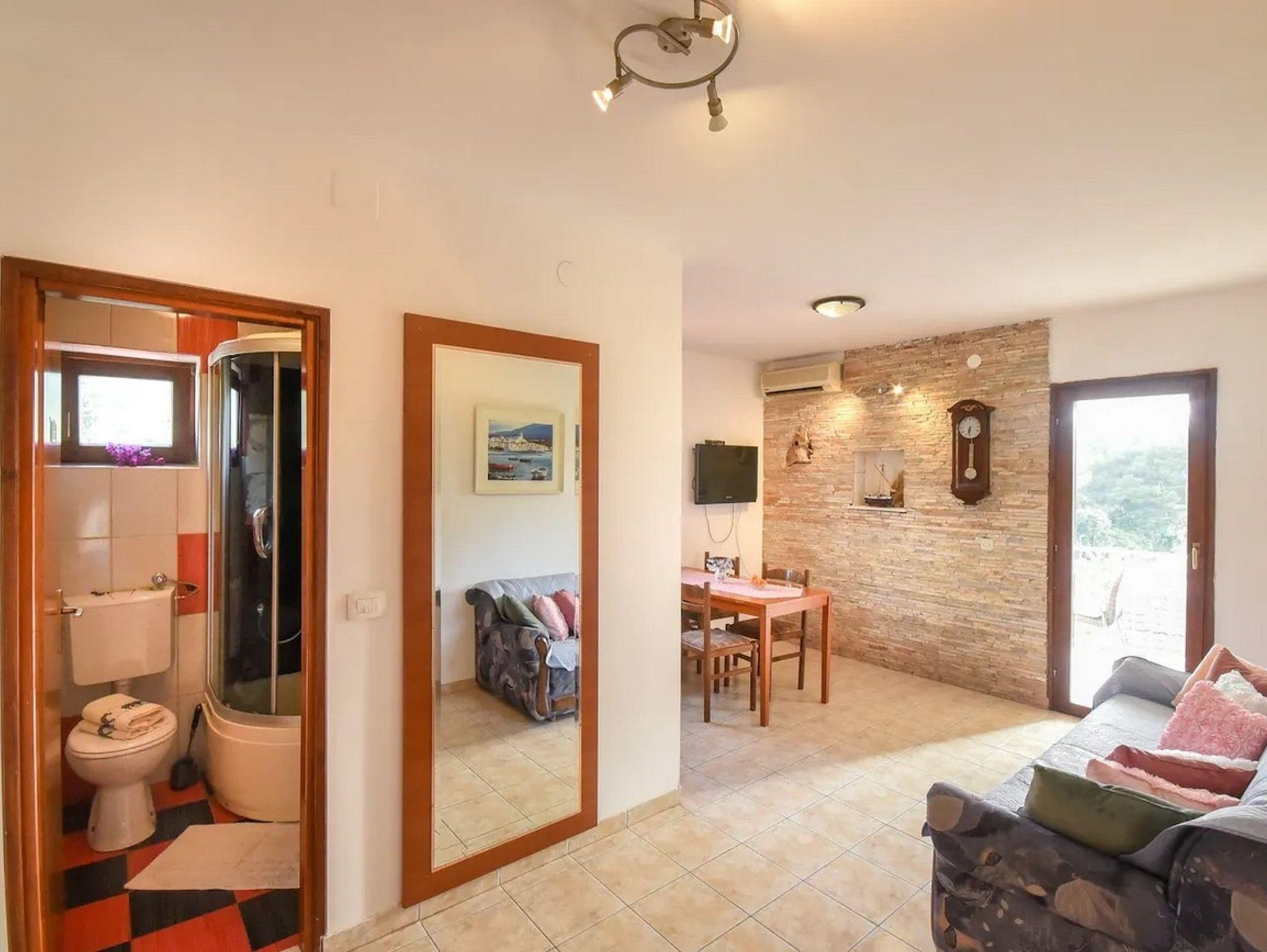Ferienwohnung bietet Platz für 3 Gäste. Die Betten sind in Schlafzimmern, die es 1 gibt, und in Wohnzimmer, innerhalb einer Gesamtfläche von 37m2, angeordnet. Die Gäste haben eine eigene Terrasse zur Verfügung, auf der sie in warmen Sommernächten genießen können. Das Apartment bietet Meerblick. Es ist erlaubt, Speisen auf dem Gemeinschafts-Grill vorzubereiten. Während ihres Aufenthalts können Gäste das gemeinsam zur Nutzung stehende Schwimmbad benutzen. In der Unterkunftseinheit besteht die Möglichkeit des Mitbringens von Haustieren, und die Dienstleistung ist im Preis der Unterkunft enthalten. IM PREIS INBEGRIFFEN: Kurtaxe, Endreinigung, Klimatisierung, Pool, Parkplatz, Internet, Haustiere, Kinderbett, Bügeleisen, Föhn. VERBINDLICHE ZUSÄTZLICHE KOSTEN: Aufzahlung für Kurzaufenthalte (prozentualer Zuschlag pro Nächtigungsanzahl: 30% - 1, 20% - 2, 10% - 3). Die Verfügbarkeit zusätzlicher Dienstleistungen in Ihrem reservierten Termin und die Preise derselben (falls nicht aufgeführt) müssen im Voraus überprüft werden. Zusätzliche Dienstleistungen die in der Zahlungsaufforderung nicht aufgeführt sind werden direkt beim Vermieter bezahlt, angenommen der Gast nutzt auch diese. Ermäßigung auf den Grundpreis: Gratistag 14=13 (bei einem Aufenthalt von 14 Tagen oder mehr erhalten Sie einen Gratistag für den Aufenthalt bis 31.12.25).