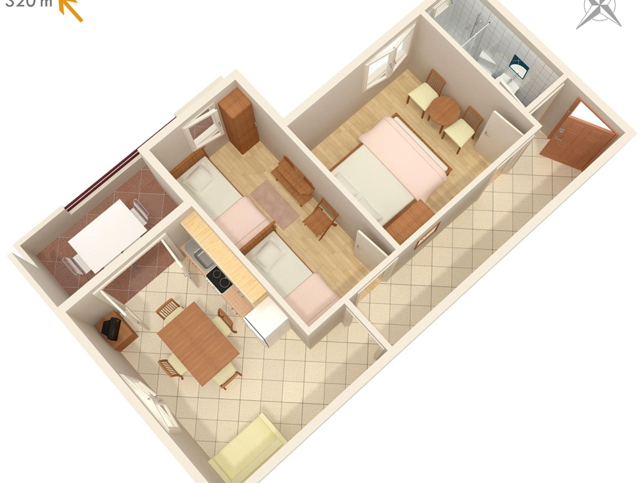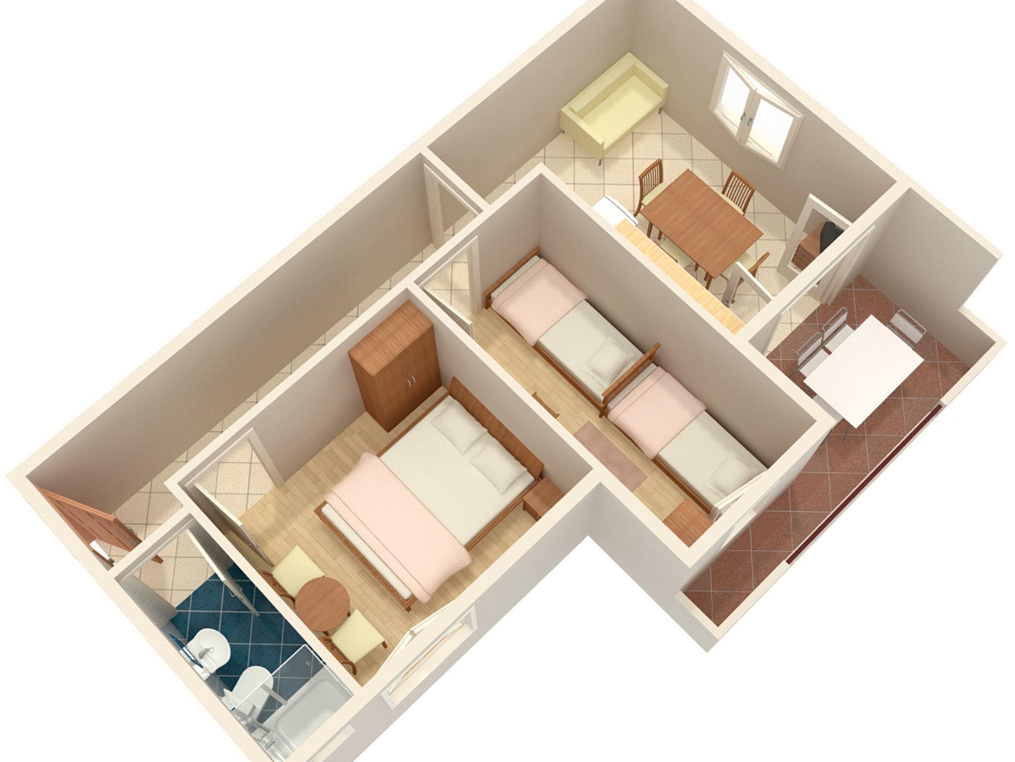 Ferienwohnung bietet Platz für 3 Gäste. Die Betten sind in Schlafzimmern, die es 2 gibt, innerhalb einer Gesamtfläche von 38m2, angeordnet. Die Gäste haben eine eigene Terrasse zur Verfügung, auf der sie in warmen Sommernächten genießen können. Das Apartment bietet Meerblick. Während ihres Aufenthalts können Gäste das gemeinsam zur Nutzung stehende Schwimmbad benutzen. IM PREIS INBEGRIFFEN: Kurtaxe, Endreinigung, Klimatisierung, Pool, Parkplatz, Internet, Wäschewaschen, Kinderbett, Bügeleisen, Bügelbrett, Föhn. VERBINDLICHE ZUSÄTZLICHE KOSTEN: Aufzahlung für Kurzaufenthalte (prozentualer Zuschlag pro Nächtigungsanzahl: 30% - 1, 20% - 2, 10% - 3). Die Verfügbarkeit zusätzlicher Dienstleistungen in Ihrem reservierten Termin und die Preise derselben (falls nicht aufgeführt) müssen im Voraus überprüft werden. Zusätzliche Dienstleistungen die in der Zahlungsaufforderung nicht aufgeführt sind werden direkt beim Vermieter bezahlt, angenommen der Gast nutzt auch diese.
