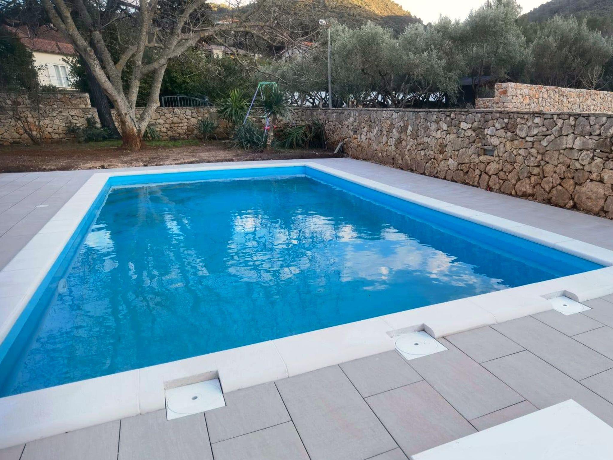 Umgebung des Objekts (Eingerichtet), Hof (200m2, Wird mit einem anderen Objekt mitbenutzt, Kinderbereich, Sitzbereich), Parkplatz (Anzahl der Parkplätze: 4, Entfernung vom Objekt: im Hof), Pool: gemeinsam, Dimensionen: 8m x 4m x 1.2m, Wassertyp: Salzwasser, WiFi Internet, Wäschewaschen, Föhn, Bügeleisen, Bügelbrett, Kinderbett