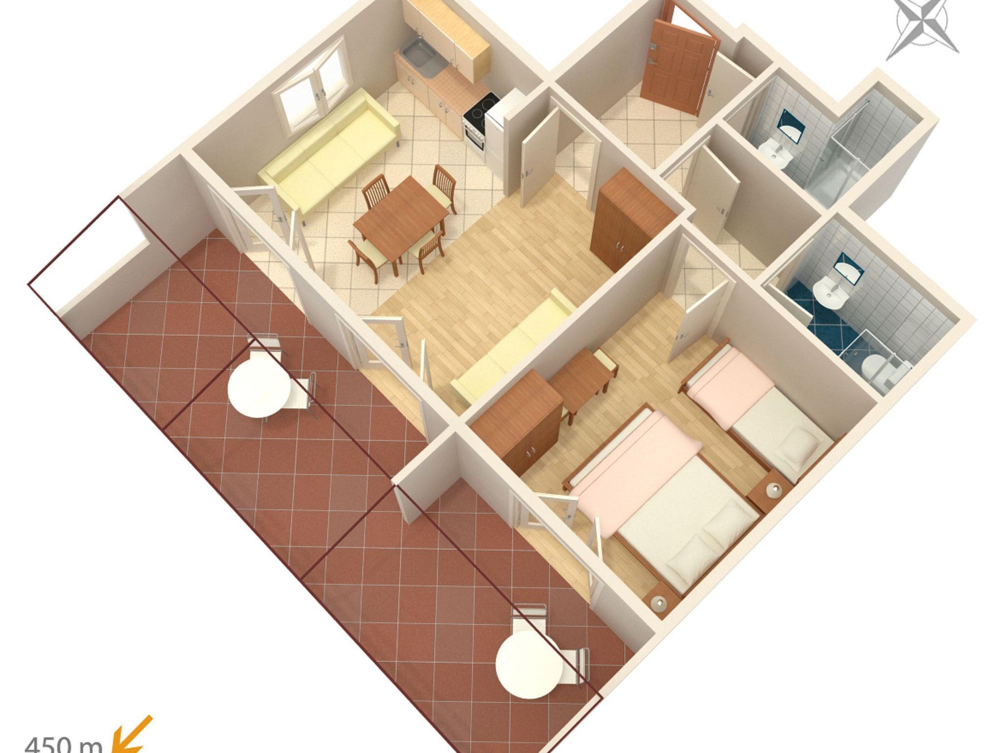 Ferienwohnung bietet Platz für 2 Gäste. Die Betten sind in Schlafzimmern, die es 1 gibt, innerhalb einer Gesamtfläche von 44m2, angeordnet. Die Gäste haben eine eigene Terrasse zur Verfügung, auf der sie in warmen Sommernächten genießen können. Es ist erlaubt, Speisen auf dem Gemeinschafts-Grill vorzubereiten. IM PREIS INBEGRIFFEN: Kurtaxe, Endreinigung, Parkplatz, Internet. VERBINDLICHE ZUSÄTZLICHE KOSTEN: Aufzahlung für Kurzaufenthalte (prozentualer Zuschlag pro Nächtigungsanzahl: 30% - 1, 20% - 2, 10% - 3). UNVERBINDLICHE ZUSÄTZLICHE KOSTEN: Klimatisierung (5,00 € pro Nacht). Die Verfügbarkeit zusätzlicher Dienstleistungen in Ihrem reservierten Termin und die Preise derselben (falls nicht aufgeführt) müssen im Voraus überprüft werden. Zusätzliche Dienstleistungen die in der Zahlungsaufforderung nicht aufgeführt sind werden direkt beim Vermieter bezahlt, angenommen der Gast nutzt auch diese.