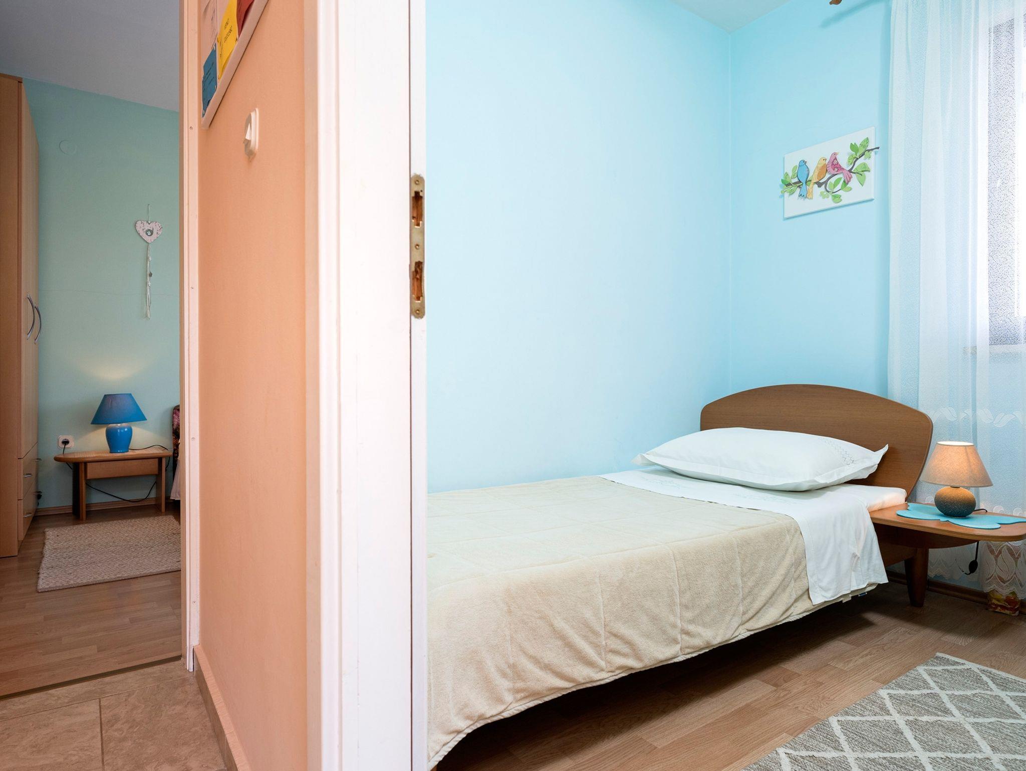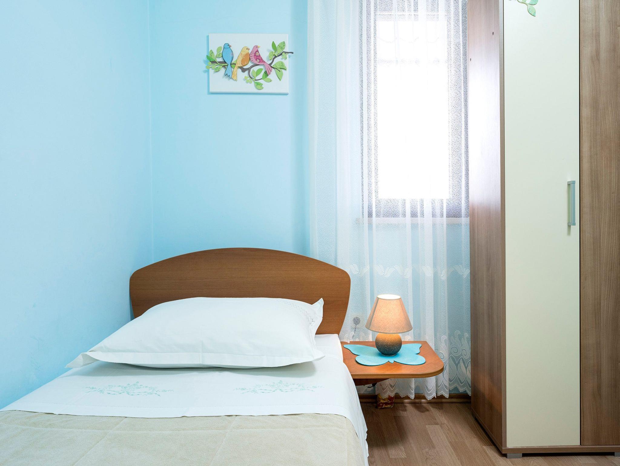 Ferienwohnung bietet Platz für 4 Gäste. Die Betten sind in Schlafzimmern, die es 2 gibt, und in Wohnzimmer, innerhalb einer Gesamtfläche von 58m2, angeordnet. Die Gäste haben einen eigenen Balkon zur Verfügung, auf der sie in warmen Sommernächten genießen können. Es ist erlaubt, Speisen auf dem Gemeinschafts-Grill vorzubereiten. IM PREIS INBEGRIFFEN: Kurtaxe, Endreinigung, Klimatisierung, Parkplatz, Internet, Bügeleisen, Bügelbrett, Föhn. VERBINDLICHE ZUSÄTZLICHE KOSTEN: Aufzahlung für Kurzaufenthalte (prozentualer Zuschlag pro Nächtigungsanzahl: 30% - 1, 20% - 2, 10% - 3). UNVERBINDLICHE ZUSÄTZLICHE KOSTEN: Wäschewaschen (5,00 € Waschen). Die Verfügbarkeit zusätzlicher Dienstleistungen in Ihrem reservierten Termin und die Preise derselben (falls nicht aufgeführt) müssen im Voraus überprüft werden. Zusätzliche Dienstleistungen die in der Zahlungsaufforderung nicht aufgeführt sind werden direkt beim Vermieter bezahlt, angenommen der Gast nutzt auch diese.