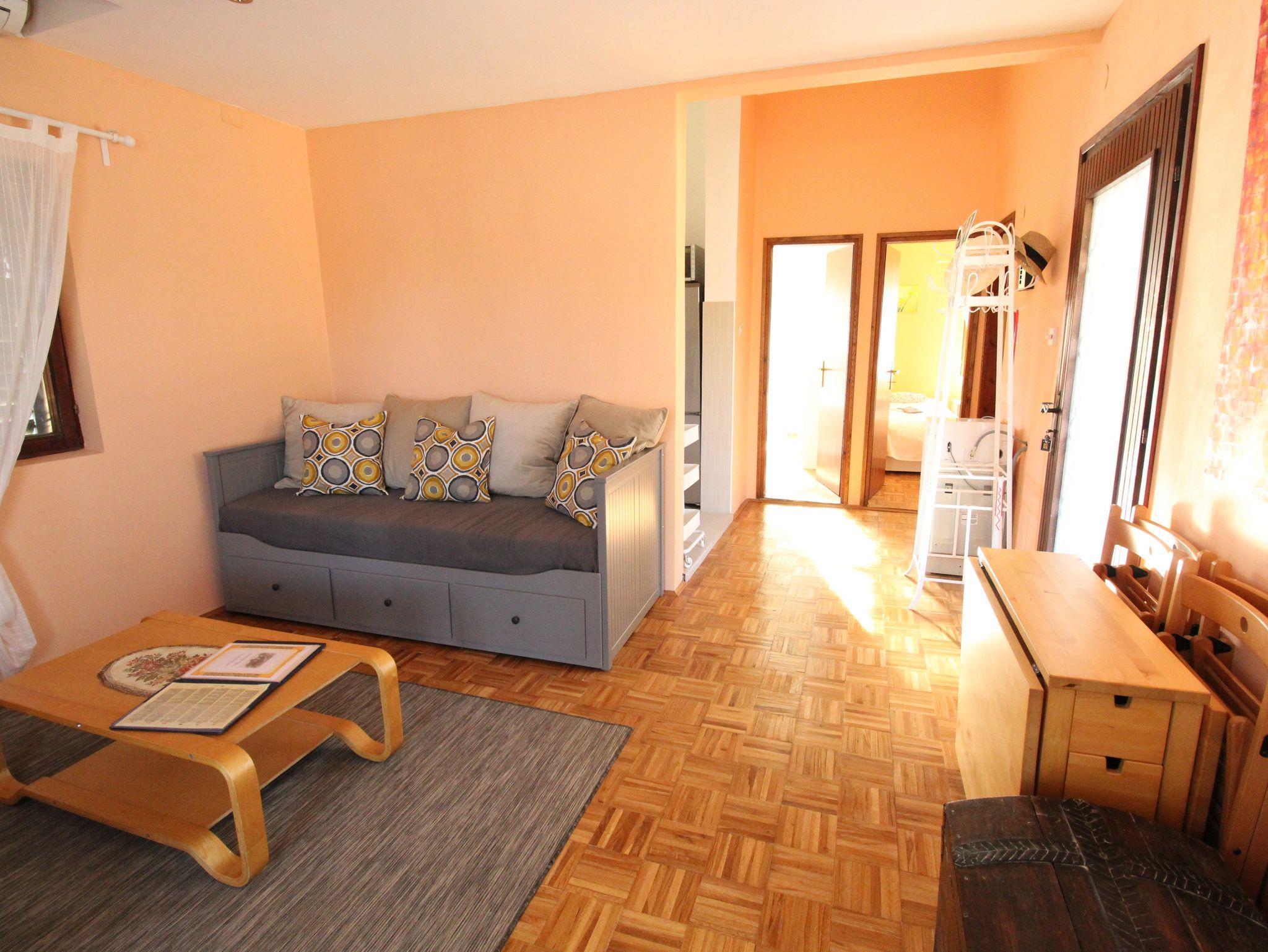 Haus bietet Platz für 6 Gäste. Die Betten sind in Schlafzimmern, die es 2 gibt, und in Wohnzimmer, innerhalb einer Gesamtfläche von 48m2, angeordnet. Die Gäste haben eine eigene Terrasse zur Verfügung, auf der sie in warmen Sommernächten genießen können. Für vollen Genuss und Entspannung gibt es einen privaten Grill für Gäste dieser Unterkunft. In der Unterkunftseinheit besteht die Möglichkeit des Mitbringens von Haustieren, und die Dienstleistung ist im Preis der Unterkunft enthalten. IM PREIS INBEGRIFFEN: Kurtaxe, Endreinigung, Klimatisierung, Parkplatz, Internet, Haustiere, Bügeleisen, Bügelbrett, Föhn, tragbarer Grill, Sonnenschirm. Die Verfügbarkeit zusätzlicher Dienstleistungen in Ihrem reservierten Termin und die Preise derselben (falls nicht aufgeführt) müssen im Voraus überprüft werden. Zusätzliche Dienstleistungen die in der Zahlungsaufforderung nicht aufgeführt sind werden direkt beim Vermieter bezahlt, angenommen der Gast nutzt auch diese. Ermäßigung auf den Grundpreis: Gratistag 14=13 (bei einem Aufenthalt von 14 Tagen oder mehr erhalten Sie einen Gratistag für den Aufenthalt bis 31.12.26).
