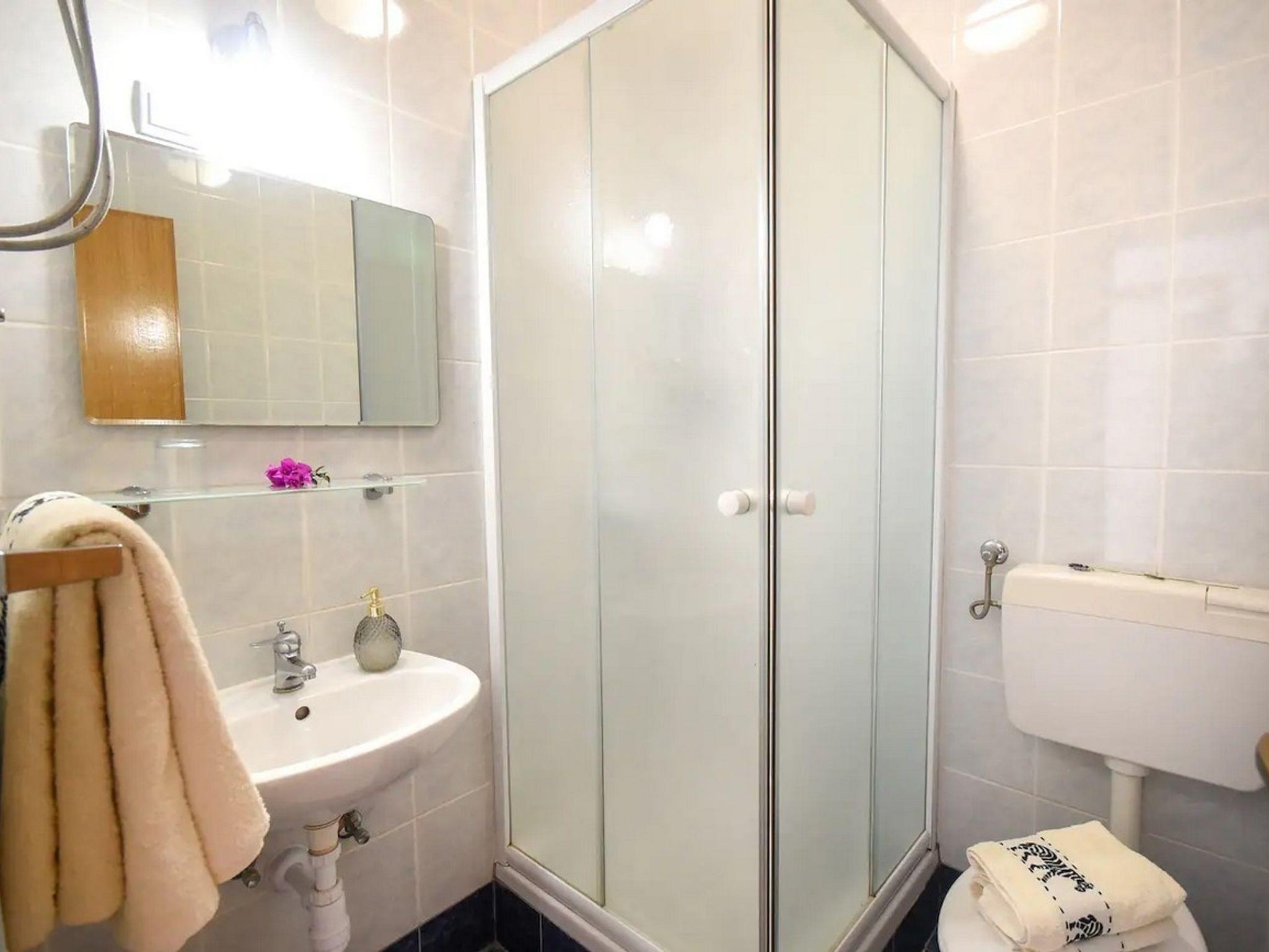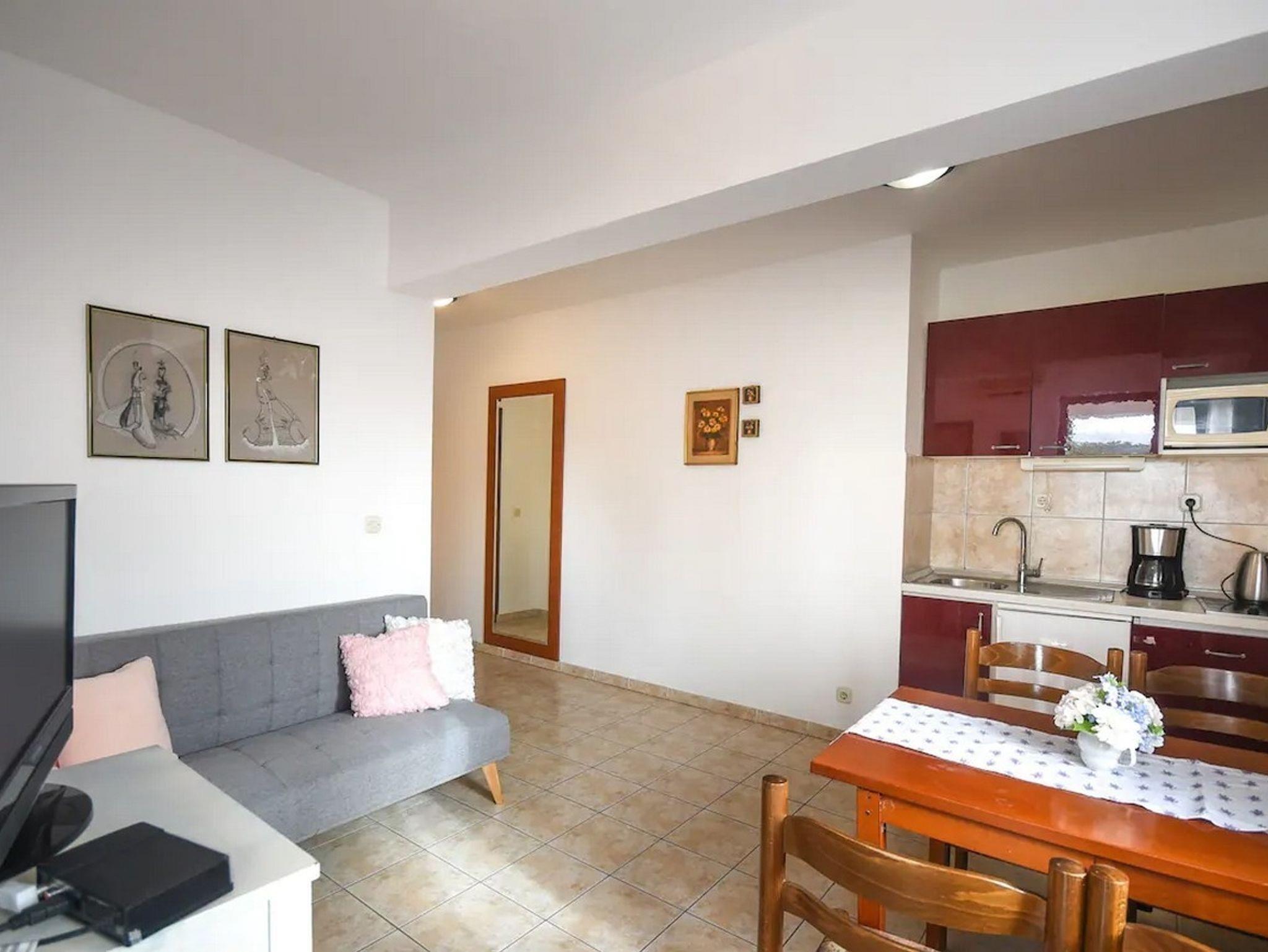 Ferienwohnung bietet Platz für 3 Gäste. Die Betten sind in Schlafzimmern, die es 1 gibt, und in Wohnzimmer, innerhalb einer Gesamtfläche von 31m2, angeordnet. Die Gäste haben einen eigenen Balkon zur Verfügung, auf der sie in warmen Sommernächten genießen können. Das Apartment bietet Meerblick. Es ist erlaubt, Speisen auf dem Gemeinschafts-Grill vorzubereiten. Während ihres Aufenthalts können Gäste das gemeinsam zur Nutzung stehende Schwimmbad benutzen. In der Unterkunftseinheit besteht die Möglichkeit des Mitbringens von Haustieren, und die Dienstleistung ist im Preis der Unterkunft enthalten. IM PREIS INBEGRIFFEN: Kurtaxe, Endreinigung, Klimatisierung, Pool, Parkplatz, Internet, Haustiere, Kinderbett, Bügeleisen, Föhn. VERBINDLICHE ZUSÄTZLICHE KOSTEN: Aufzahlung für Kurzaufenthalte (prozentualer Zuschlag pro Nächtigungsanzahl: 30% - 1, 20% - 2, 10% - 3). Die Verfügbarkeit zusätzlicher Dienstleistungen in Ihrem reservierten Termin und die Preise derselben (falls nicht aufgeführt) müssen im Voraus überprüft werden. Zusätzliche Dienstleistungen die in der Zahlungsaufforderung nicht aufgeführt sind werden direkt beim Vermieter bezahlt, angenommen der Gast nutzt auch diese. Ermäßigung auf den Grundpreis: Gratistag 14=13 (bei einem Aufenthalt von 14 Tagen oder mehr erhalten Sie einen Gratistag für den Aufenthalt bis 31.12.25).