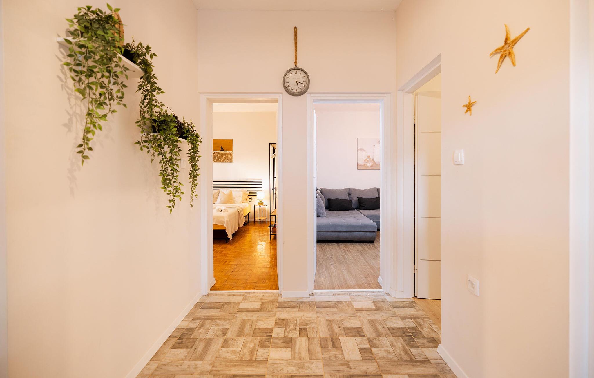 Der er kun godt 300 meter til stranden, så I nemt kan forfriske jer i det smukke hav på alle tidspunkter af dagen. Gå langs de smukke strande i Seline og dyk ned i det krystalklare hav. Det lille feriested ligger i et enestående landskab, for i denne region smelter bjerge og hav sammen på en fascinerende måde. Herfra kan I nemt tage på ture til Velebit-bjergene eller til det bjergrige bagland med Paklenica National Park. I kan også hurtigt komme til de smukke kystbyer Zadar og Sibenik. Prøv forskellige aktiviteter som vandreture, klatring, sejlads eller vandski - her er mange muligheder. Et populært sted for både turister og lokale er den lille lystbådehavn ved Seline, hvor små fiskerbåde dupper i vandet mod en malerisk bjergkulisse. Byens restauranter og caféer er inden for nem gåafstand, ligesom de lange stenstrande, man kan slappe af på.