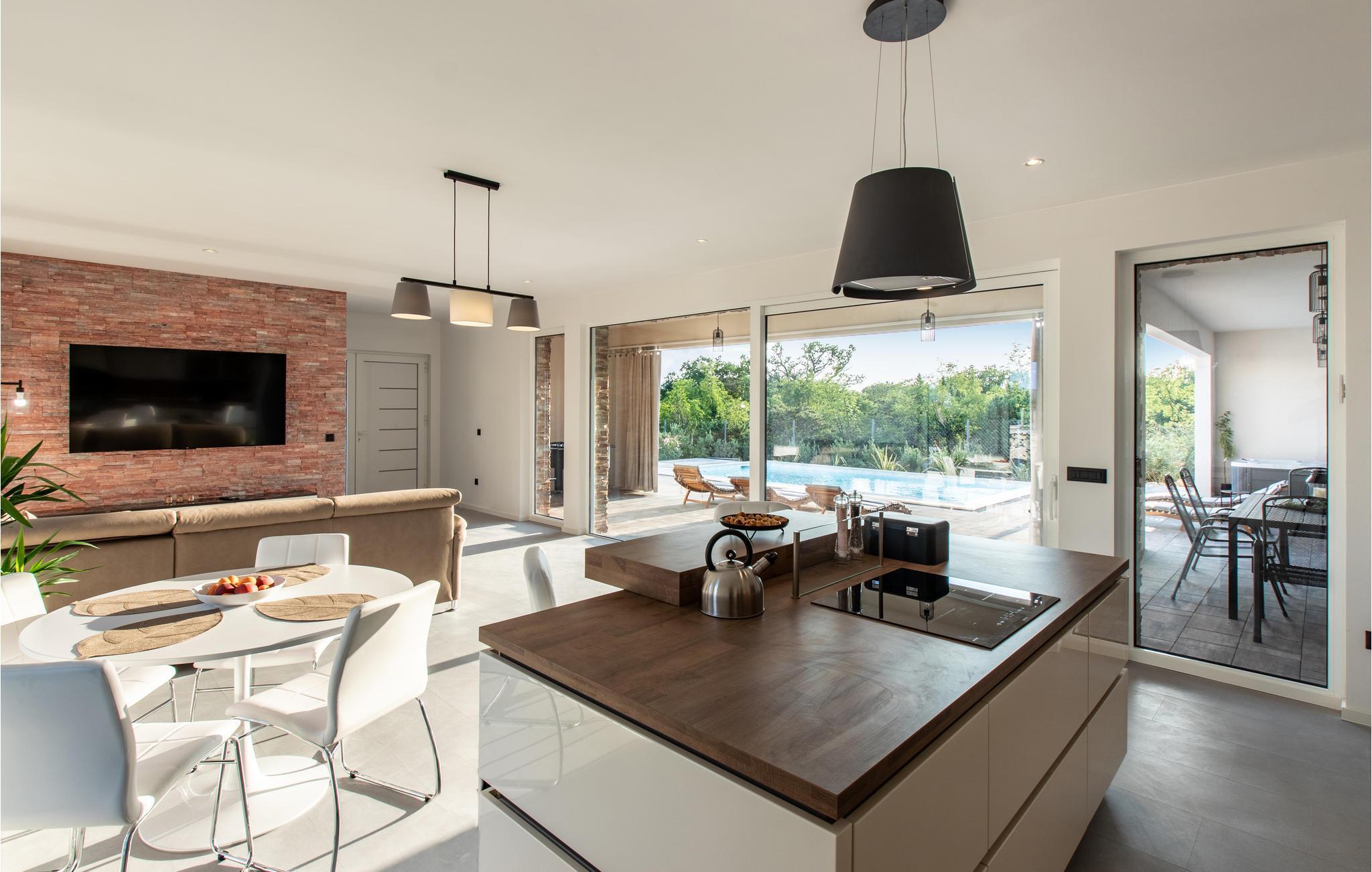 Forkæl jer selv med en afslappende ferie i Seline i dette smukke og meget komfortable feriehus med sauna og pool. Dette smukke og store feriehus byder på en uforglemmelig ferie. Planlægger I en ferie med et par venner, fordi soveværelserne lover jer privatliv med deres egne badeværelser. Glæd jer til udstyr af høj kvalitet og tid til wellness, for sauna og spabad inviterer jer til at slappe af. Lav mad i det åbne og lyse køkken eller tag en grill i haven og samvær på den overdækkede terrasse om aftenen efter at have svømmet i poolen eller solbadet et par timer. Efter en kort gåtur når I de nærmeste strande om morgenen. Nyd en forfriskende dukkert i havet eller besøg den fascinerende by Zadar, der udover sin fantastiske beliggenhed ved kysten også har mange imponerende historiske bygninger at byde på. En næsten perfekt udsigt tilbydes af en gåtur på bymuren. Afslut jeres udflugt på strandpromenaden og bliv fascineret af en spektakulær solnedgang over Adriaterhavet.