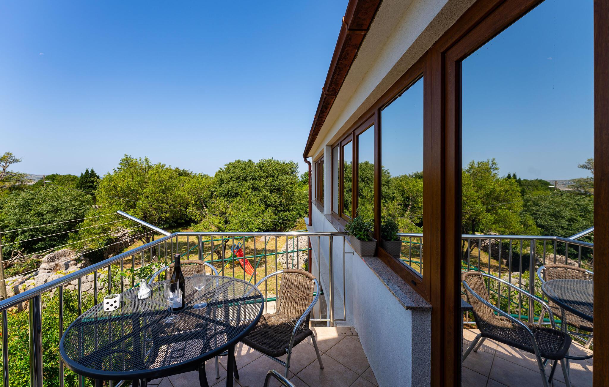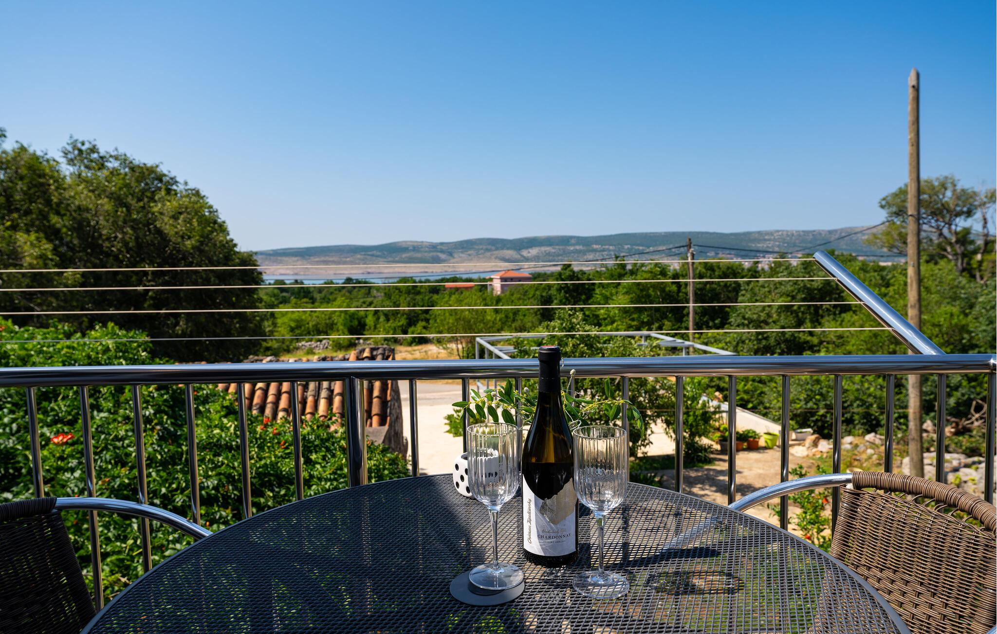 På balkonen til jeres ferielejlighed kan I også nyde jeres måltider udendørs. Her kan I tage et afslappende solbad og nyde den fantastiske panoramaudsigt over det omkringliggende landskab og havet.