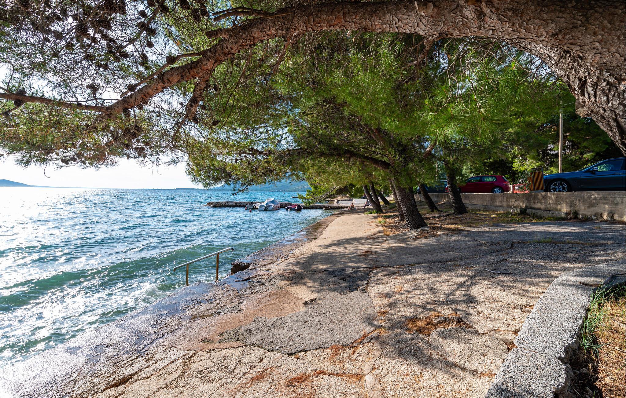 Stranden er kun et kort stenkast væk, så der er gode muligheder for friske dukkerter i det glasklare vand fra morgenstund til solnedgang. I bor i et område med smuk natur, strande og mange fine udflugtsmål i baglandet i Dalmatien. Tag på sceniske dagsture til nationalparkerne, som I kan opleve til fods, på to hjul eller med klatregrejet, og for kulturliv og historiske seværdigheder anbefales en tur til skønne Zadar.