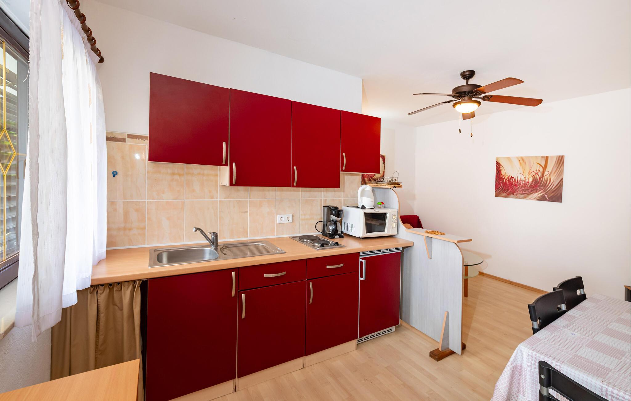 Tag den lille familie eller din partner under armen og rejs til Rovajnska, hvor der venter jer et allelunde dejligt ophold i denne fine lejlighed. Boligen er pænt indrettet med et rustikt strejf og gode møbler, der gør det nemt at slappe af med det samme, I stiller kufferterne. Tilbered en lækker morgenmad i det funktionelle køkken og nyd måltidet på altanen med en vidunderlig udsigt over havet.