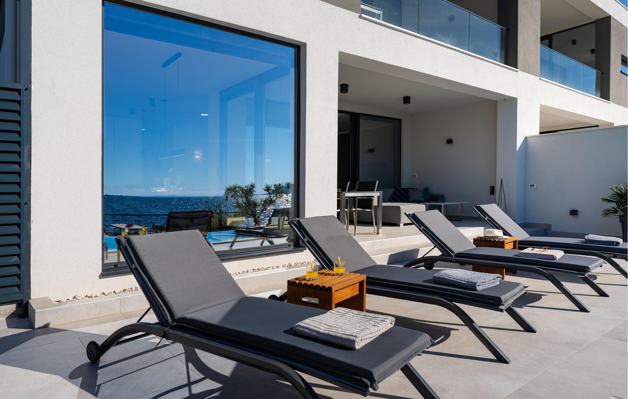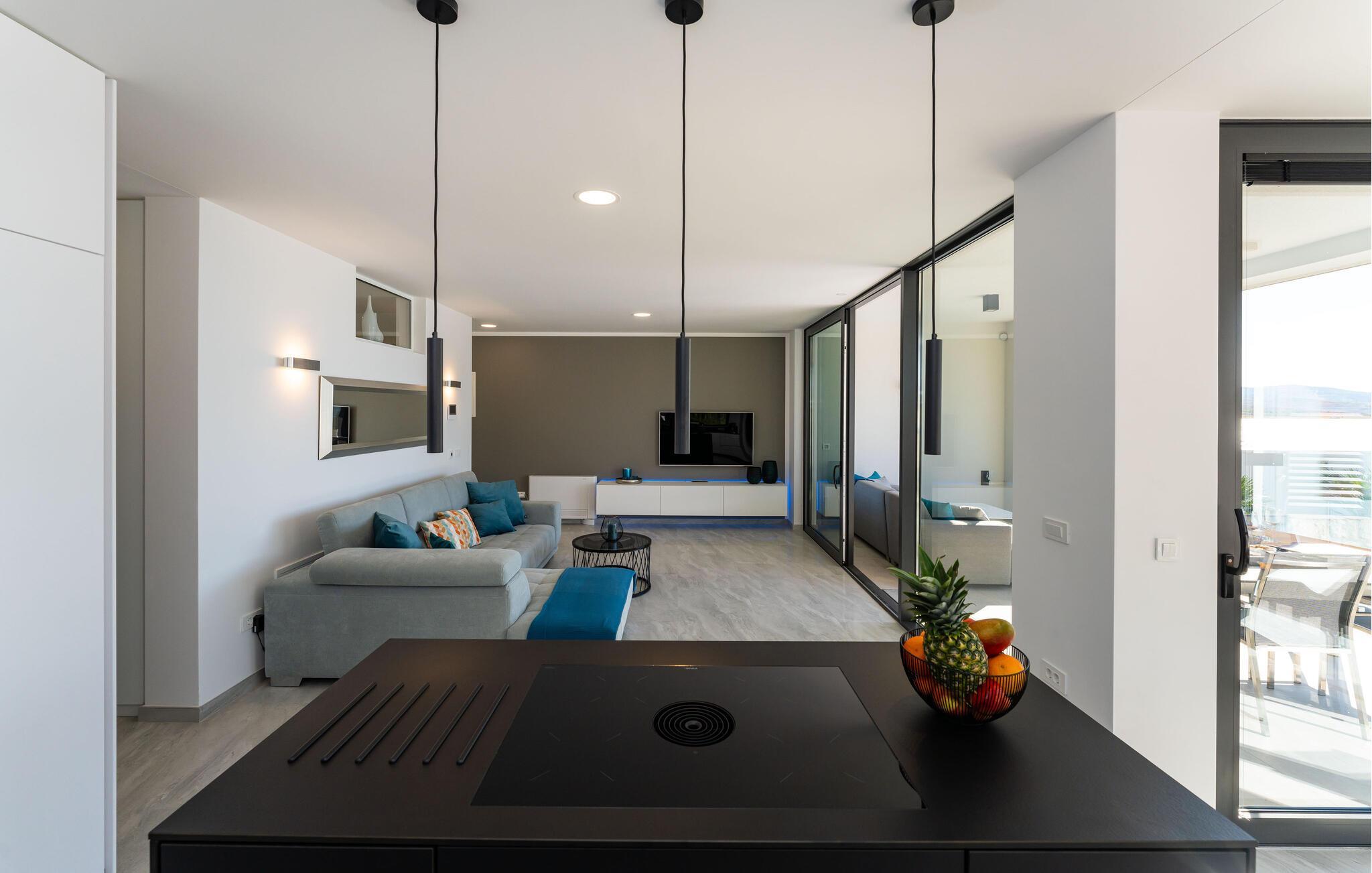 Tab kæben over den mageløse panoramaudsigt over havet i denne luksuslejlighed med pool.