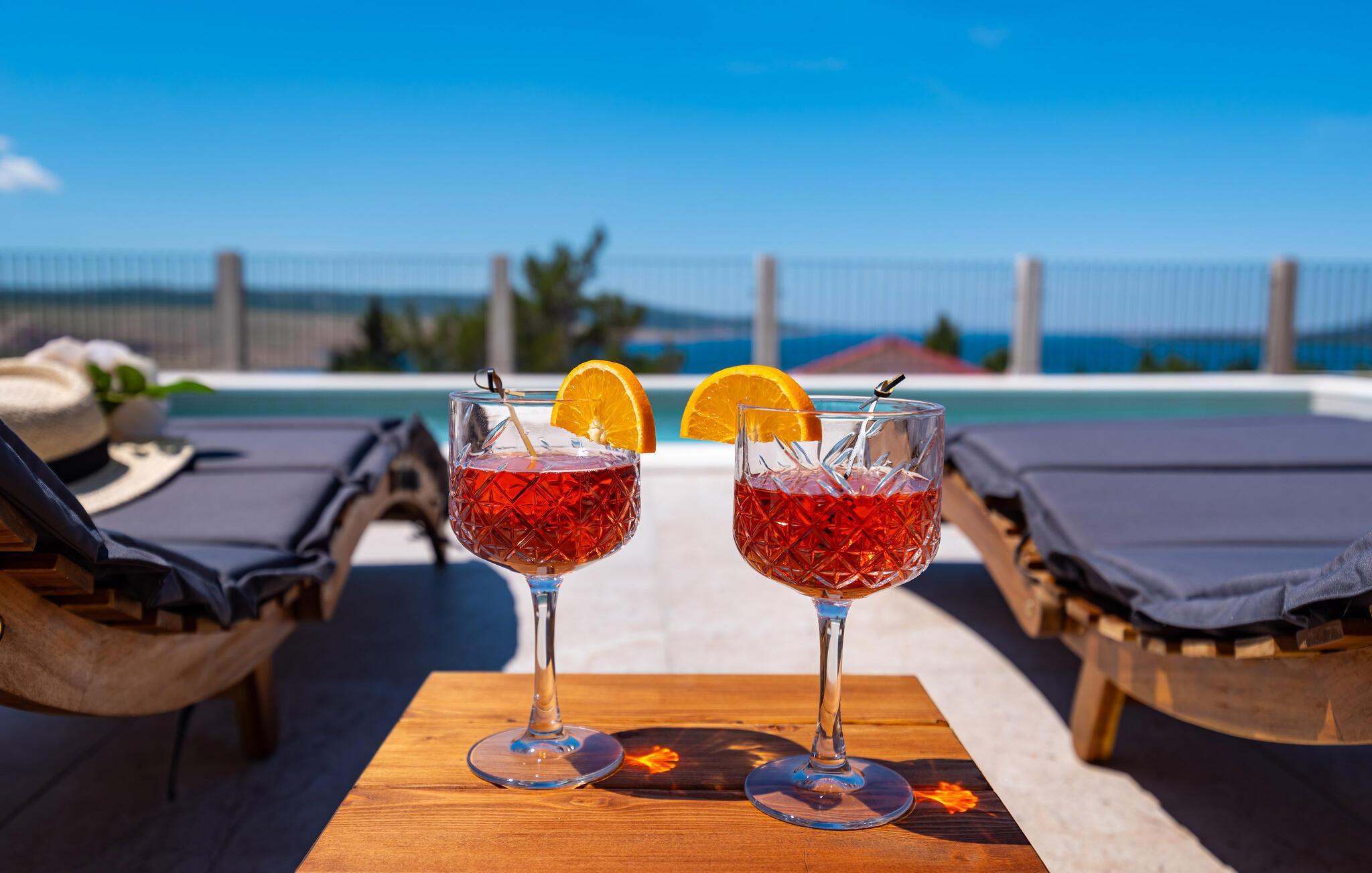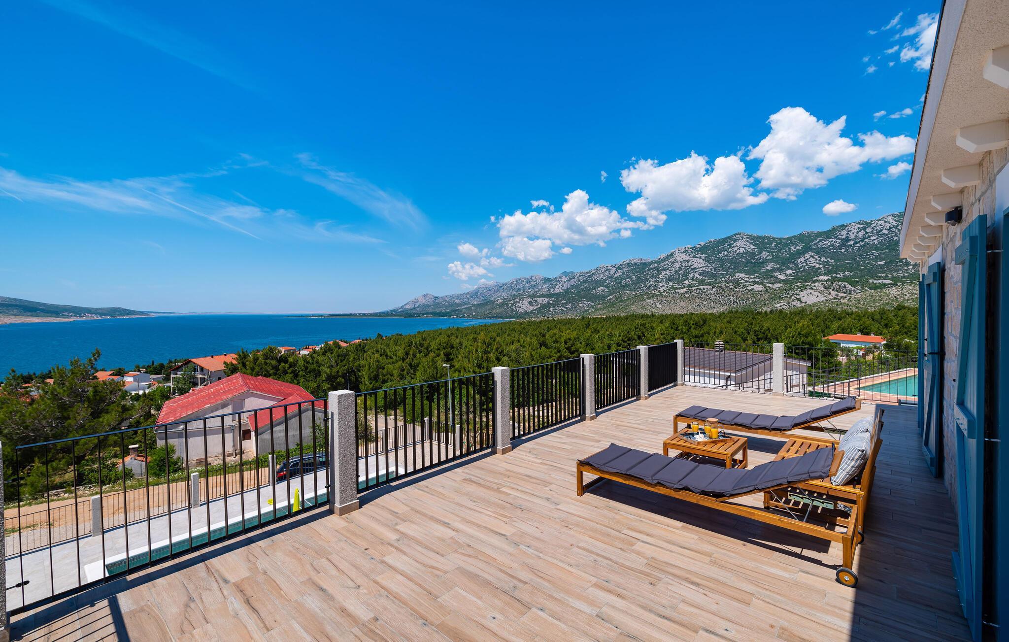 Udeområdet er dog husets perle. Her kan I starte dagen med en dukkert i poolen, som ligger flot omgivet af en rummelig terrasse med liggestole, hvor I kan dase i mange timer i løbet af dagen. Den fantastiske udsigt over havet fuldender ferieoplevelsen og byder på betagende solnedgange, som nydes bedst med en kølig drink.
