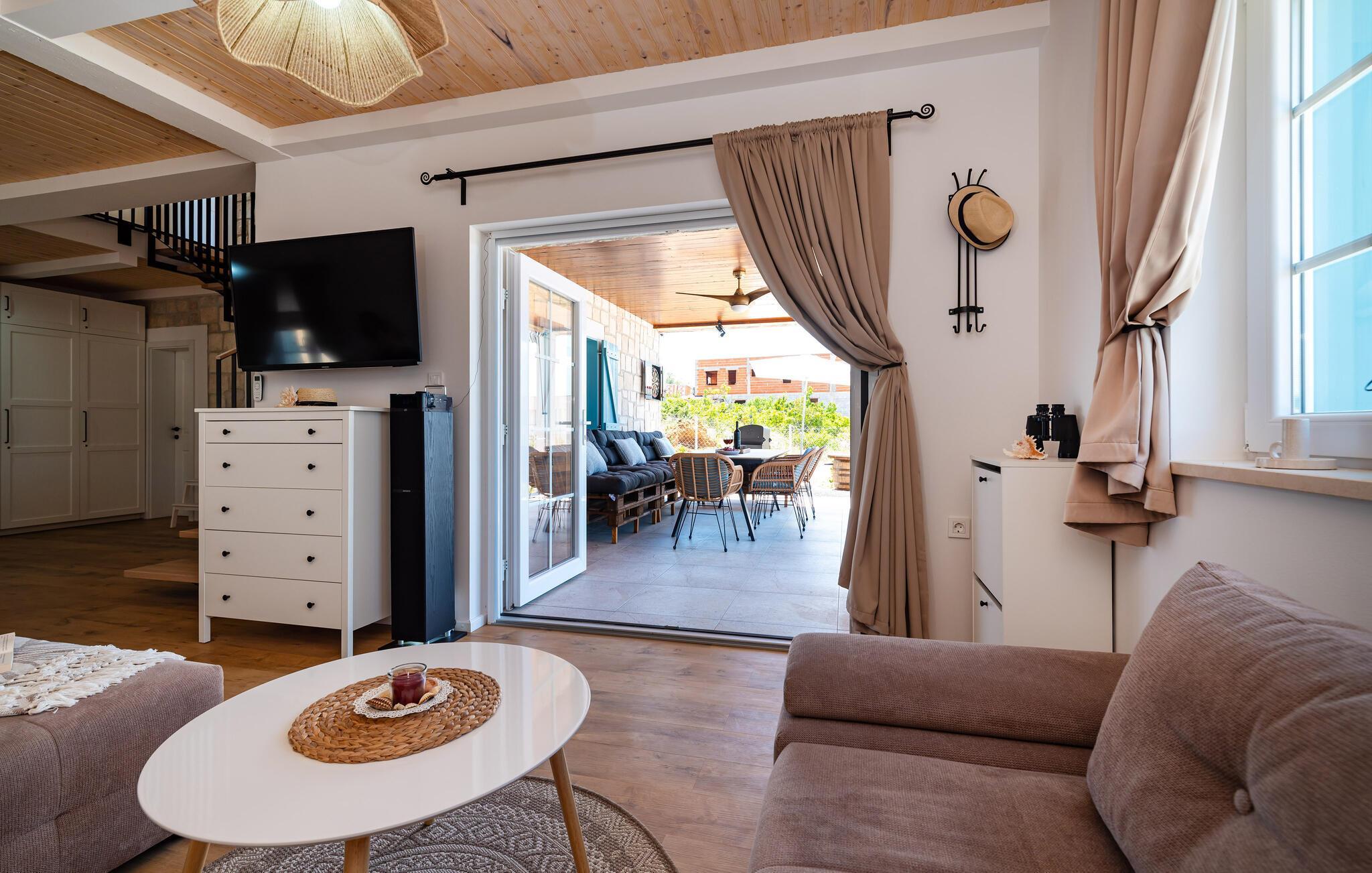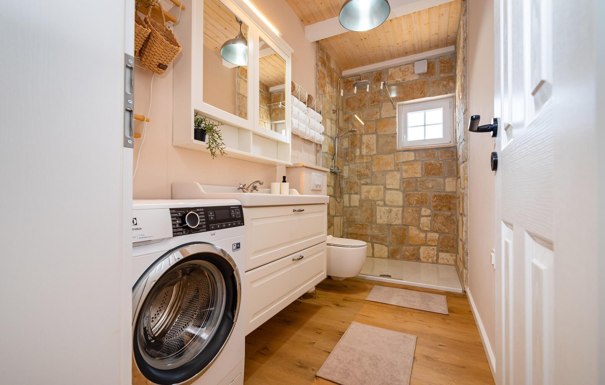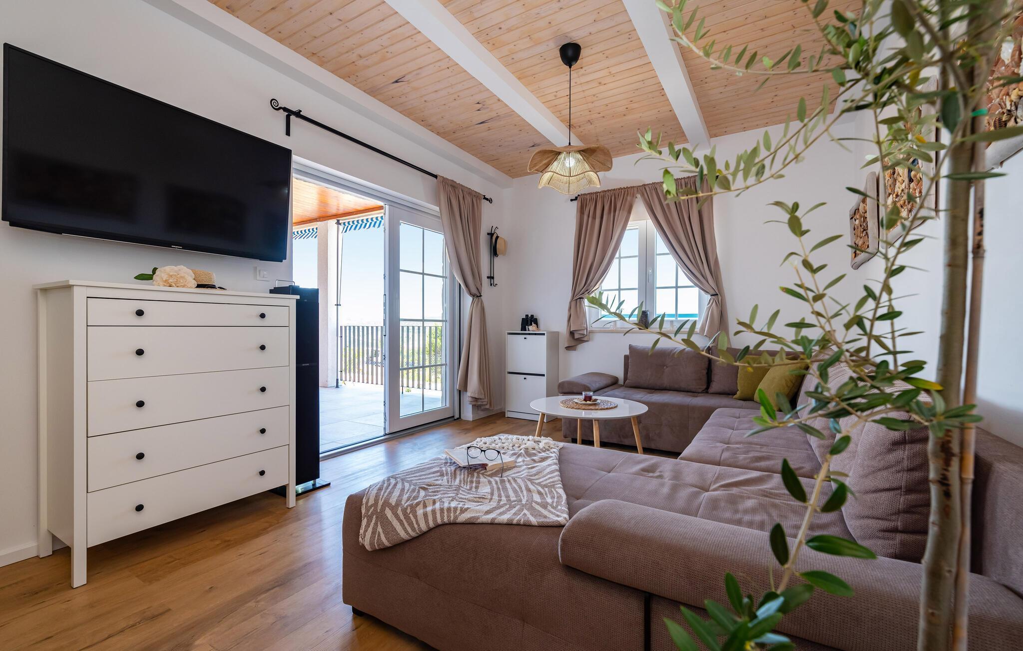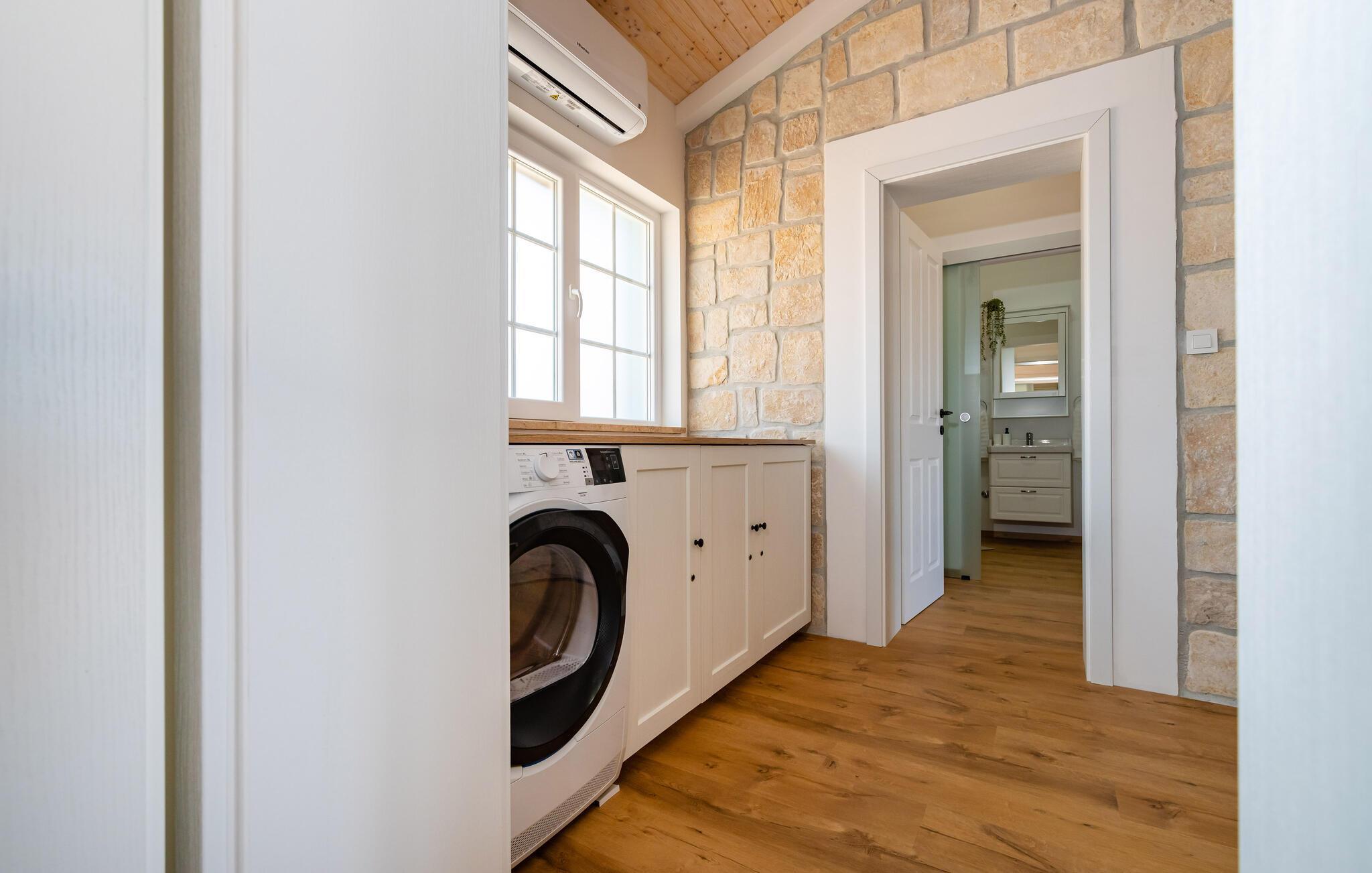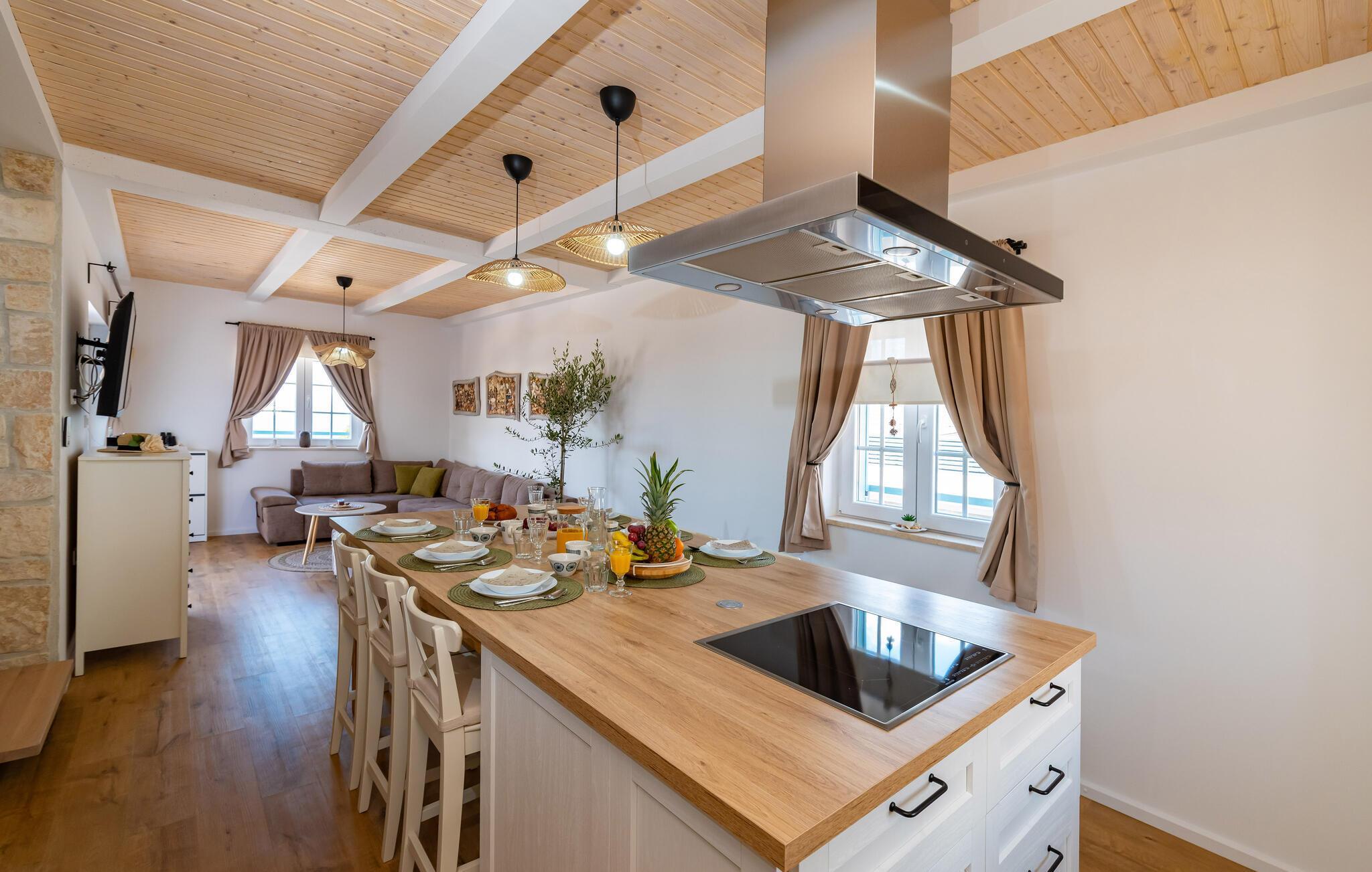 Velkommen til dette vidunderlige hus, der ligger i fantastiske omgivelser ved Rovanjska, og hvor I har fundet det perfekte tilflugtssted til årets familieferie. Huset er smagfuldt indrettet med gennemtænkte løsninger, der kombinerer hygge og komfort over to etager med god plads til den store flok. Køkkenet er fuldt udstyret, så tag jer blot god tid til madlavningen og nyd maden ved spisebordet, mens I lægger planer for de kommende dage.