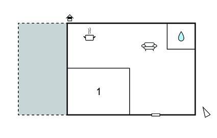 Opholdsstue/køkken 15m2 - 2 Sovepladser. (Sofa, madras eller lignende).