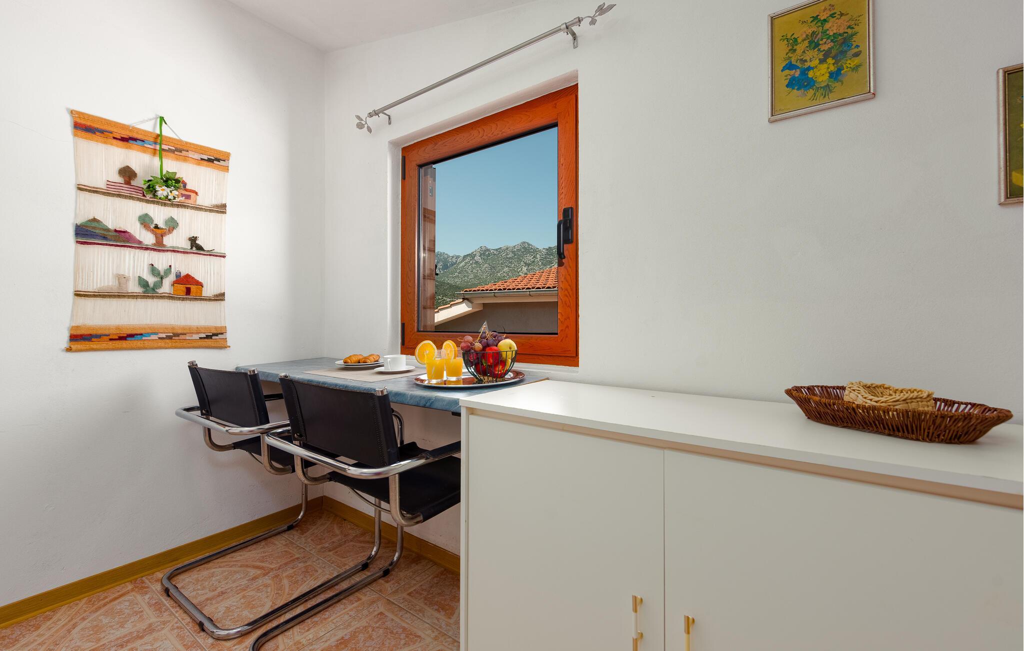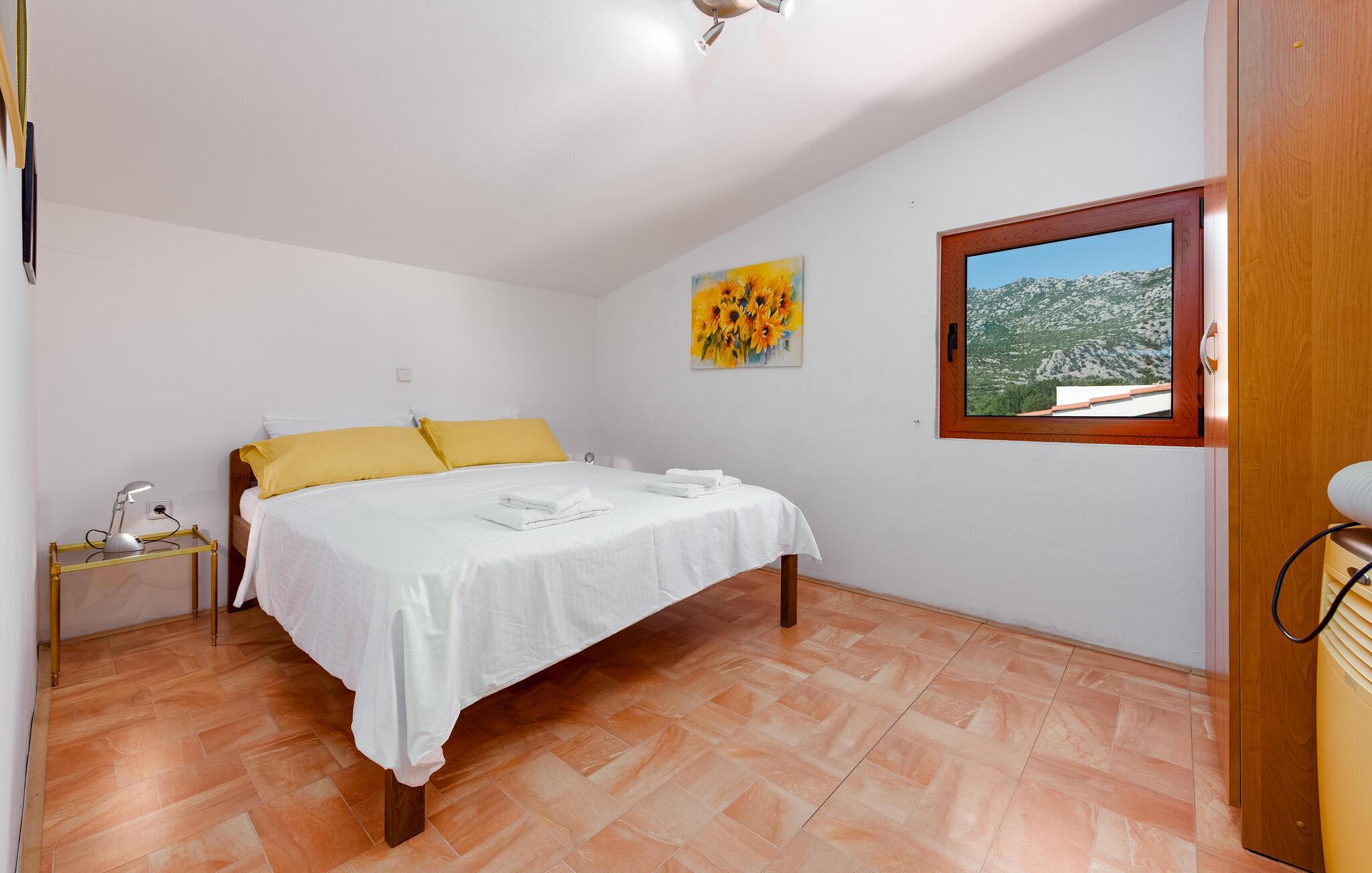 Flygt fra hverdagen og tilbring afslappende dage i denne charmerende ferielejlighed ikke langt fra smukke strande. Kun en kort gåtur fra idylliske badesteder, vil I føle jer hjemme i denne hyggelige ferielejlighed. Tilbered jeres yndlingsmåltider her, planlæg jeres aktiviteter ved det indbydende spisebord, og sæt jer til rette for en sjov spilleaften i stuen. En grill venter på jer på den fælles grund - tilbered lækre måltider udendørs efter en lang dag. Pak en picnickurv og gå en tur til stranden for en forfriskende dukkert i det krystalklare vand. Vandr gennem den imponerende Paklenica Nationalpark med dens spektakulære kløfter og klatreruter, udforsk den mystiske Manita Pec-hule på en guidet tur, eller oplev kysten på en kajaktur. Tag en dagstur til Zadar, slentr forbi Havorglet og "Hilsen til Solen", og prøv regionale specialiteter i en traditionel taverna.