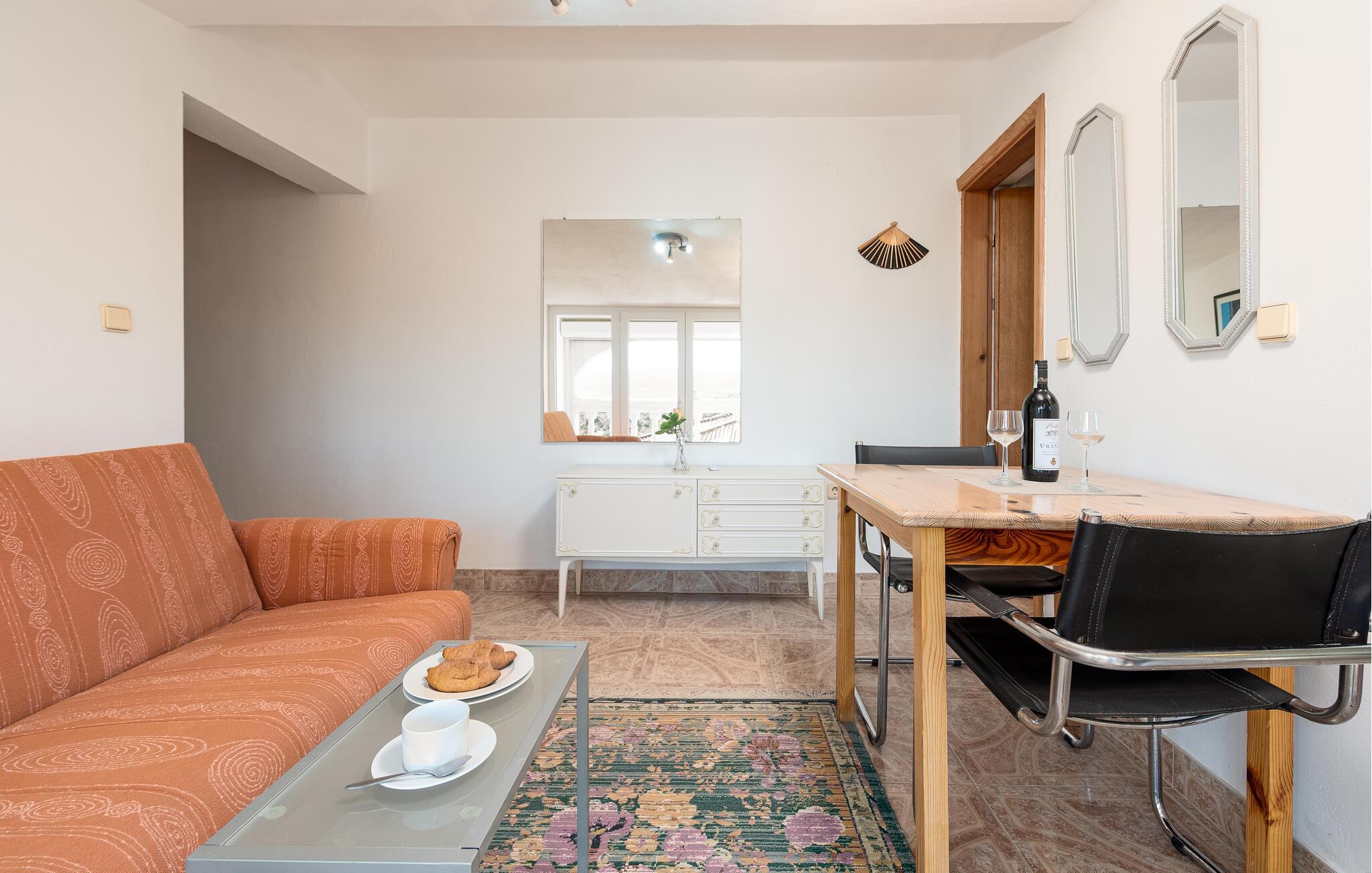 Tilbring solrige dage i denne charmerende ferielejlighed med havudsigt nær stranden. Kun en kort gåtur fra idylliske badesteder inviterer denne lyse og muntre ferielejlighed jer til at tilbringe afslappende dage under blå himmel. Forbered jeres yndlingsmåltider, planlæg jeres aktiviteter ved det indbydende spisebord, og slap af på sofaen med et brætspil efter en begivenhedsrig dag. Server jeres første kaffe i den milde morgensol, og nyd varme sommeraftener over et glas vin, eller hyg jer ved den fælles grill. Pak en picnickurv, og gå en tur til stranden for en forfriskende dukkert i det krystalklare vand. Vandr gennem den imponerende Paklenica Nationalpark med dens spektakulære kløfter og klatreruter, udforsk den mystiske Manita Pec-hule på en guidet tur, eller oplev kysten på en kajaktur. Tag en dagstur til Zadar, slentr forbi Havorglet og Solhilsenen, og prøv regionale specialiteter i en traditionel taverna.