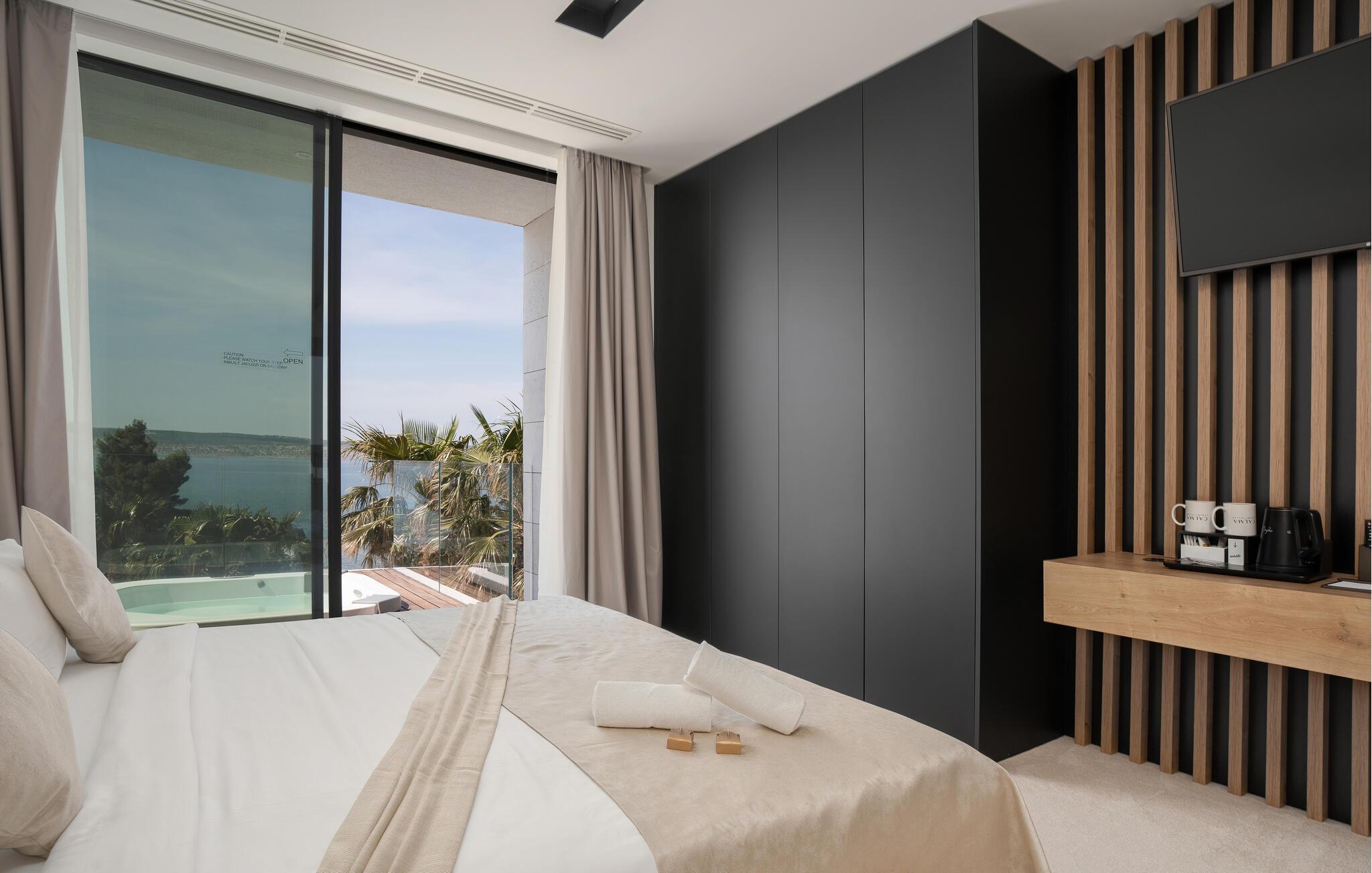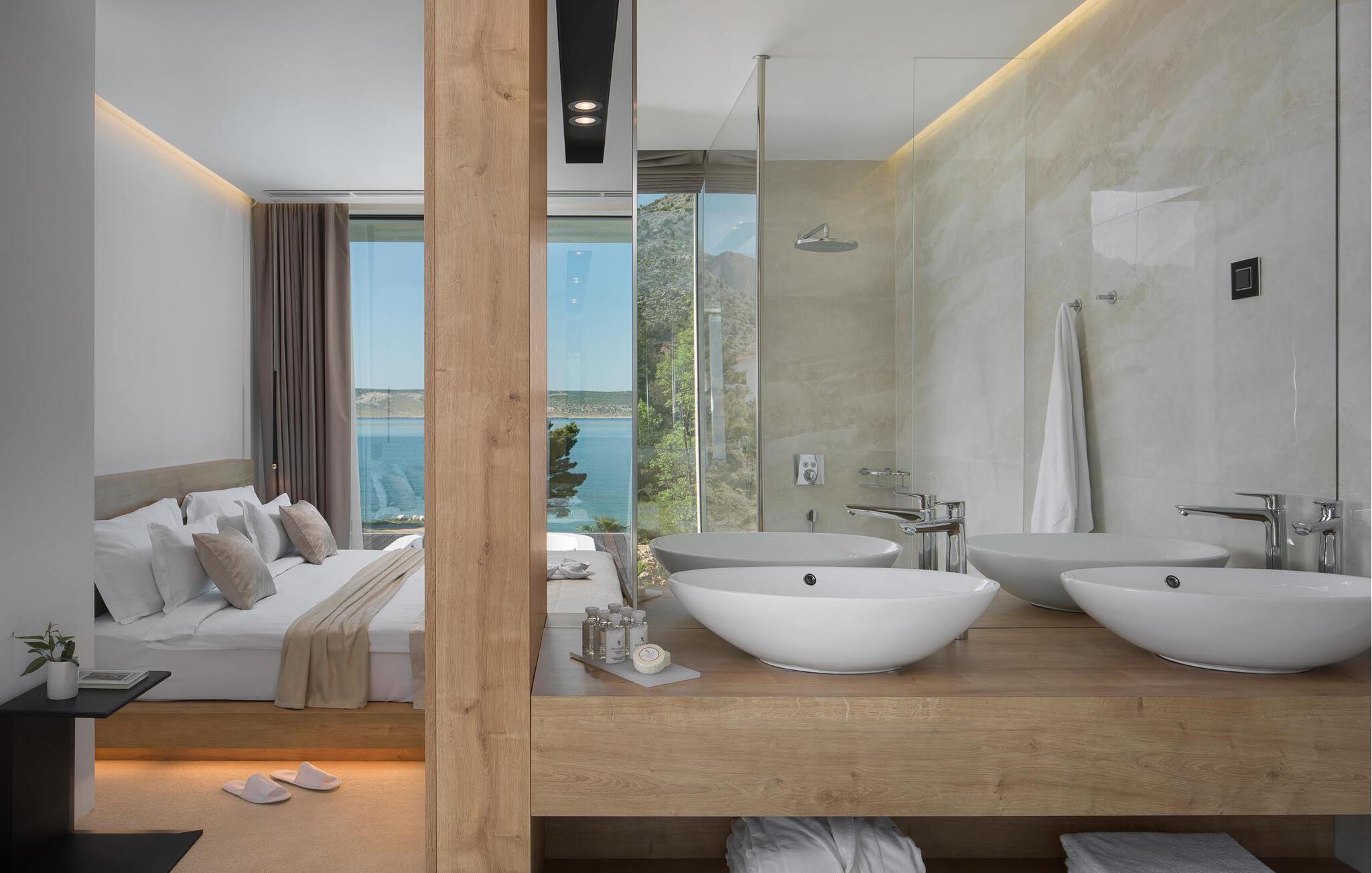 Forkæl jer selv med luksuriøs afslapning i denne moderne villa med betagende havudsigt. Kun få meter fra det glitrende hav inviterer den moderne luksus Villa Anastazia i Starigrad jer til en uforglemmelig ferieoplevelse. Nyd panoramaudsigt over Velebit-kanalen direkte fra de fritstående badekar i to af soveværelserne. Nyd det høje komfortniveau og det stilfulde design, der er kendetegnet ved vægmalerier og møbler af høj kvalitet. Det stilfuldt møblerede, fuldt udstyrede køkken og den rummelige stue med pejs, smart-tv og PlayStation skaber en hyggelig atmosfære. En smuk pool omgivet af palmer og liggestole venter jer på terrassen og i haven. Wellness-området med bio-sauna og spabad på balkonen fuldender det luksuriøse tilbud. Starigrad glæder jer med en række udendørsaktiviteter. Tag på vandreture i den nærliggende Paklenica Nationalpark eller prøv rafting på Zrmanja-floden. Klatrere og naturelskere vil også finde noget for pengene her. Fans af filmen Winnetou, en indisk helt fra det vilde vesten, kan besøge det nærliggende museum med samme navn. Kulturelskere vil sætte pris på en tur til Zadar, som ligger kun en kort køretur væk, hvor romerske fora, middelalderkirker og det berømte Havorgel venter. Fordyb jer i regionens historie og nyd den perfekte blanding af afslapning, eventyr og kultur. Bemærk venligst: Ejendommen accepterer ikke ungdomsgrupper under 30 år eller polterabender. Bookinger fra sådanne grupper vil blive afvist, selv ved ankomst eller under opholdet, uden refusion.