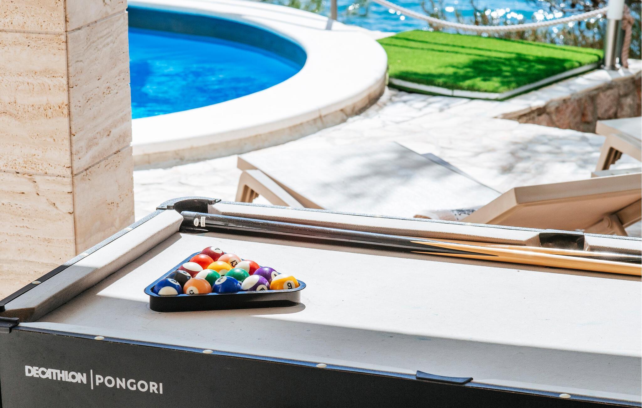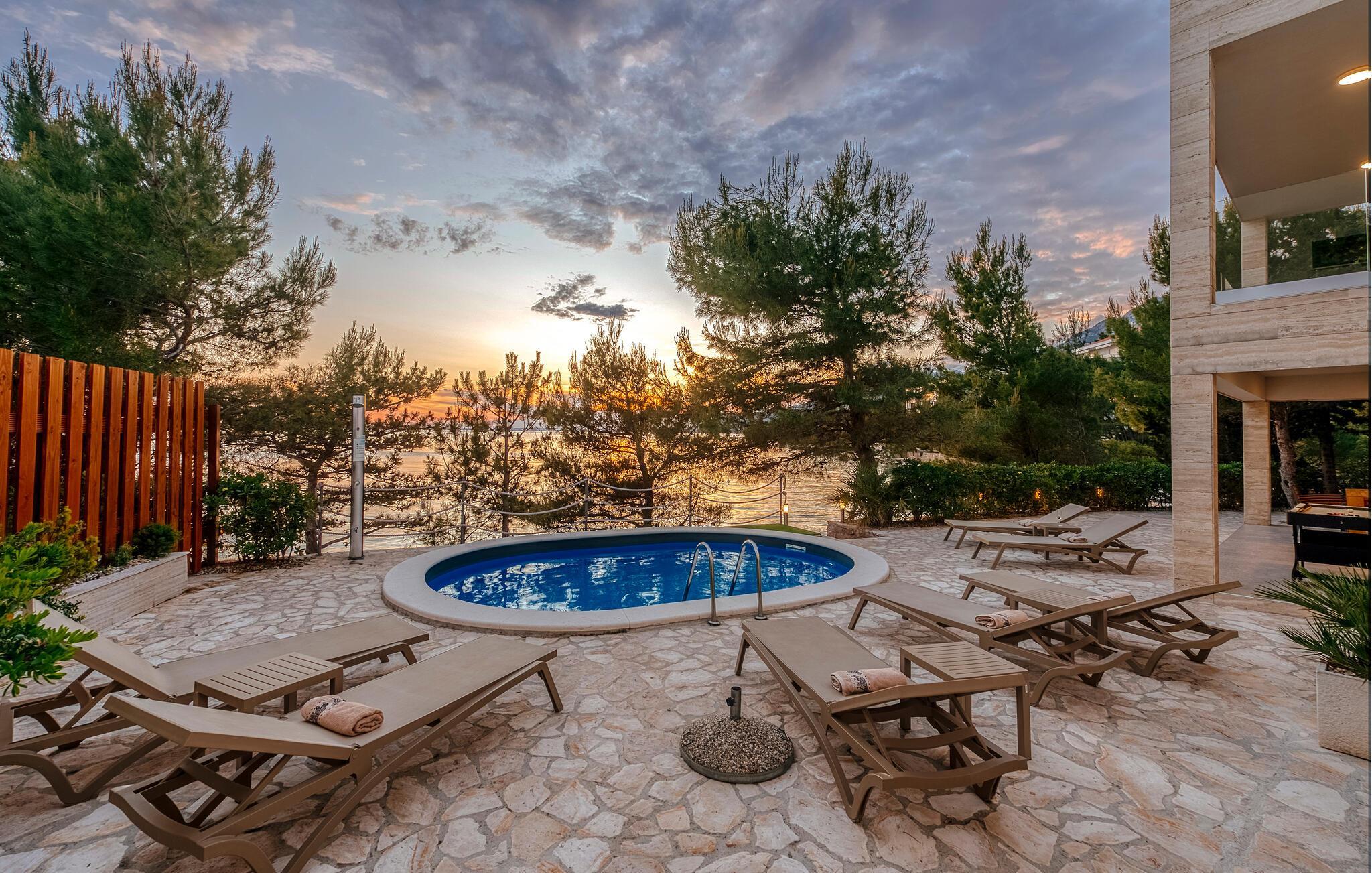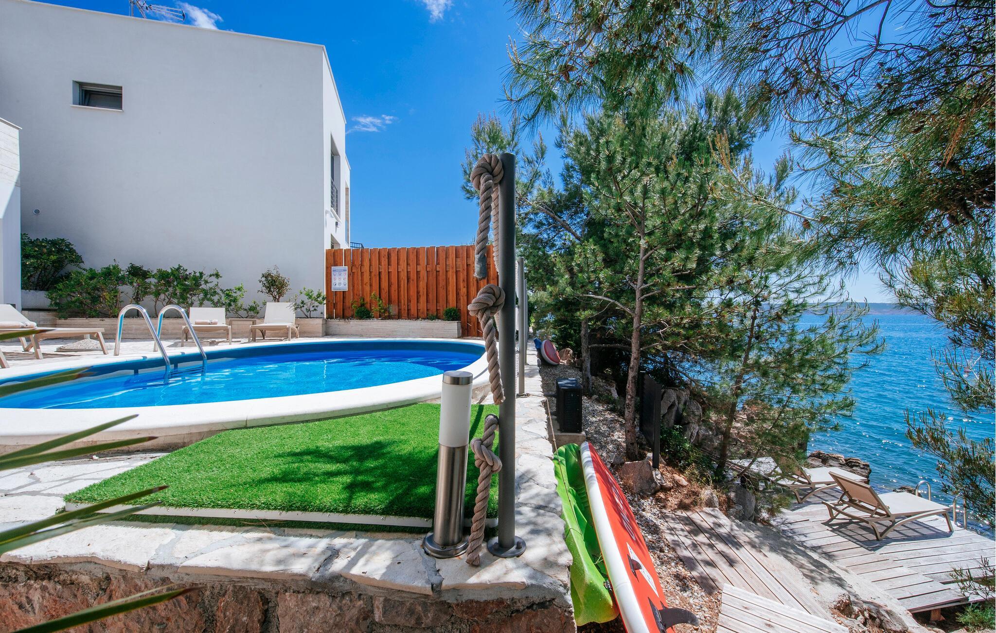 Tilbring jeres drømmeferie i dette luksuriøse feriehus med pool og sensationel havudsigt. Villa Neptun byder jer velkommen til en unik beliggenhed direkte ved Adriaterhavet og for foden af Velebit Naturpark og forkæler jer med smagfuldt møbleret interiør af høj kvalitet. Store vinduer sikrer rigeligt naturligt dagslys og tilbyder en fortryllende udsigt over det blå hav. Nyd harmoniske måltider i den stilfulde spisestue, og efter en lang dag i solen kan I slå jer ned i den indbydende stue til stimulerende samtaler med et glas vin. Udendørsområdet tilbyder også attraktive muligheder for spisning under åben himmel. snup en frisk dukkert i poolen, når I har lyst – takket være den stemningsfulde belysning er selv natsvømning en sand oplevelse – genoplad batterierne på de komfortable liggestole og nyd en solnedgang på jeres private badebro eller tag en kajaktur herfra. Der er en grill til stemningsfuld fest på lune sommernætter. Udforsk de spektakulære kløfter i Paklenica Nationalpark ved at vandre eller klatre, tag en bådtur for at opdage skjulte bugter og strande, og udforsk undervandsverdenen ved at snorkle eller svømme. Cykl gennem olivenlunde og vinmarker, prøv lokale specialiteter i traditionelle landsbyer, og slentre gennem Zadars historiske gamle bydel med det berømte Havorgel og "Hilsen til Solen".