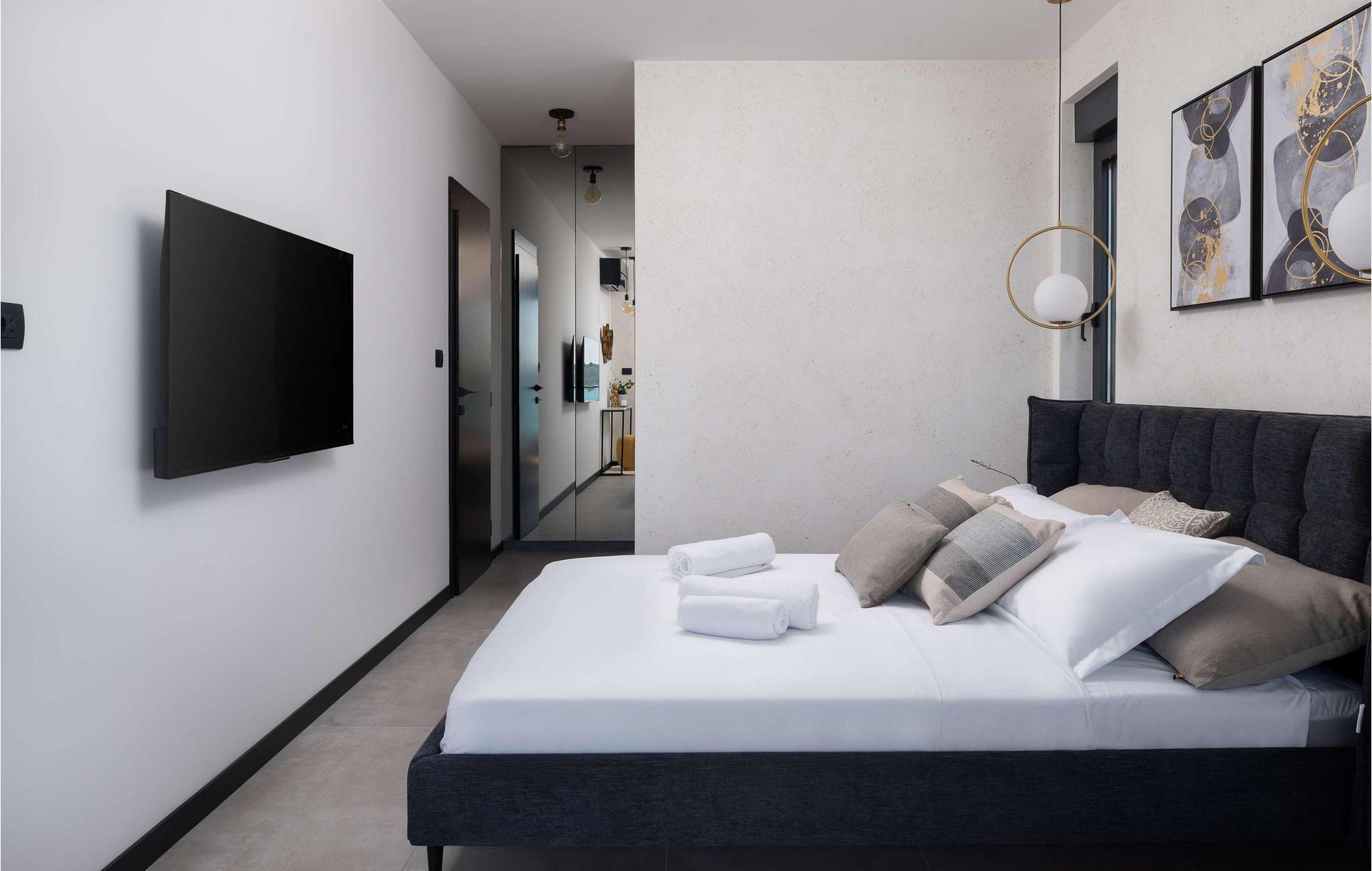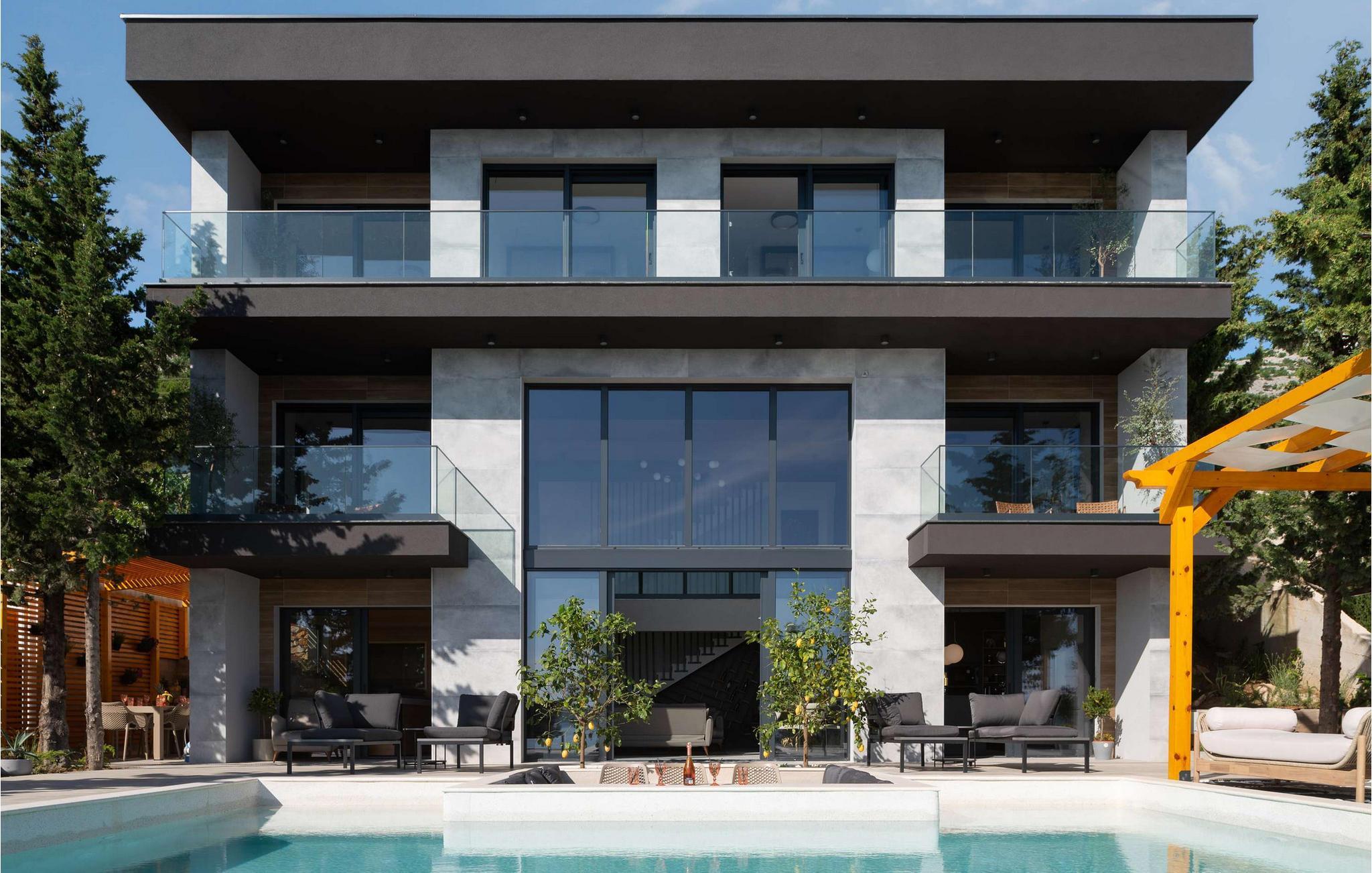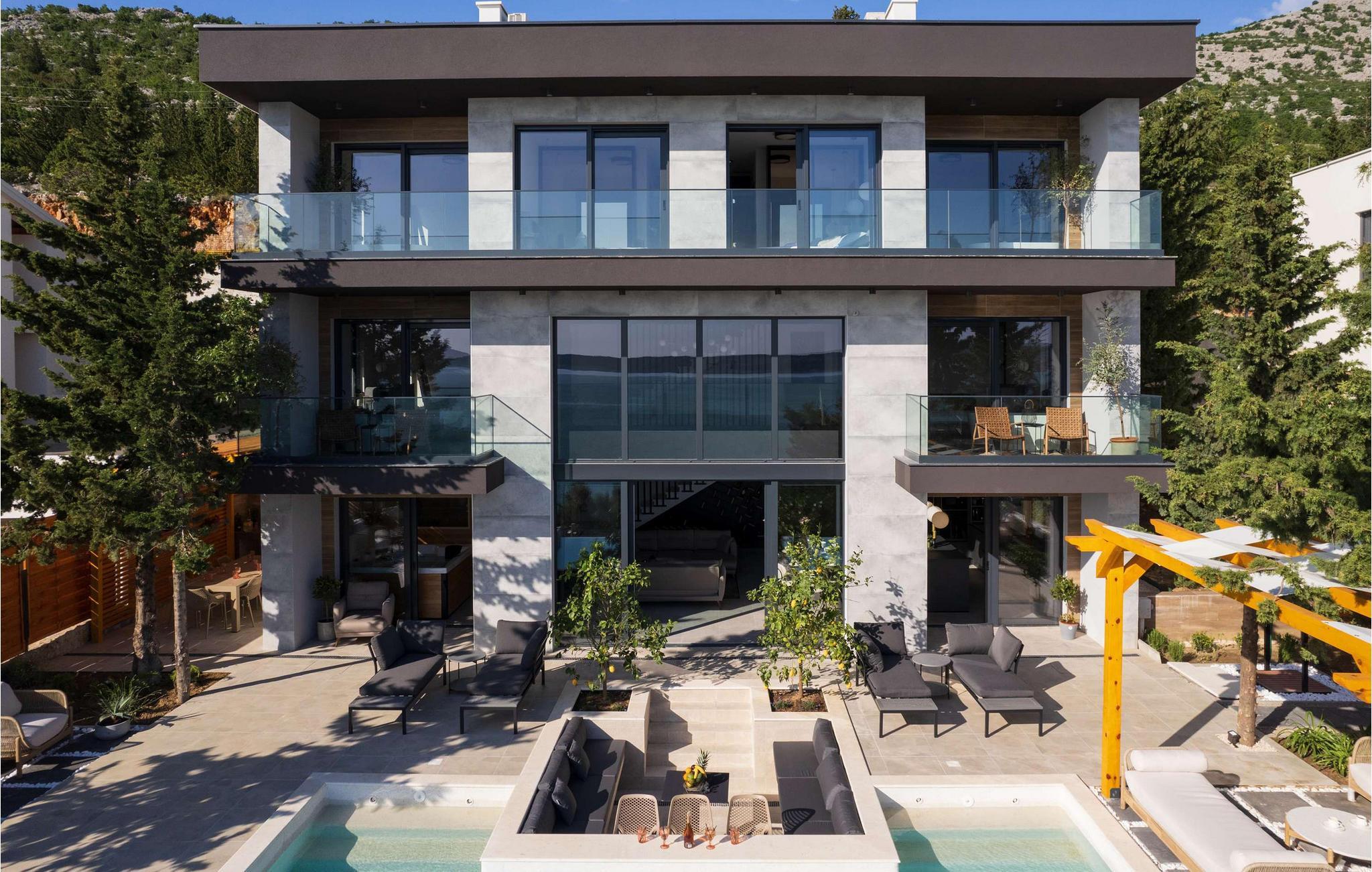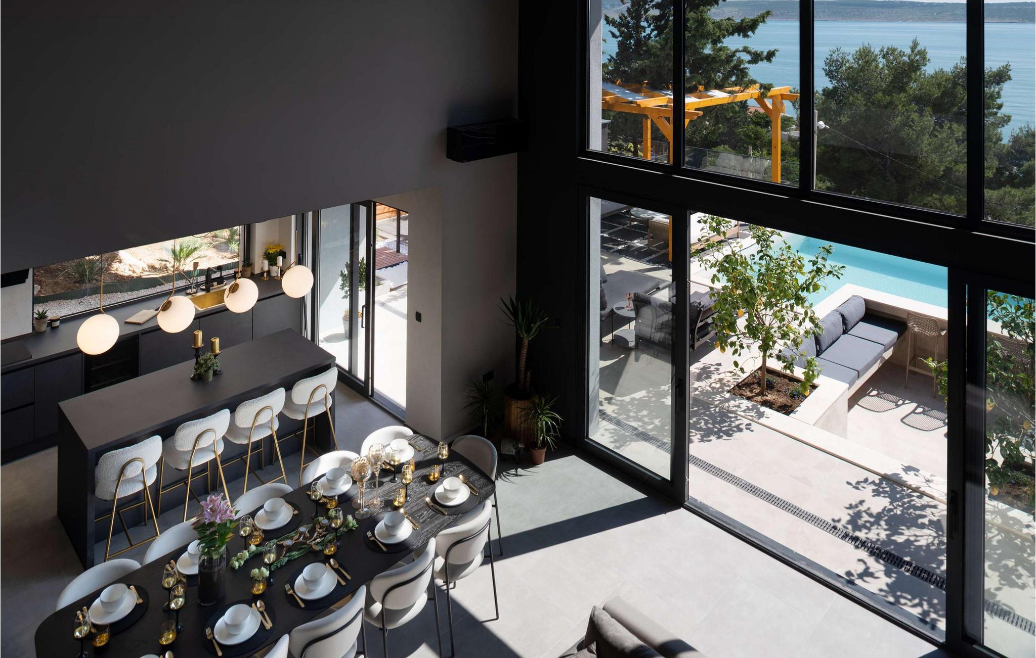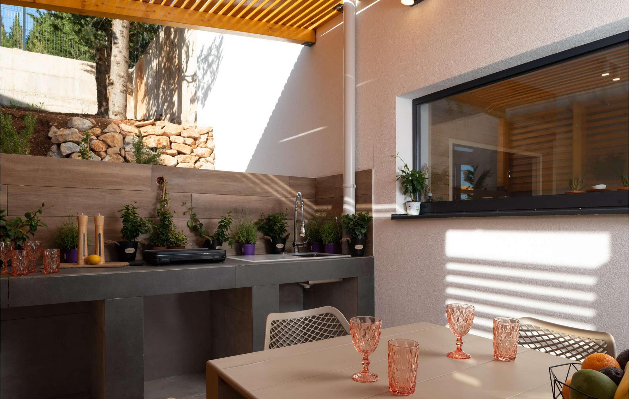 Nyd den storslåede udsigt over Adriaterhavet, mens I svømmer baner i poolen. Slap af på de komfortable liggestole eller træk jer tilbage til det skyggefulde loungeområde. I kan også benytte jer af den udendørs grill og sommerkøkkenet.