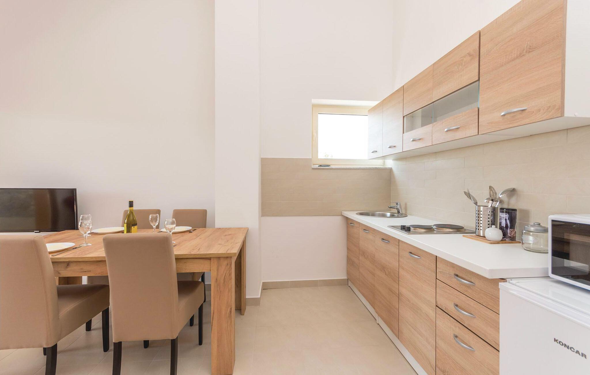 Denne moderne og komfortable ferielejlighed i Starigrad Paklenica lægger op til en uforglemmelig ferie med sin lyse atmosfære og synlige bjælker. De smagfulde møbler tilbyder jer alt hvad I behøver for et afslappende ophold. Start dagen på terrassen med en afslappet morgenmad og havudsigt eller afslut den med et glas vin. Ved den fælles pool kan I solbade, svømme og måske tale med andre gæster - en vidunderlig mulighed for nye møder. Hvorfor ikke mødes til en grillmiddag og afslutte dagen med lokale specialiteter.
