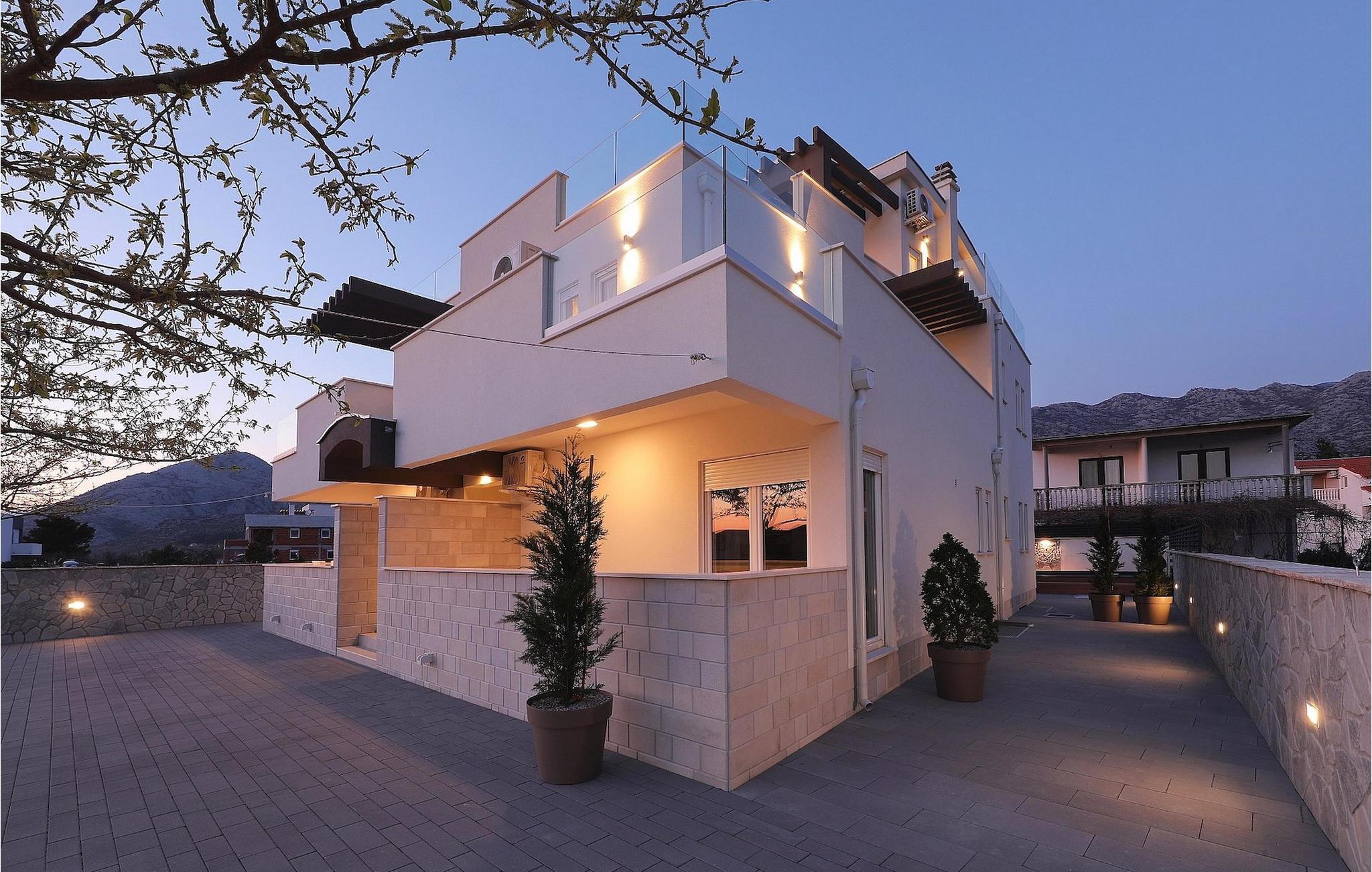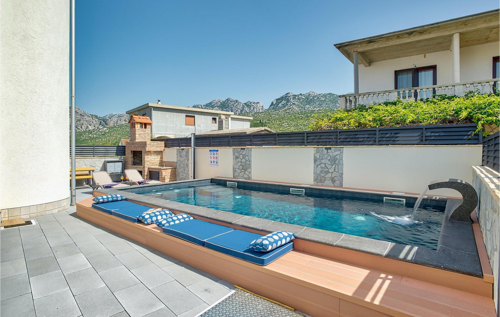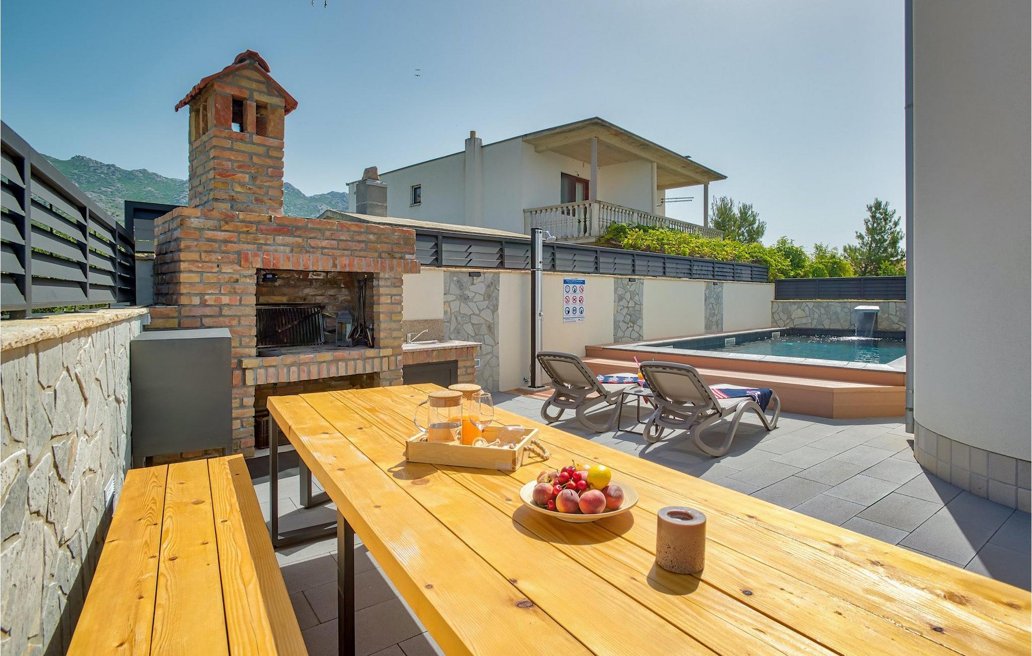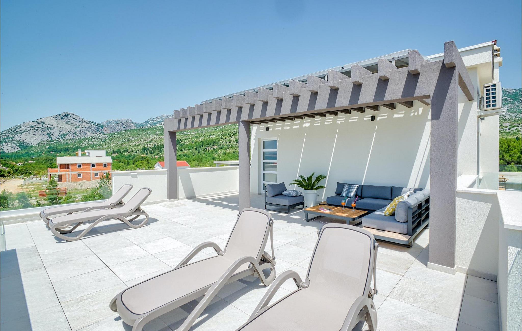 Hvis hele gruppen har lyst til at sidde sammen og hygge sig, så gå ned i underetagen, hvor du finder en stor spisestue bord og opholdsstue med dart og Playstation 4. Slap af ved villaens private pool om dagen eller nyd den smukke udsigt over Adriaterhavet fra tagterrassen, tag en lur på det komfortable siddeområde eller nyd de varme solstråler på solen liggestole.
