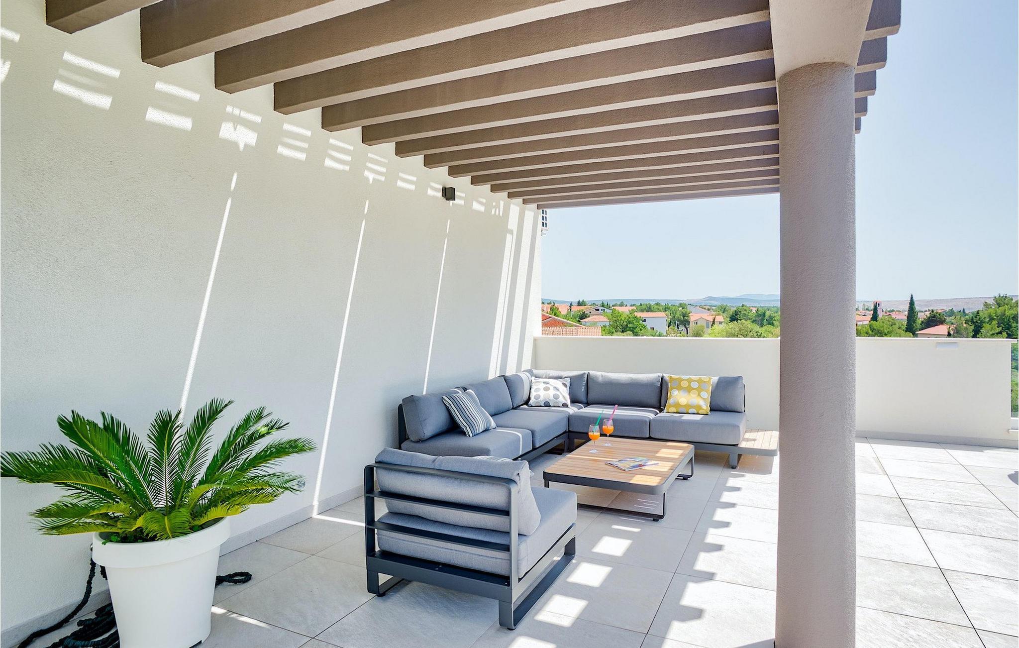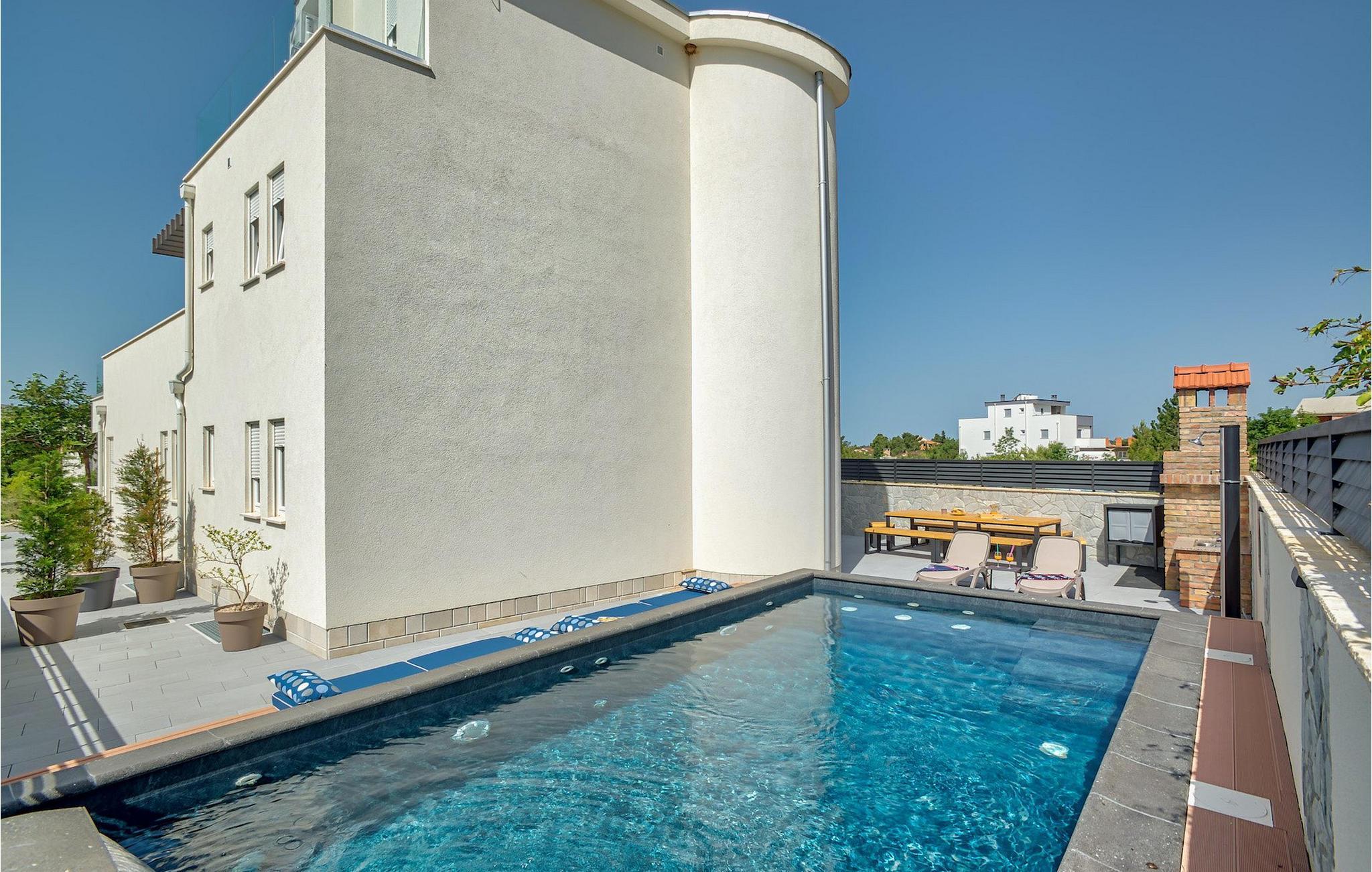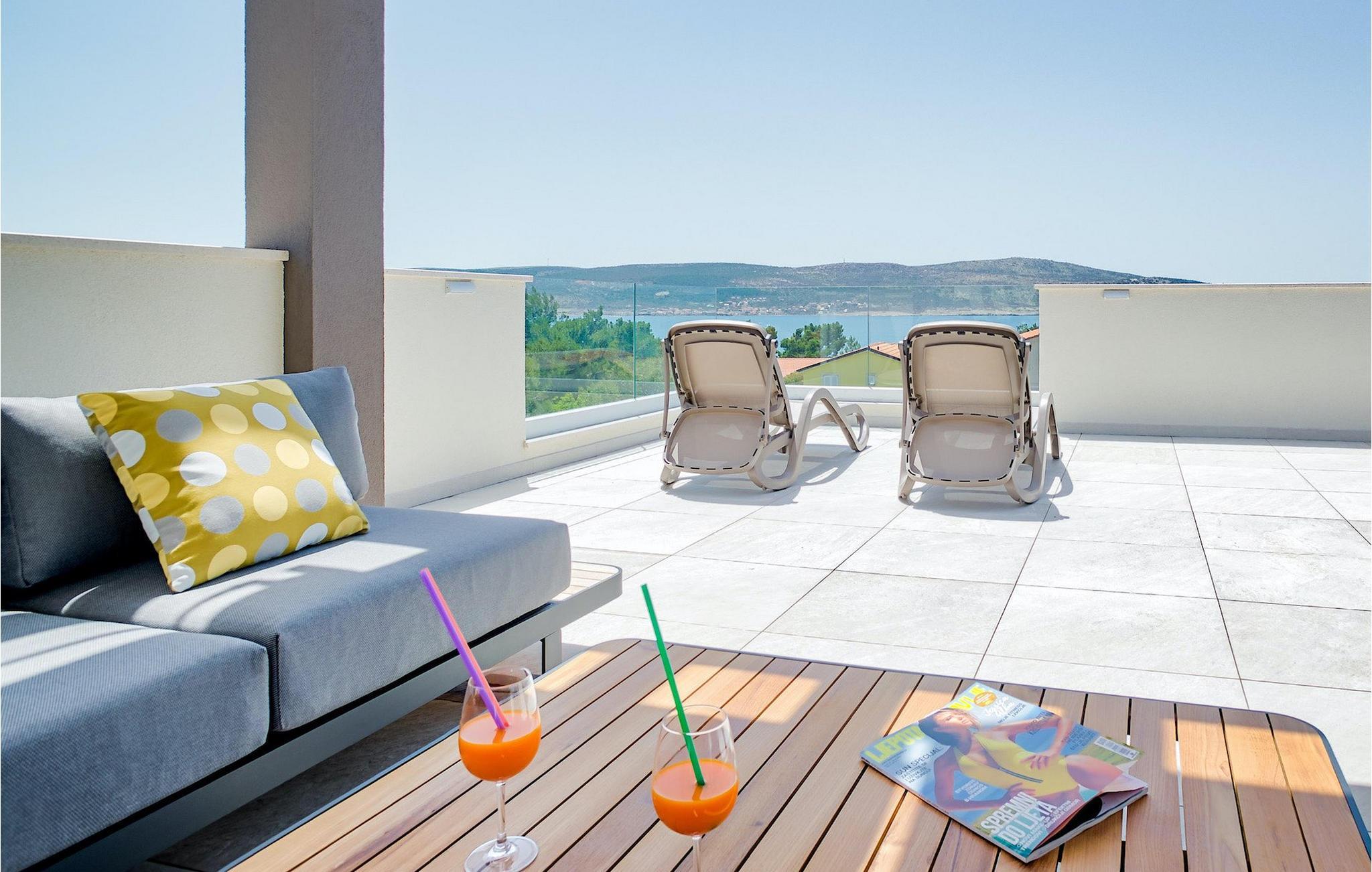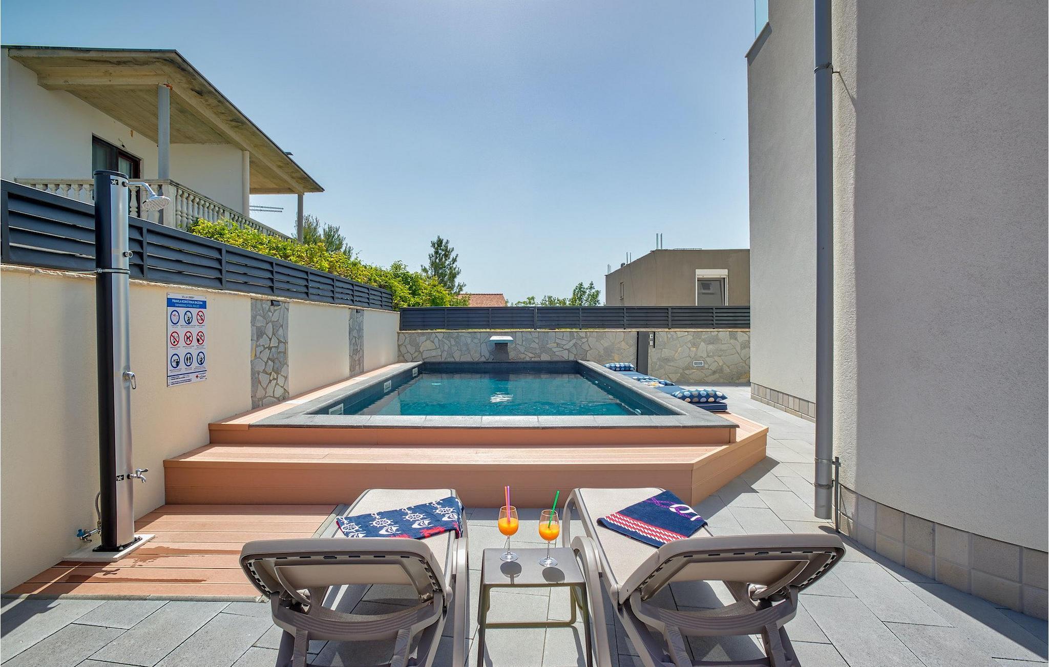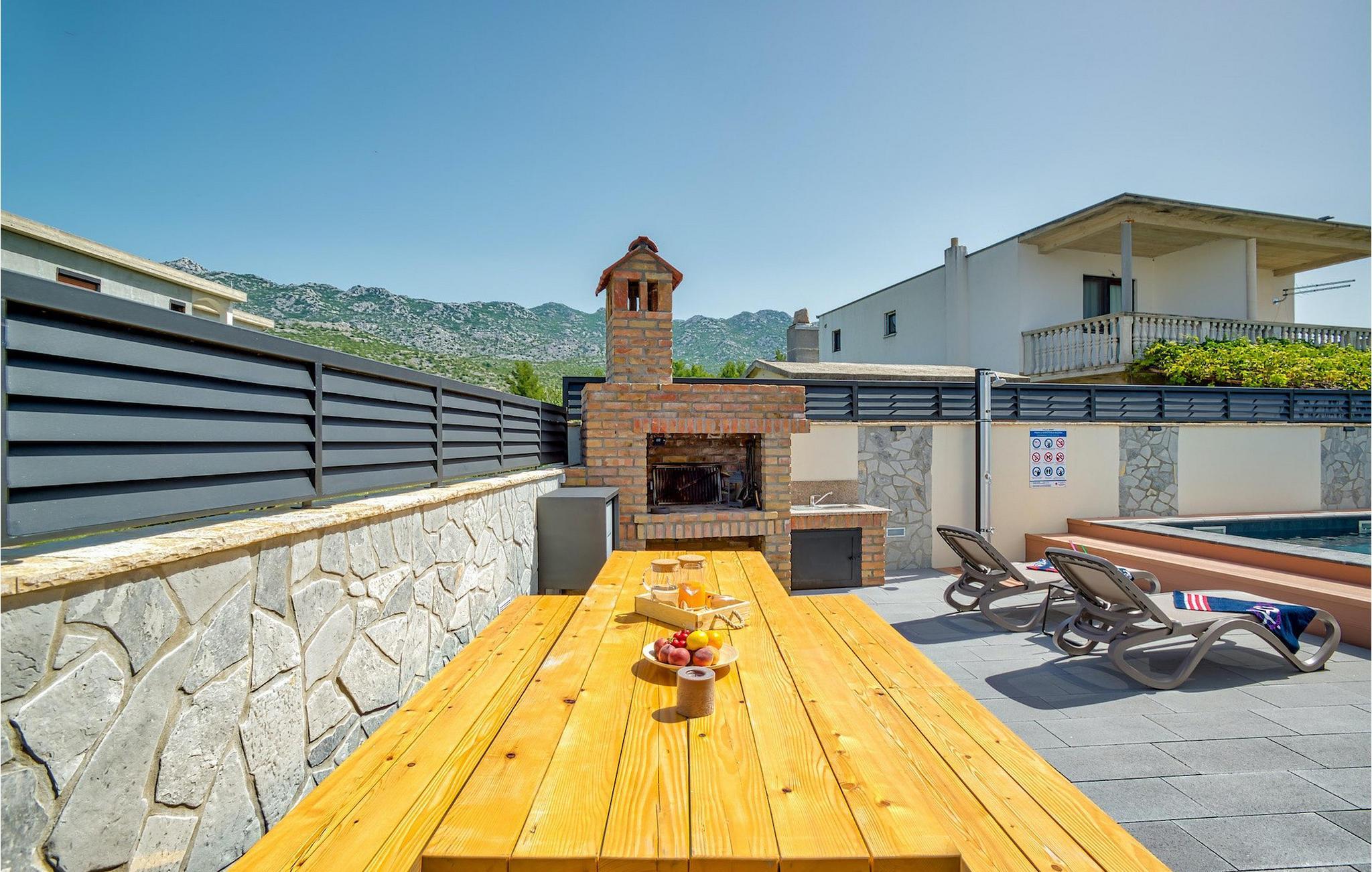 Hvis hele gruppen har lyst til at sidde sammen og hygge sig, så gå ned i underetagen, hvor du finder en stor spisestue bord og opholdsstue med dart og Playstation 4. Slap af ved villaens private pool om dagen eller nyd den smukke udsigt over Adriaterhavet fra tagterrassen, tag en lur på det komfortable siddeområde eller nyd de varme solstråler på solen liggestole.