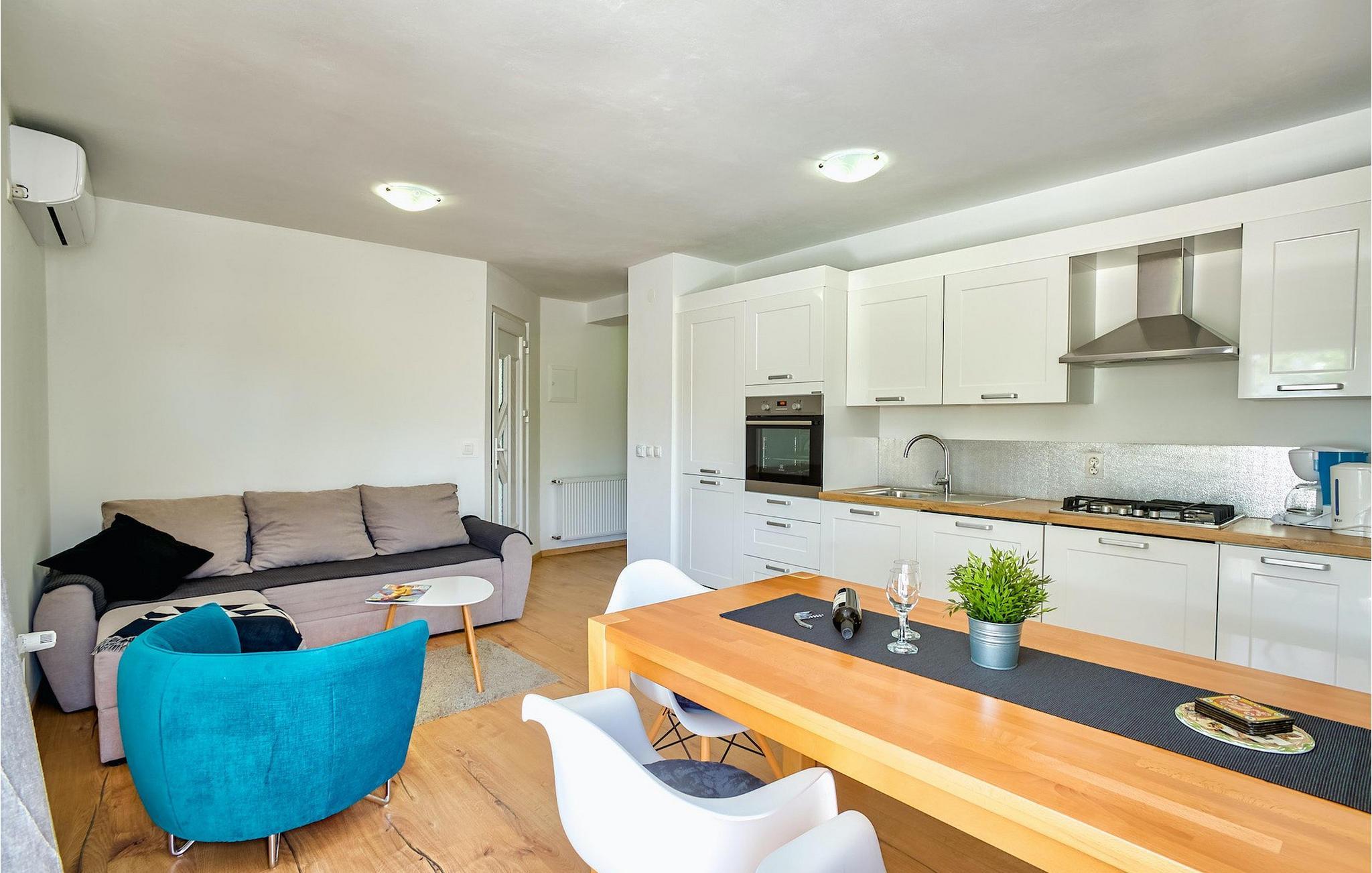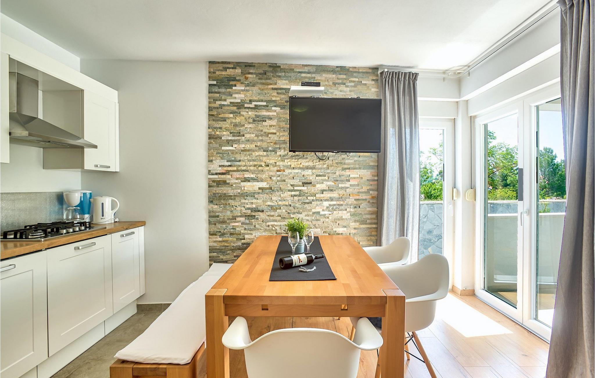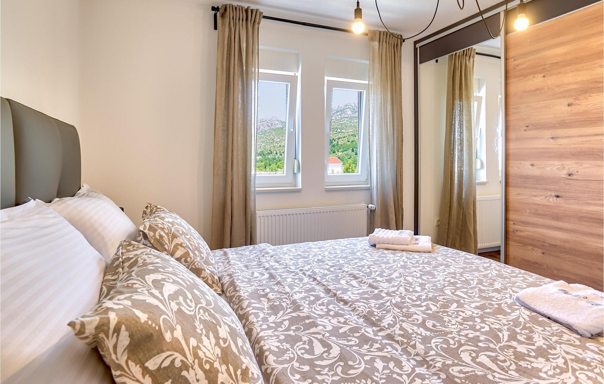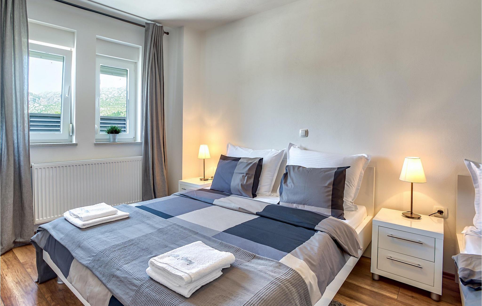 En traditionel grill med en udendørs spiseplads er også til din rådighed og giver den ideelle mulighed for at tilberede lækre fiskeretter og smukt afrunde din oplevelse af det centrale Dalmatien. :)Seline er en lille landsby beliggende nær Starigrad-Paklenica. Paklenica National Park, der ligger omkring 50 km nord for Zadar, er et sandt paradis og populær destination for bjergbestigere og klatrere fra hele verden. Seline er godt forbundet til Straigrad-Paklenica af gang- og cykelstier, der fører gennem små, maleriske landsbyer og landsbyer. Byen har en fantastisk beliggenhed, da Seline ligger mellem den betagende Paklenica-kløft og det krystalklare Adriaterhav med dets strande. Starigrad-Paklenica var i sin fortid en romersk by omgivet af en bymur med udviklet kultur og civilisation. I dag er byen et livligt turistcenter og et meget behageligt feriemål for familier, bjergbestigere, videnskabsmænd og alle naturelskere.