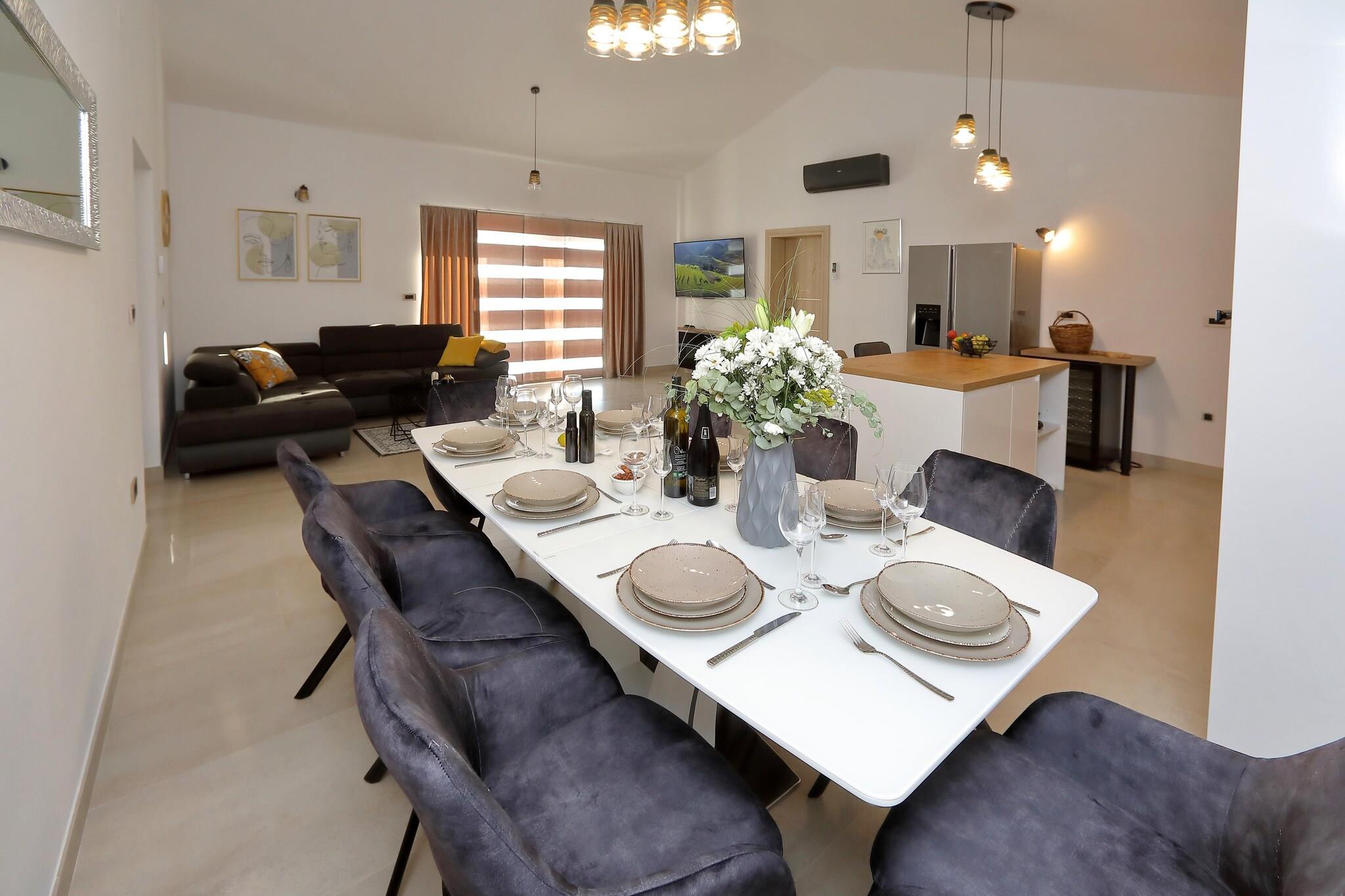 Perfekt til fire par eller en gruppe venner, denne villa i Starigrad Paklenica tilbyder en opvarmet privat pool og to rummelige terrasser til morgenkaffe eller solnedgangschat. Haven er ideel til afslappet morgenmad, mens grillopsætningen tilføjer smag til dine aftener. En vaskemaskine sikrer bekvemmelighed under længere ophold. Villaen ligger kun 3 km fra byens centrum og tilbyder nem adgang til butikker, restauranter og supermarkeder. Stranden ligger kun 4 km væk, perfekt til solbadning eller fredelige gåture. Uanset om du har lyst til lokalt køkken eller detailterapi, er alt inden for rækkevidde for en afslappet kystflugt. Denne villa blander komfort med stil og byder på hyggelige udendørsmøbler, et veludstyret køkken og vaskefaciliteter. Den opvarmede pool giver nydelse året rundt, mens terrasserne og haven inviterer dig til at slappe af efter at have udforsket det nærliggende hav eller by. Det er en fredfyldt base for mindeværdige grupperejser.