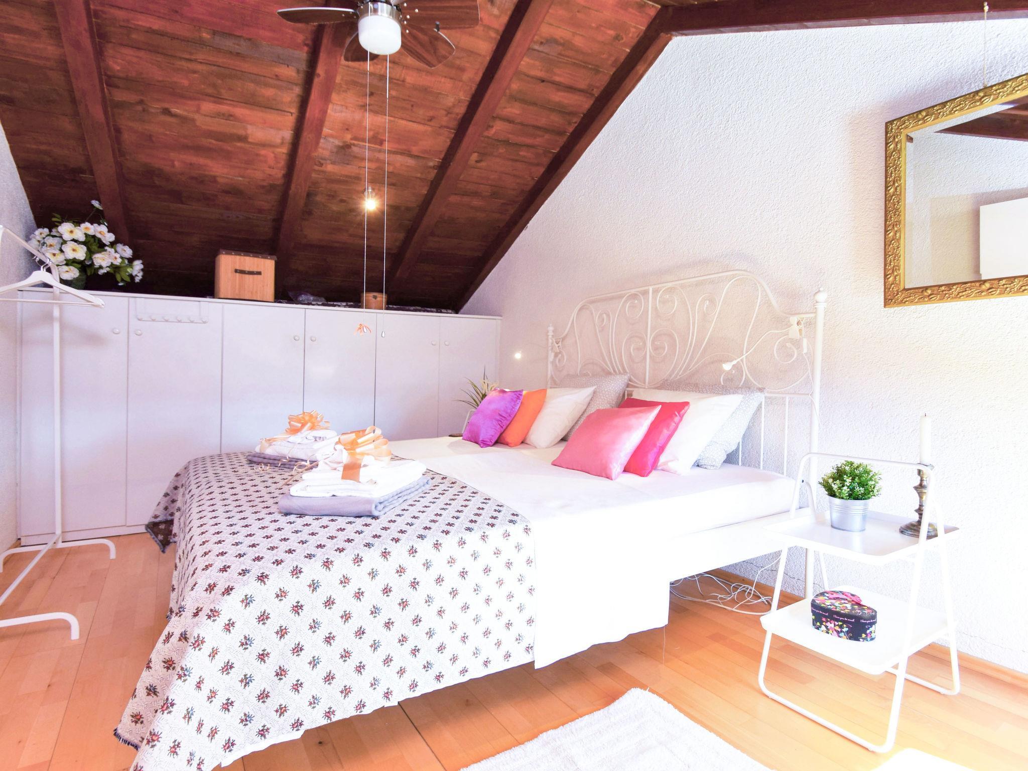 3-room semi-detached house 111 m2 on 3 levels. Dining room. Open kitchen (1 hot plate, oven, dishwasher, 4 induction hot plates, toaster, kettle, microwave, freezer, electric coffee machine). Exit to the terrace. Shower/bidet/WC. Upper floor: living room with 1 sofabed (150 cm, length 200 cm), satellite TV and air conditioning. Exit to the terrace. Top floor: open walk-through room with sloping ceilings with 2 sofabeds (75 cm, length 200 cm), air conditioning. 1 room with sloping ceilings with 1 double bed (180 cm, length 200 cm), satellite TV (flat screen), fan. No heating option. Terrace 10 m2, terrace 30 m2 partly roofed. Terrace furniture, electric barbecue, deck chairs. Facilities: iron, hair dryer. Internet (WiFi, free). Please note: non-smoking house. The dining room on the ground floor is situated 3 steps above the open kitchen. Low placed windows on the top floor.
