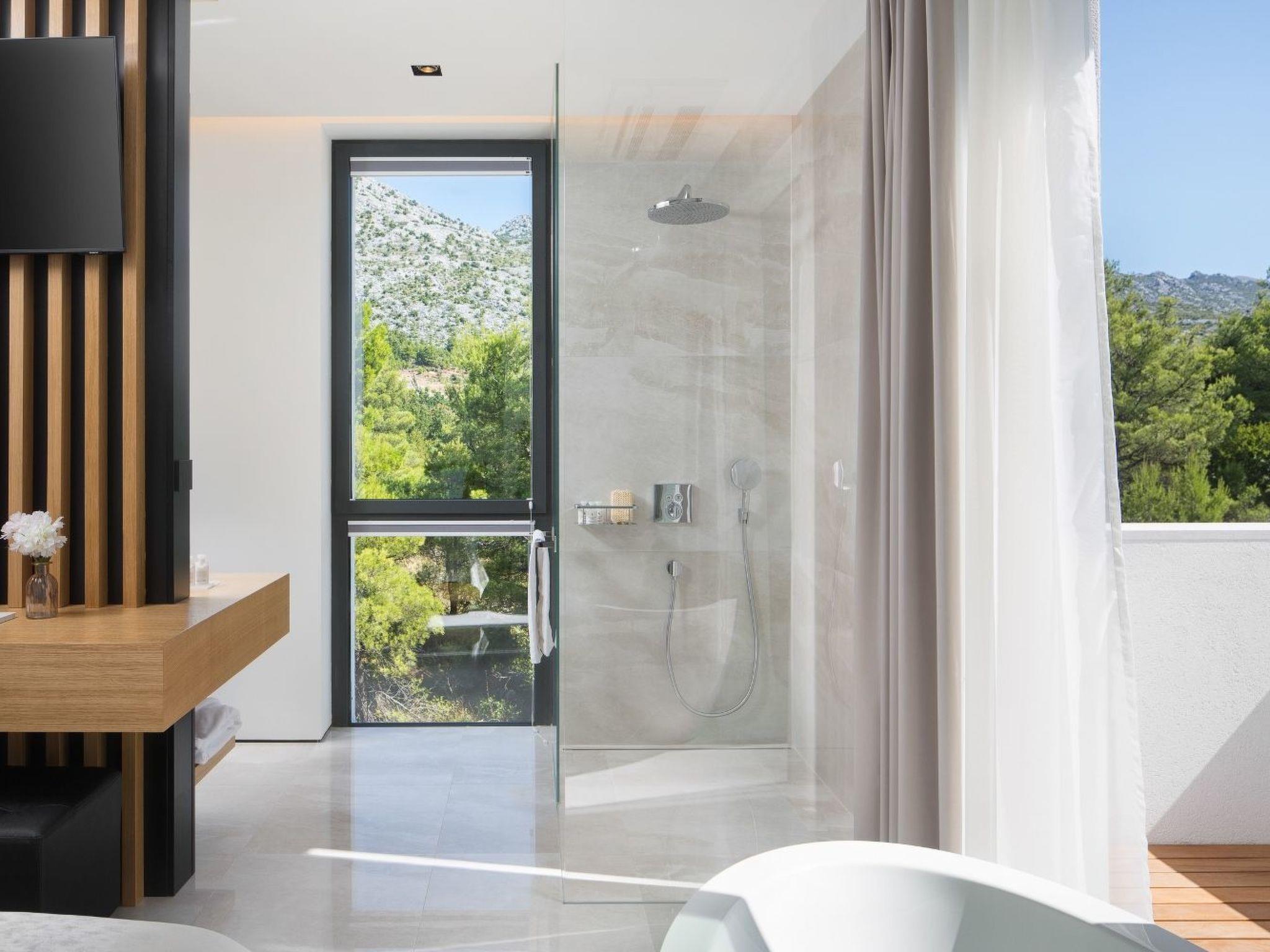 Villa Opera promises an unwinding interior environment with four bedrooms, offering ample space for everyone in your party. Each bedroom comes accompanied by its own bathroom, providing privacy and comfort. The inclusion of air conditioning throughout the villa guarantees a cool and pleasant climate regardless of the weather outside. Practical amenities such as a clothes dryer, coffee machine, dishwasher, and electric kettle further enhance your stay, ensuring a blend of relaxation and convenience.