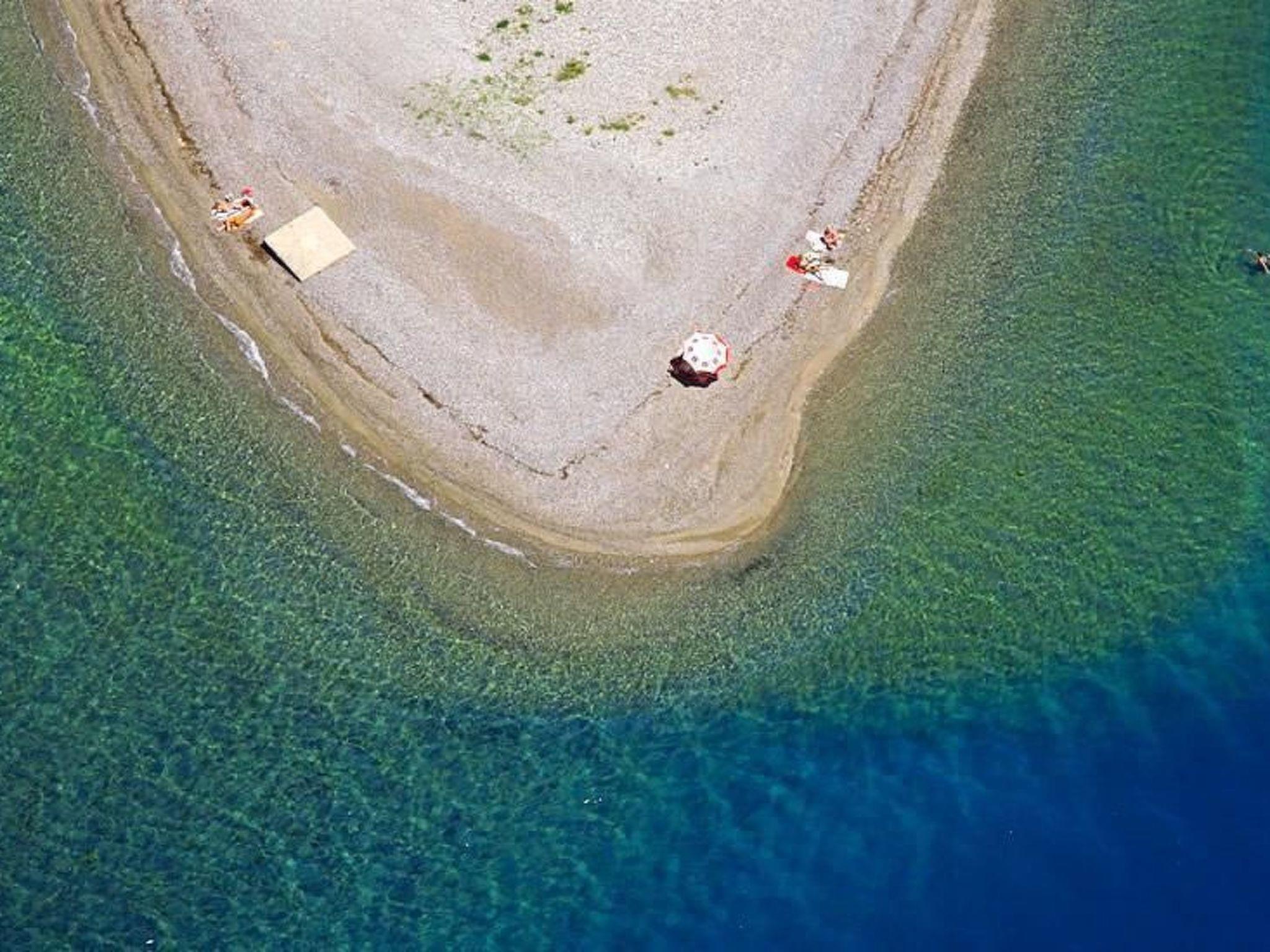 The 30m² balcony is furnished with a table and chairs. From here you can enjoy a beautiful view of the sea and the national park.