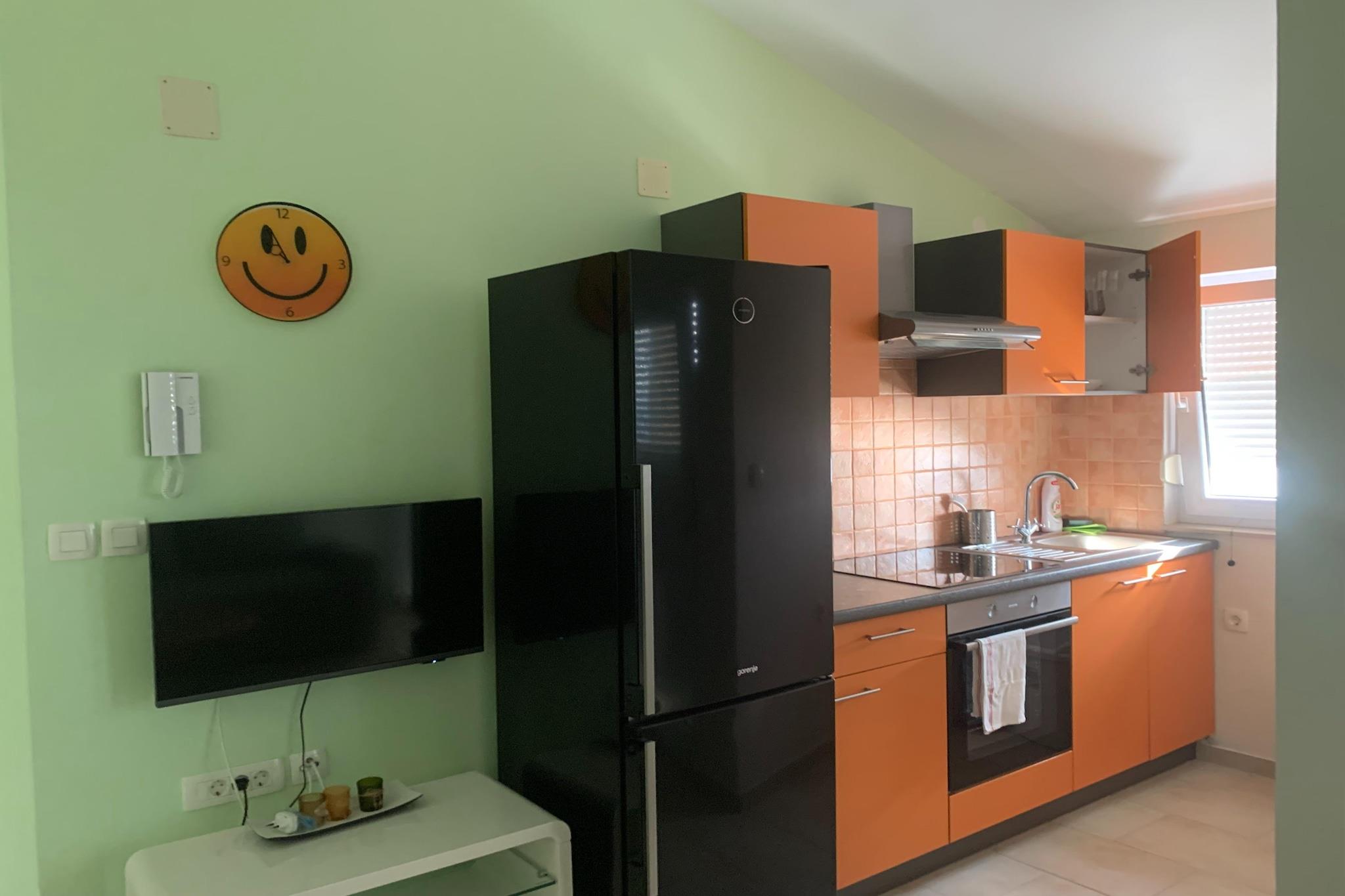 Denne komfortable lejlighed ligger på 2. sal i en fredelig bolig i Dalmatien og tilbyder alt, hvad du behøver for en afslappende kystferie. Ejendommen har en bekvem beliggenhed nær Adriaterhavskysten med nem adgang til lokale butikker, restauranter og smukke naturomgivelser, herunder Paklenica Nationalpark. Indenfor finder du en lys opholds- og spisestue med fladskærms-tv, en sovesofa til én person og et spisebord. Det moderne køkken er fuldt udstyret med elkedel, brødrister, komfur, kaffemaskine, mikrobølgeovn, opvaskemaskine og køleskab med fryser, hvilket gør det nemt at tilberede dine yndlingsmåltider. Soveværelset har en hyggelig dobbeltseng, mens badeværelset har bruser, håndvask og toilet. Gæsterne kan slappe af på den private balkon eller nyde den fælles terrasse og have, som er udstyret med havemøbler, liggestole og et loungesæt. Den fælles opvarmede swimmingpool er perfekt til en forfriskende dukkert, og der er også parkering på stedet for din bekvemmelighed. Aircondition sikrer komfort under hele dit ophold, hvilket gør denne lejlighed til et ideelt valg til en fredelig ferie i solrige Starigrad.