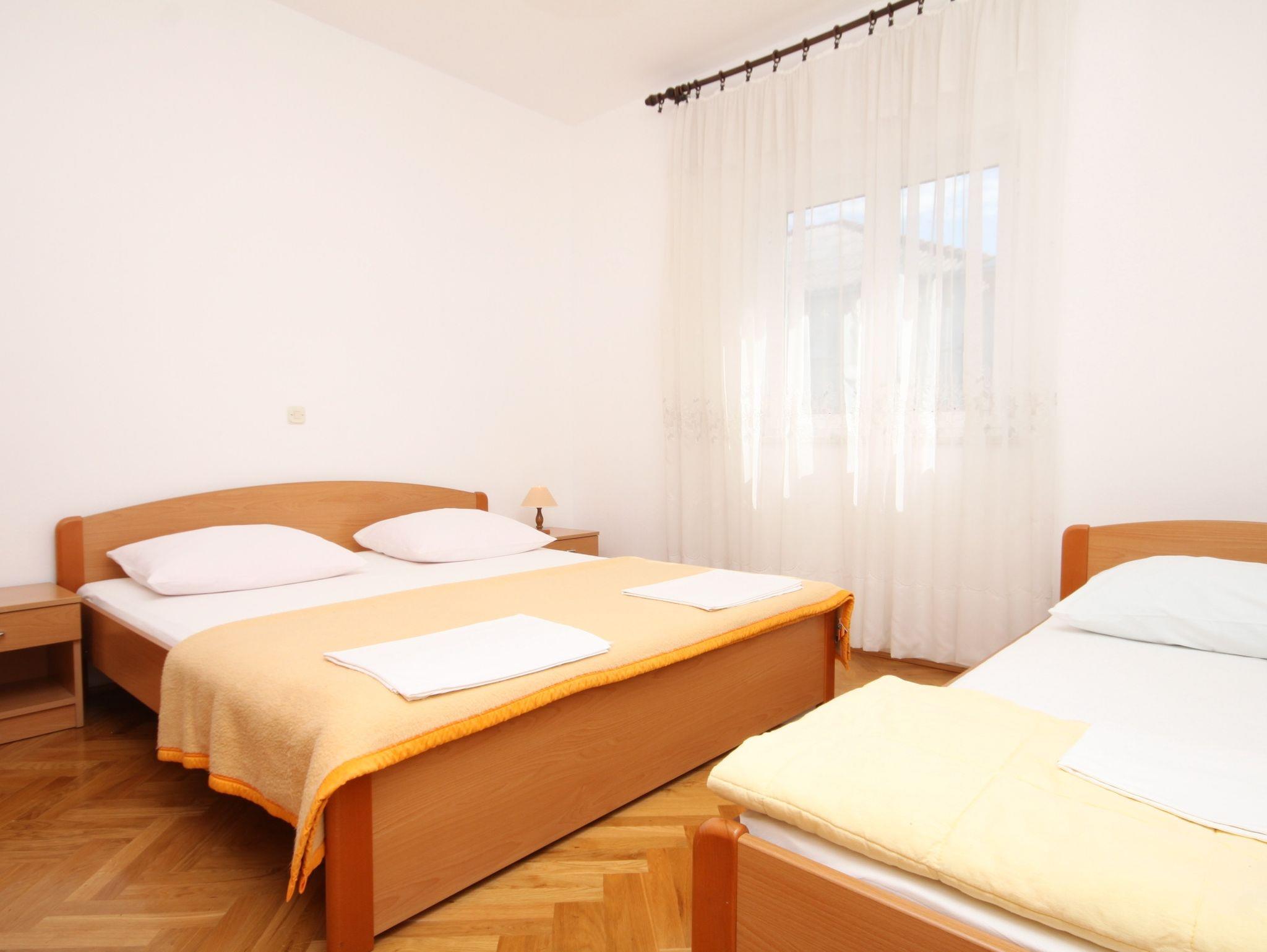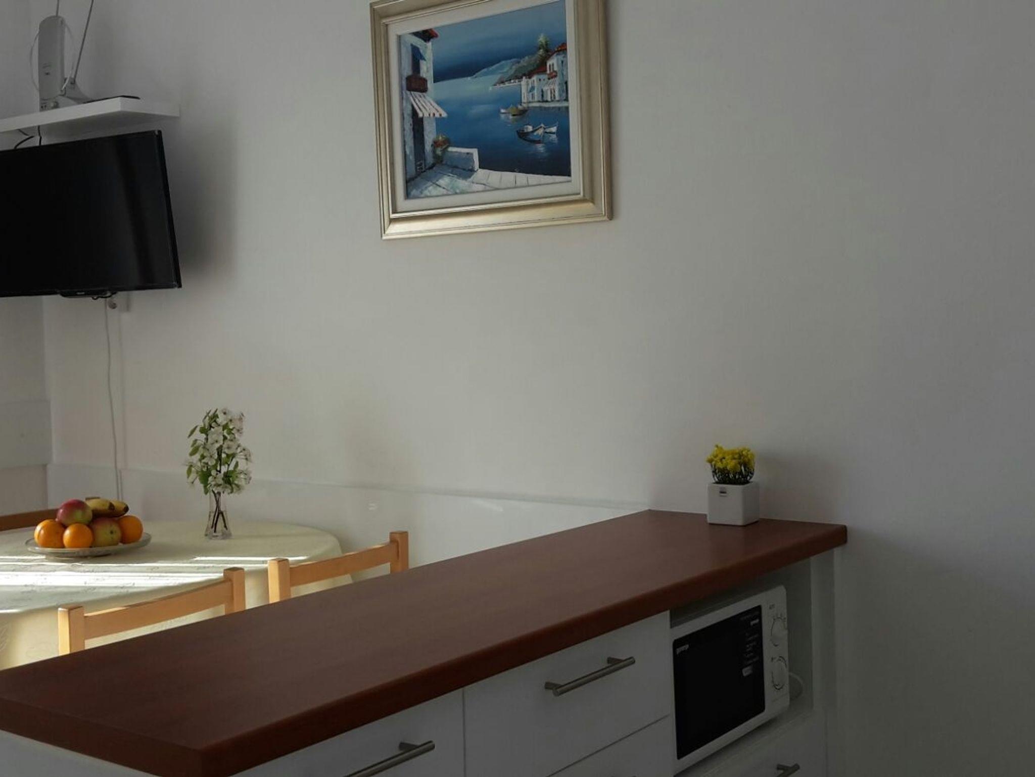 Ferienwohnung bietet Platz für 4 Gäste. Die Betten sind in Schlafzimmern, die es 1 gibt, und in Wohnzimmer, innerhalb einer Gesamtfläche von 35m2, angeordnet. Die Gäste haben einen eigenen Balkon zur Verfügung, auf der sie in warmen Sommernächten genießen können. Das Apartment bietet Meerblick. Es ist erlaubt, Speisen auf dem Gemeinschafts-Grill vorzubereiten. IM PREIS INBEGRIFFEN: Kurtaxe, Endreinigung, Parkplatz, Internet, Wäschewaschen, Bootsanlegeplatz, Kinderbett. VERBINDLICHE ZUSÄTZLICHE KOSTEN: Aufzahlung für Kurzaufenthalte (prozentualer Zuschlag pro Nächtigungsanzahl: 30% - 1, 20% - 2, 10% - 3). Die Verfügbarkeit zusätzlicher Dienstleistungen in Ihrem reservierten Termin und die Preise derselben (falls nicht aufgeführt) müssen im Voraus überprüft werden. Zusätzliche Dienstleistungen die in der Zahlungsaufforderung nicht aufgeführt sind werden direkt beim Vermieter bezahlt, angenommen der Gast nutzt auch diese. Ermäßigung auf den Grundpreis: Gratistag 14=13 (bei einem Aufenthalt von 14 Tagen oder mehr erhalten Sie einen Gratistag für den Aufenthalt bis 31.12.26).
