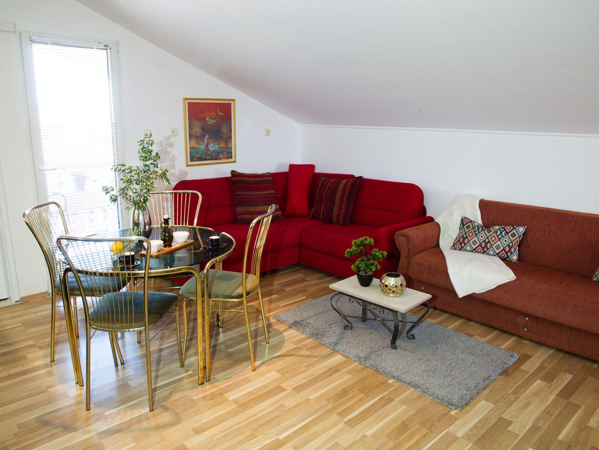 Ferienwohnung bietet Platz für 4 Gäste. Die Betten sind in Schlafzimmern, die es 1 gibt, und in Wohnzimmer, innerhalb einer Gesamtfläche von 50m2, angeordnet. Die Gäste haben eine eigene Terrasse zur Verfügung, auf der sie in warmen Sommernächten genießen können. Es ist erlaubt, Speisen auf dem Gemeinschafts-Grill vorzubereiten. In der Unterkunftseinheit besteht die Möglichkeit des Mitbringens von Haustieren, und die Dienstleistung ist im Preis der Unterkunft enthalten. IM PREIS INBEGRIFFEN: Kurtaxe, Endreinigung, Klimatisierung, Parkplatz, Internet, Wäschewaschen, Haustiere, Kinderbett, Bügeleisen, Bügelbrett, Föhn. VERBINDLICHE ZUSÄTZLICHE KOSTEN: Aufzahlung für Kurzaufenthalte (prozentualer Zuschlag pro Nächtigungsanzahl: 30% - 1, 20% - 2, 10% - 3). UNVERBINDLICHE ZUSÄTZLICHE KOSTEN: Zusatzbett (5,00 € pro Nacht). Die Verfügbarkeit zusätzlicher Dienstleistungen in Ihrem reservierten Termin und die Preise derselben (falls nicht aufgeführt) müssen im Voraus überprüft werden. Zusätzliche Dienstleistungen die in der Zahlungsaufforderung nicht aufgeführt sind werden direkt beim Vermieter bezahlt, angenommen der Gast nutzt auch diese. Ermäßigung auf den Grundpreis: Gratistag 14=13 (bei einem Aufenthalt von 14 Tagen oder mehr erhalten Sie einen Gratistag für den Aufenthalt bis 31.12.26).