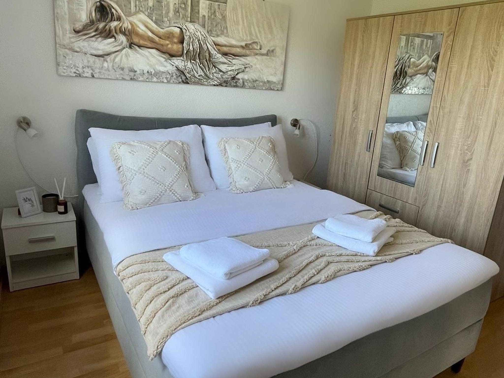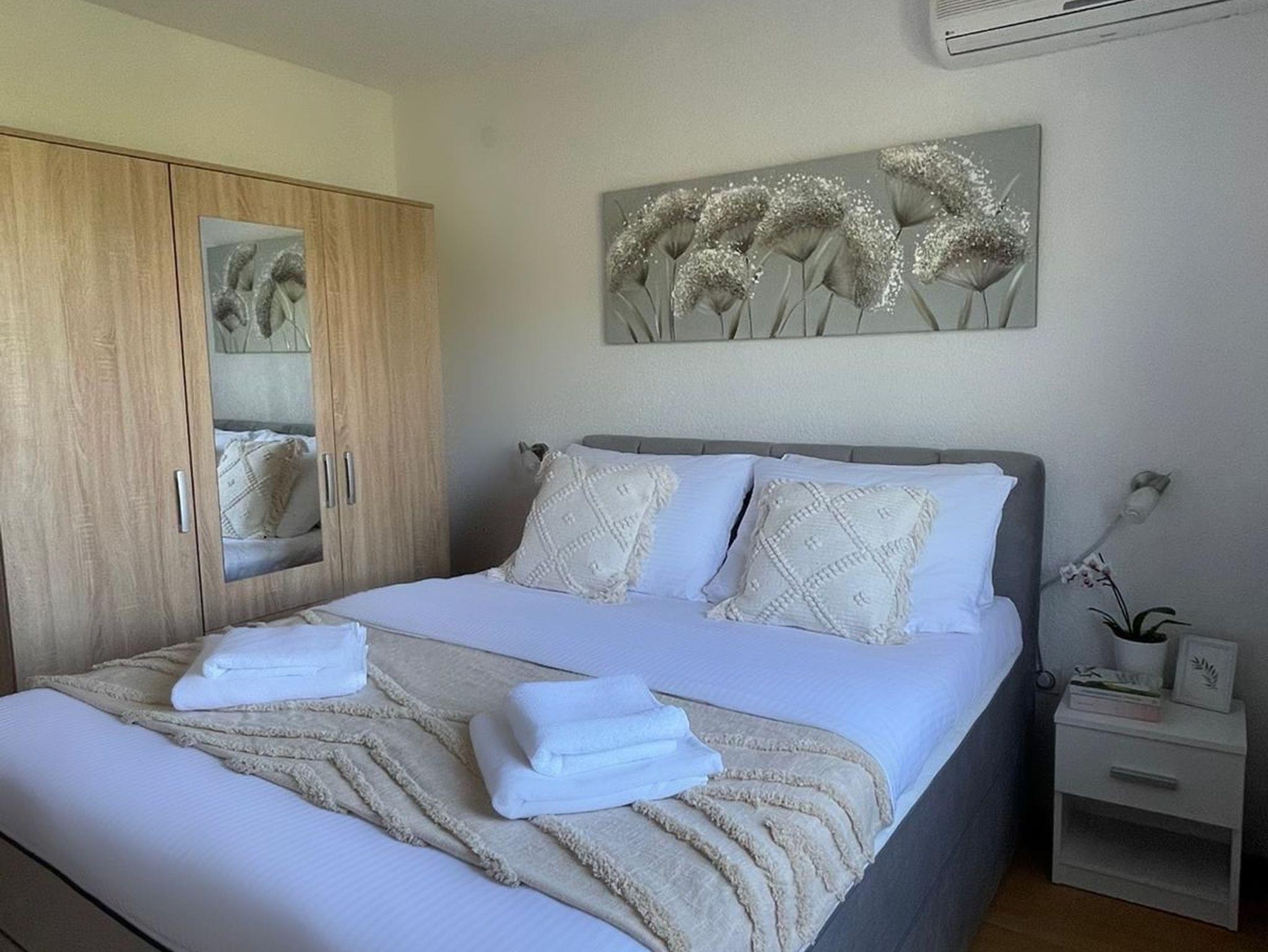 Ferienwohnung bietet Platz für 6 Gäste. Die Betten sind in Schlafzimmern, die es 2 gibt, und in Wohnzimmer, innerhalb einer Gesamtfläche von 62m2, angeordnet. Die Gäste haben eine eigene Terrasse zur Verfügung, auf der sie in warmen Sommernächten genießen können. Es ist erlaubt, Speisen auf dem Gemeinschafts-Grill vorzubereiten. IM PREIS INBEGRIFFEN: Kurtaxe, Endreinigung, Klimatisierung, Parkplatz, Internet, Zusatzbett, Föhn, tragbarer Grill, Sonnenschirm. Die Verfügbarkeit zusätzlicher Dienstleistungen in Ihrem reservierten Termin und die Preise derselben (falls nicht aufgeführt) müssen im Voraus überprüft werden. Zusätzliche Dienstleistungen die in der Zahlungsaufforderung nicht aufgeführt sind werden direkt beim Vermieter bezahlt, angenommen der Gast nutzt auch diese.