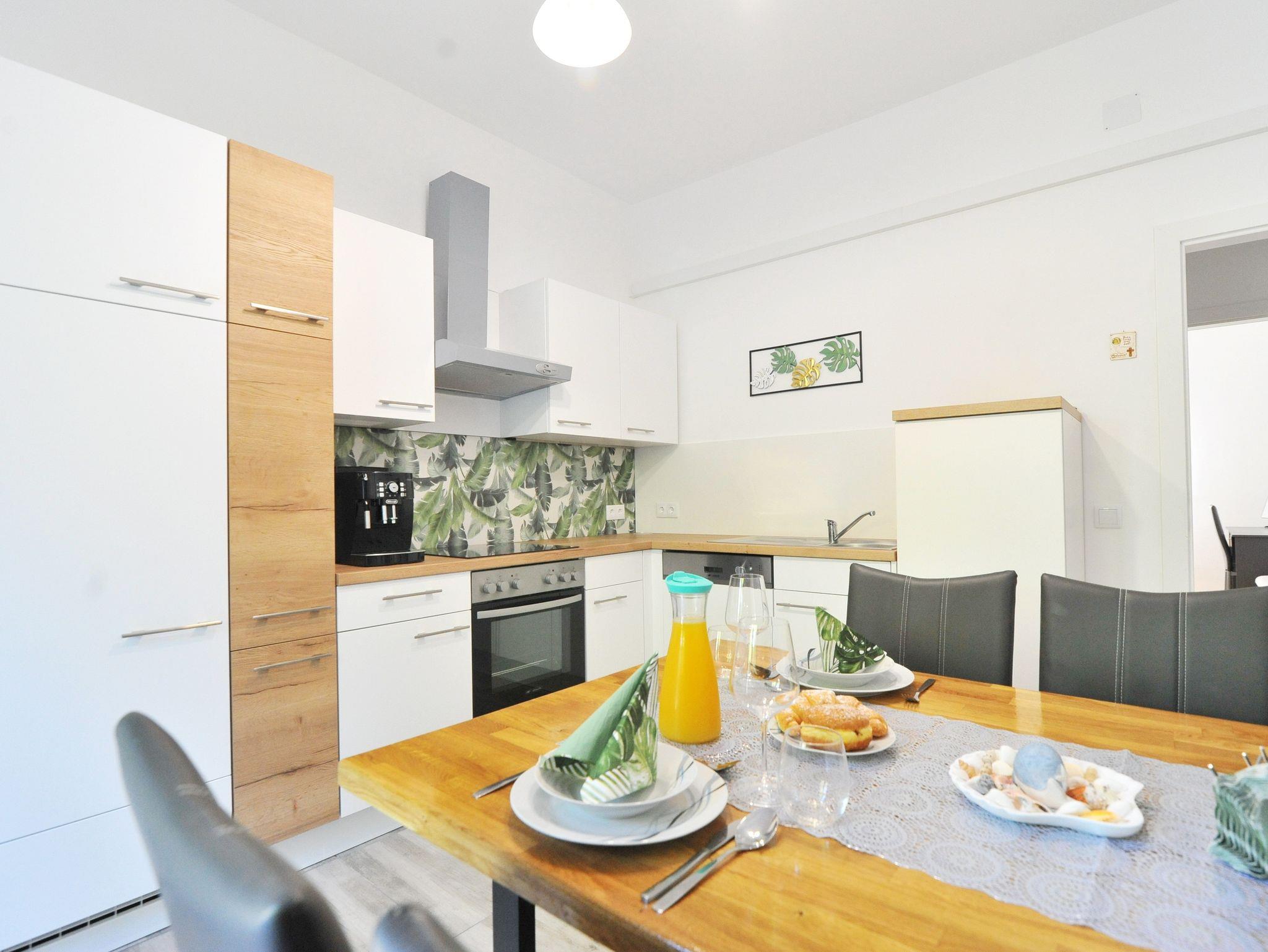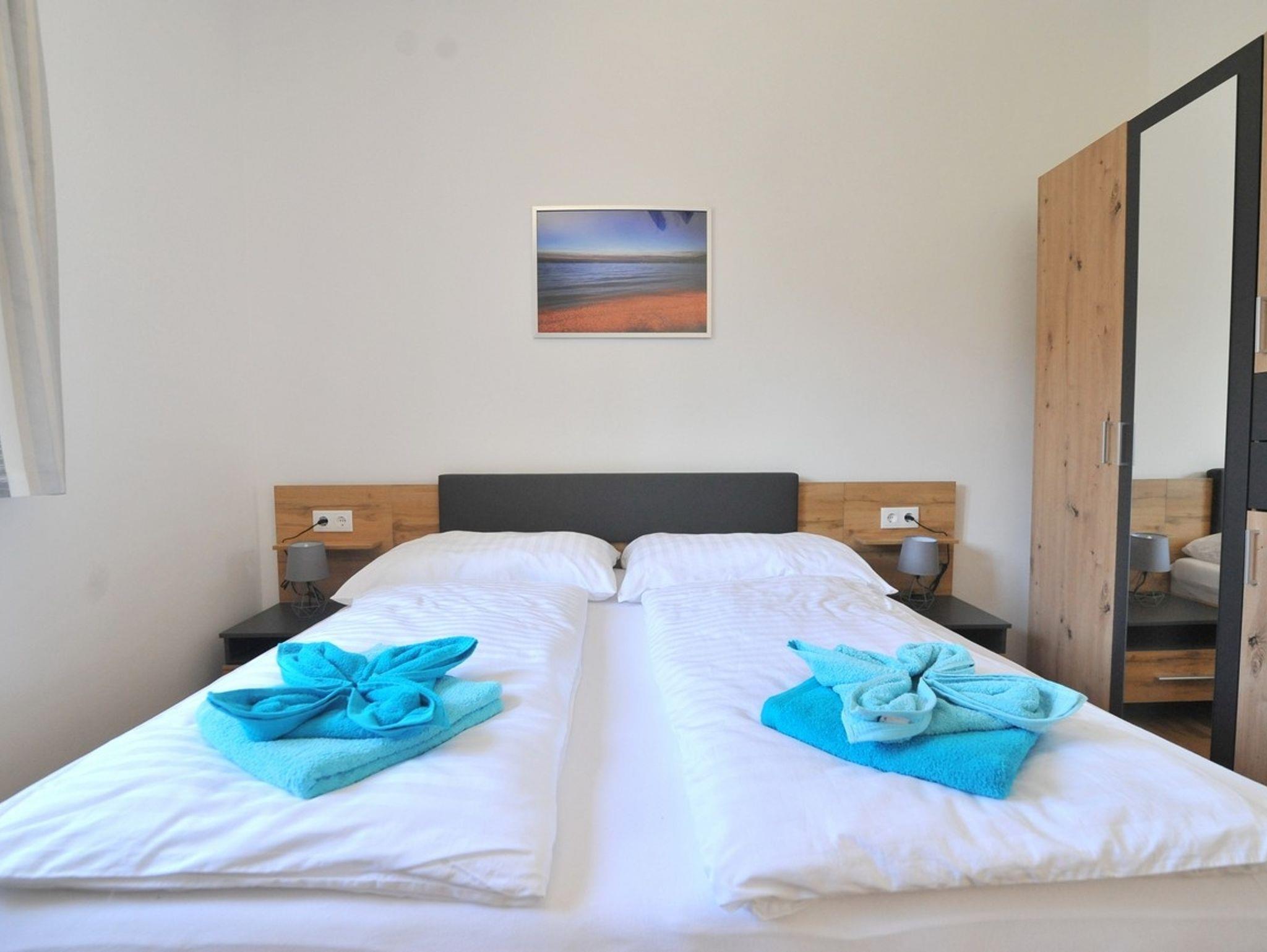 Ferienwohnung bietet Platz für 6 Gäste. Die Betten sind in Schlafzimmern, die es 3 gibt, innerhalb einer Gesamtfläche von 64m2, angeordnet. Die Gäste haben eine eigene Terrasse zur Verfügung, auf der sie in warmen Sommernächten genießen können. Es ist erlaubt, Speisen auf dem Gemeinschafts-Grill vorzubereiten. IM PREIS INBEGRIFFEN: Kurtaxe, Endreinigung, Klimatisierung, Parkplatz, Internet, Kinderbett, Föhn. Die Verfügbarkeit zusätzlicher Dienstleistungen in Ihrem reservierten Termin und die Preise derselben (falls nicht aufgeführt) müssen im Voraus überprüft werden. Zusätzliche Dienstleistungen die in der Zahlungsaufforderung nicht aufgeführt sind werden direkt beim Vermieter bezahlt, angenommen der Gast nutzt auch diese. Ermäßigung auf den Grundpreis: Gratistag 14=13 (bei einem Aufenthalt von 14 Tagen oder mehr erhalten Sie einen Gratistag für den Aufenthalt bis 31.12.26).