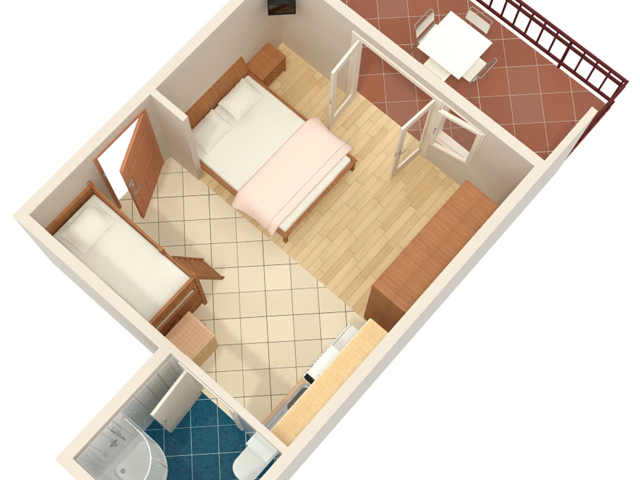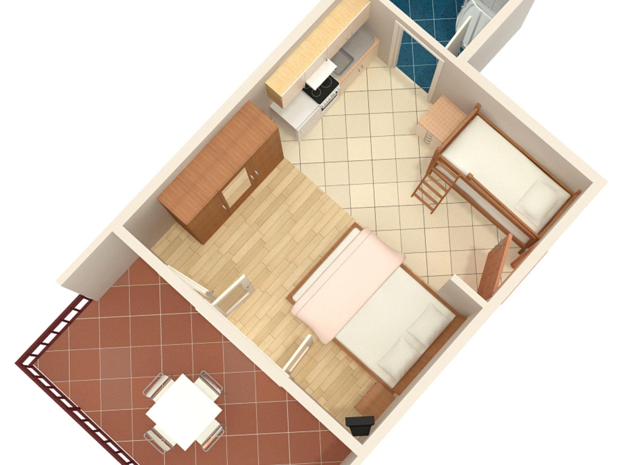 Studio bietet Platz für 4 Gäste. Die Betten sind in Schlafzimmern, die es 1 gibt, innerhalb einer Gesamtfläche von 24m2, angeordnet. Die Gäste haben eine eigene Terrasse zur Verfügung, auf der sie in warmen Sommernächten genießen können. Es ist erlaubt, Speisen auf dem Gemeinschafts-Grill vorzubereiten. IM PREIS INBEGRIFFEN: Kurtaxe, Endreinigung, Klimatisierung, Parkplatz, Internet, Bügeleisen, Sonnenschirm. VERBINDLICHE ZUSÄTZLICHE KOSTEN: Aufzahlung für Kurzaufenthalte (prozentualer Zuschlag pro Nächtigungsanzahl: 30% - 1, 20% - 2, 10% - 3). UNVERBINDLICHE ZUSÄTZLICHE KOSTEN: Wäschewaschen (5,00 € Waschen), Zusatzbett (5,00 € pro Nacht). Die Verfügbarkeit zusätzlicher Dienstleistungen in Ihrem reservierten Termin und die Preise derselben (falls nicht aufgeführt) müssen im Voraus überprüft werden. Zusätzliche Dienstleistungen die in der Zahlungsaufforderung nicht aufgeführt sind werden direkt beim Vermieter bezahlt, angenommen der Gast nutzt auch diese. Ermäßigung auf den Grundpreis: Gratistag 21=19 (bei einem Aufenthalt von 21 Tagen oder mehr erhalten Sie 2 Gratistage für den Aufenthalt bis 31.12.26).