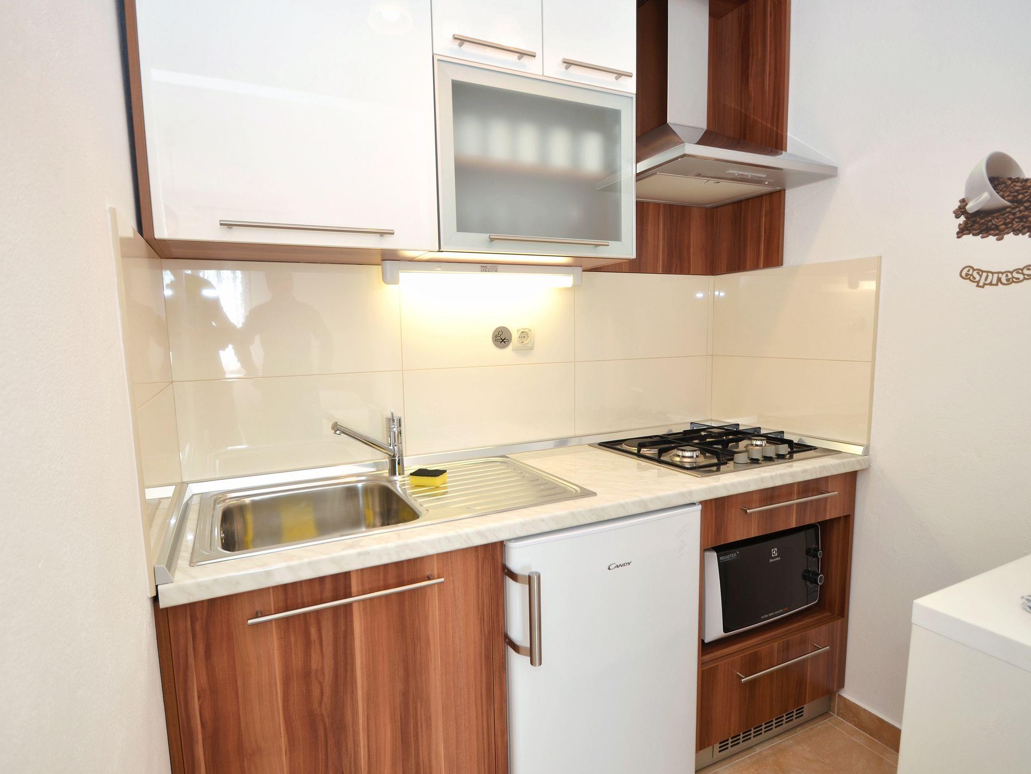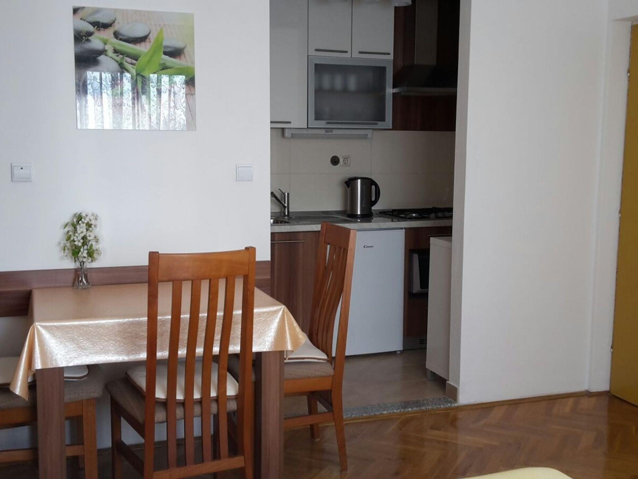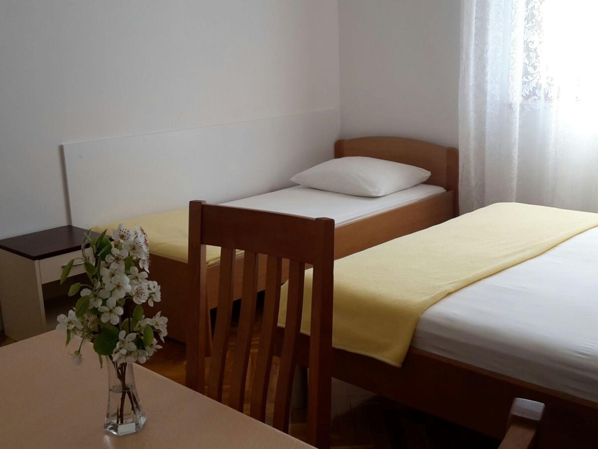 Studio bietet Platz für 3 Gäste. Die Betten sind in Schlafzimmern, die es 1 gibt, innerhalb einer Gesamtfläche von 21m2, angeordnet. Es ist erlaubt, Speisen auf dem Gemeinschafts-Grill vorzubereiten. Die reservierte Unterkunftseinheit hat keinen Balkon und keine Terrasse. IM PREIS INBEGRIFFEN: Kurtaxe, Endreinigung, Parkplatz, Internet, Wäschewaschen, Bootsanlegeplatz, Kinderbett, Bügeleisen, Bügelbrett. VERBINDLICHE ZUSÄTZLICHE KOSTEN: Aufzahlung für Kurzaufenthalte (prozentualer Zuschlag pro Nächtigungsanzahl: 30% - 1, 20% - 2, 10% - 3). Die Verfügbarkeit zusätzlicher Dienstleistungen in Ihrem reservierten Termin und die Preise derselben (falls nicht aufgeführt) müssen im Voraus überprüft werden. Zusätzliche Dienstleistungen die in der Zahlungsaufforderung nicht aufgeführt sind werden direkt beim Vermieter bezahlt, angenommen der Gast nutzt auch diese. Ermäßigung auf den Grundpreis: Gratistag 14=13 (bei einem Aufenthalt von 14 Tagen oder mehr erhalten Sie einen Gratistag für den Aufenthalt bis 31.12.26).