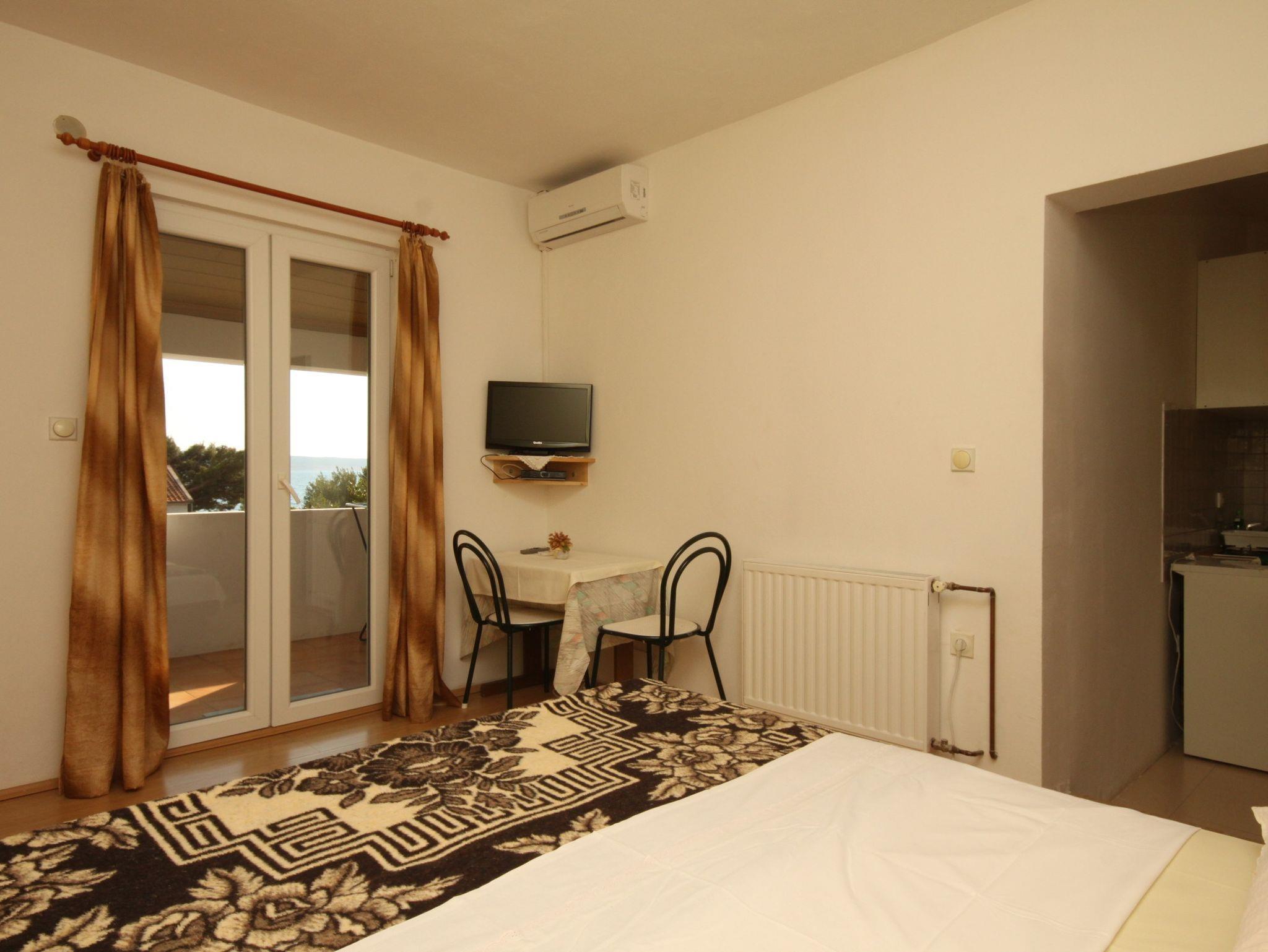 Studio bietet Platz für 2 Gäste. Die Betten sind in Schlafzimmern, die es 1 gibt, innerhalb einer Gesamtfläche von 18m2, angeordnet. Die Gäste haben eine eigene Terrasse zur Verfügung, auf der sie in warmen Sommernächten genießen können. Das Studio-Apartment bietet Meerblick. Es ist erlaubt, Speisen auf dem Gemeinschafts-Grill vorzubereiten. IM PREIS INBEGRIFFEN: Kurtaxe, Endreinigung, Klimatisierung, Parkplatz, Internet, Wäschewaschen. VERBINDLICHE ZUSÄTZLICHE KOSTEN: Aufzahlung für Kurzaufenthalte (prozentualer Zuschlag pro Nächtigungsanzahl: 30% - 1, 20% - 2, 10% - 3). UNVERBINDLICHE ZUSÄTZLICHE KOSTEN: Frühstück (10,00 €, 50% Nachlass für Kinder zwischen 4 und 12 Jahren, Kinder bis 4 Jahre sind frei.), Halbpension (26,00 €, 50% Nachlass für Kinder zwischen 4 und 12 Jahren, Kinder bis 4 Jahre sind frei.). Die Verfügbarkeit zusätzlicher Dienstleistungen in Ihrem reservierten Termin und die Preise derselben (falls nicht aufgeführt) müssen im Voraus überprüft werden. Zusätzliche Dienstleistungen die in der Zahlungsaufforderung nicht aufgeführt sind werden direkt beim Vermieter bezahlt, angenommen der Gast nutzt auch diese.