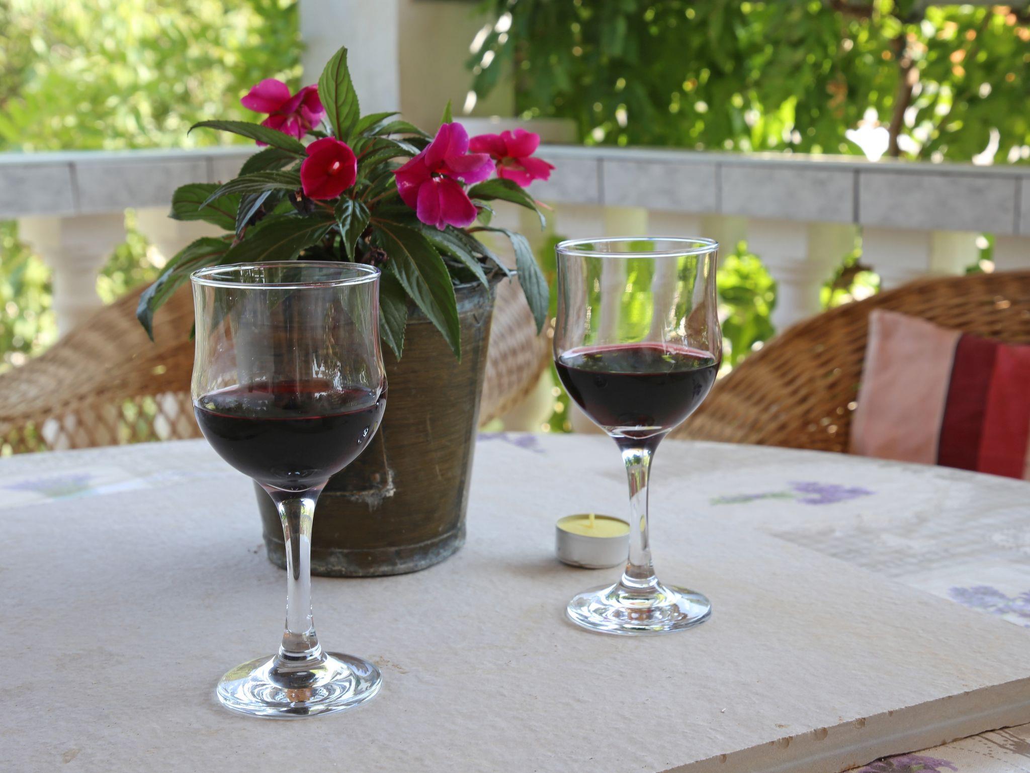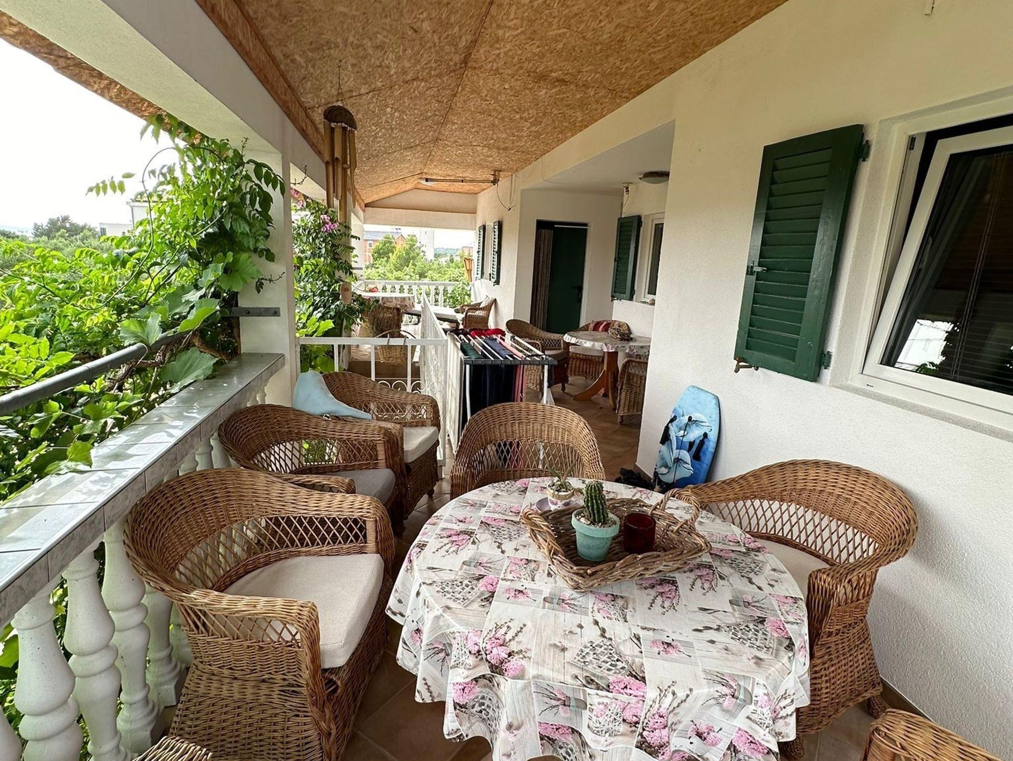 Umgebung des Objekts (Ordentlich), Hof (150m2, Sitzbereich), Parkplatz (Anzahl der Parkplätze: 9, Entfernung vom Objekt: im Hof), Grill: gemeinsam, WiFi Internet, Wäschewaschen, Föhn, Bügeleisen, Bügelbrett, Kinderbett