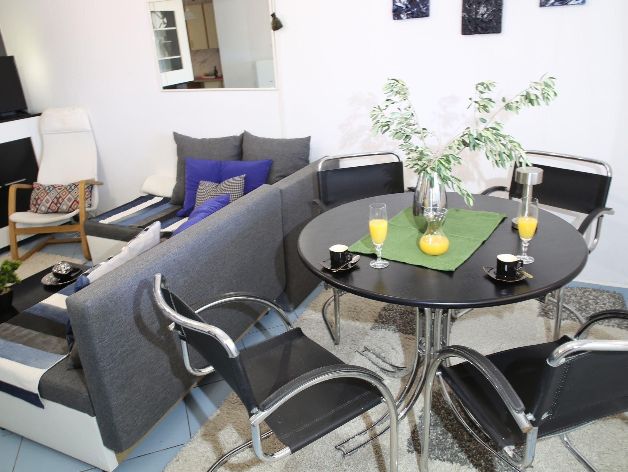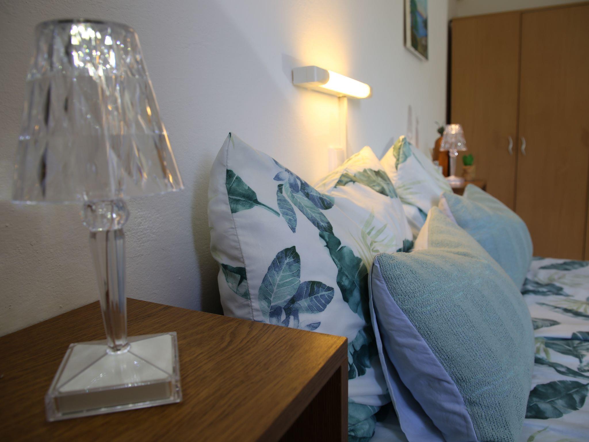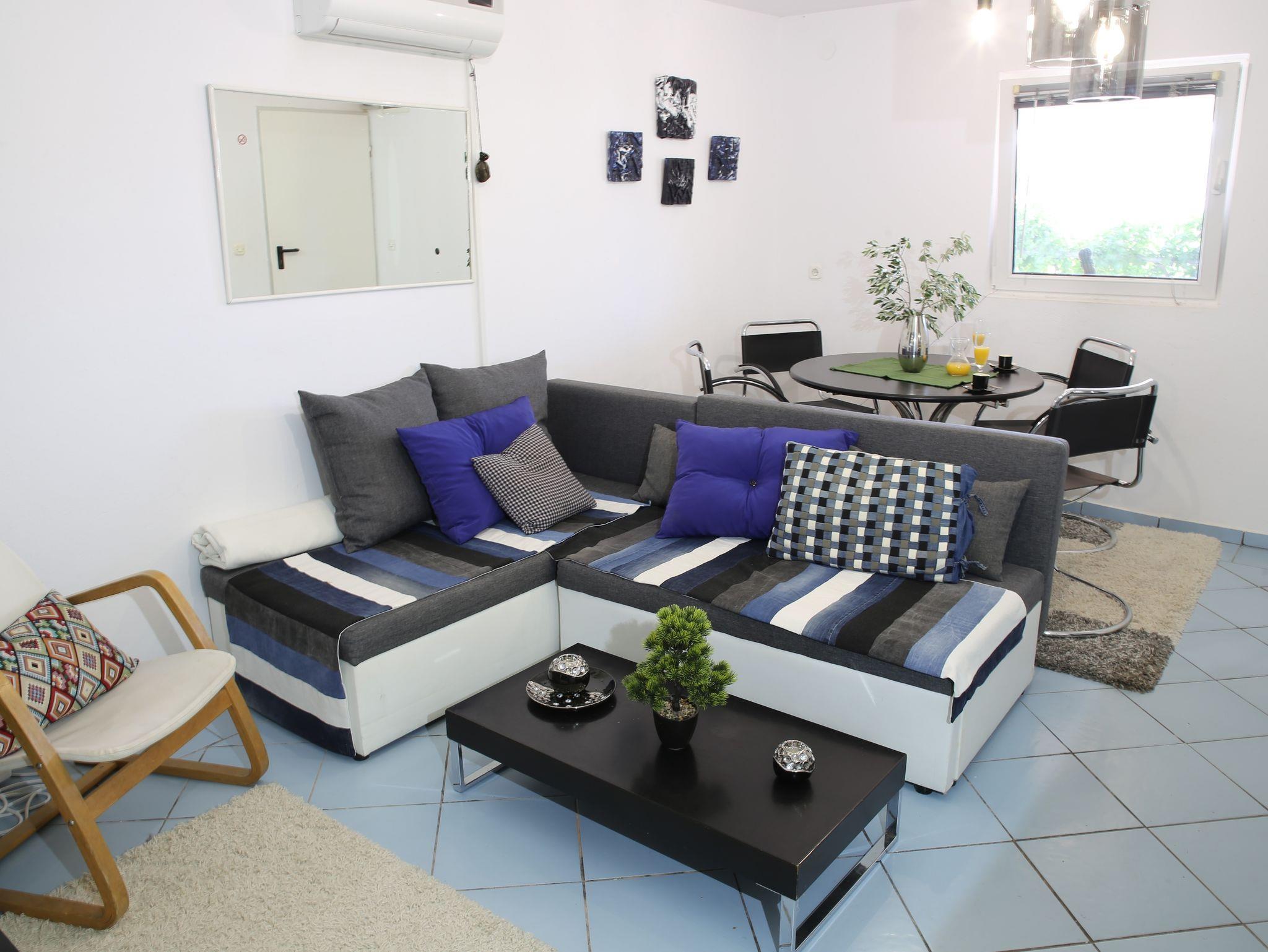 Ferienwohnung bietet Platz für 4 Gäste. Die Betten sind in Schlafzimmern, die es 1 gibt, und in Wohnzimmer, innerhalb einer Gesamtfläche von 48m2, angeordnet. Die Gäste haben eine eigene Terrasse zur Verfügung, auf der sie in warmen Sommernächten genießen können. Es ist erlaubt, Speisen auf dem Gemeinschafts-Grill vorzubereiten. In der Unterkunftseinheit besteht die Möglichkeit des Mitbringens von Haustieren, und die Dienstleistung ist im Preis der Unterkunft enthalten. IM PREIS INBEGRIFFEN: Kurtaxe, Endreinigung, Klimatisierung, Parkplatz, Internet, Wäschewaschen, Haustiere, Kinderbett, Bügeleisen, Bügelbrett, Föhn. VERBINDLICHE ZUSÄTZLICHE KOSTEN: Aufzahlung für Kurzaufenthalte (prozentualer Zuschlag pro Nächtigungsanzahl: 30% - 1, 20% - 2, 10% - 3). UNVERBINDLICHE ZUSÄTZLICHE KOSTEN: Zusatzbett (5,00 € pro Nacht). Die Verfügbarkeit zusätzlicher Dienstleistungen in Ihrem reservierten Termin und die Preise derselben (falls nicht aufgeführt) müssen im Voraus überprüft werden. Zusätzliche Dienstleistungen die in der Zahlungsaufforderung nicht aufgeführt sind werden direkt beim Vermieter bezahlt, angenommen der Gast nutzt auch diese. Ermäßigung auf den Grundpreis: Gratistag 14=13 (bei einem Aufenthalt von 14 Tagen oder mehr erhalten Sie einen Gratistag für den Aufenthalt bis 31.12.26).