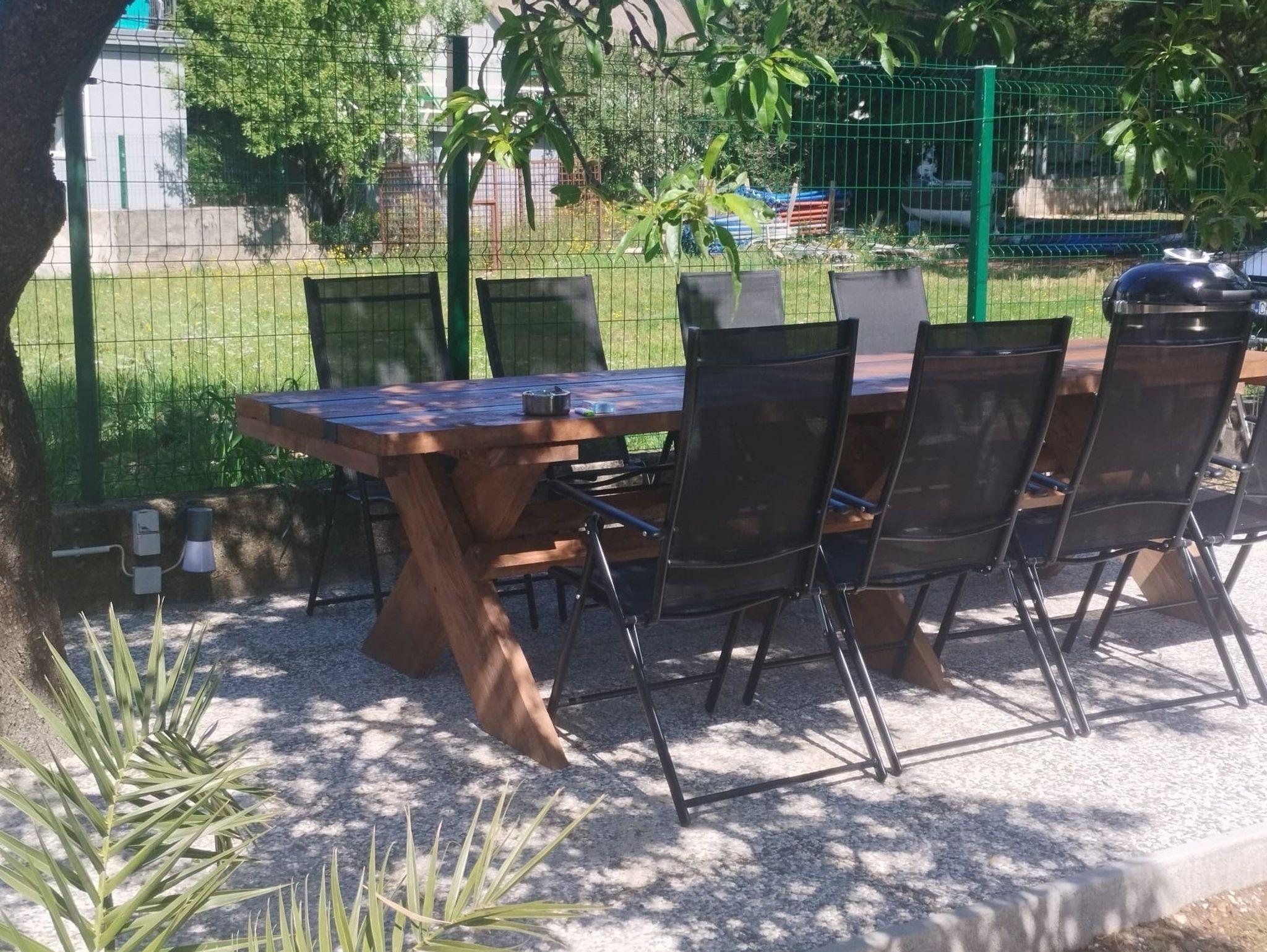 Umgebung des Objekts (Ordentlich), Hof (70m2, Sitzbereich), Parkplatz (Anzahl der Parkplätze: 3, Entfernung vom Objekt: im Hof), WiFi Internet, Föhn, Bügeleisen, Bügelbrett, Tragbarer Grill, Sonnenschirm, Liegestühle, Kinderbett