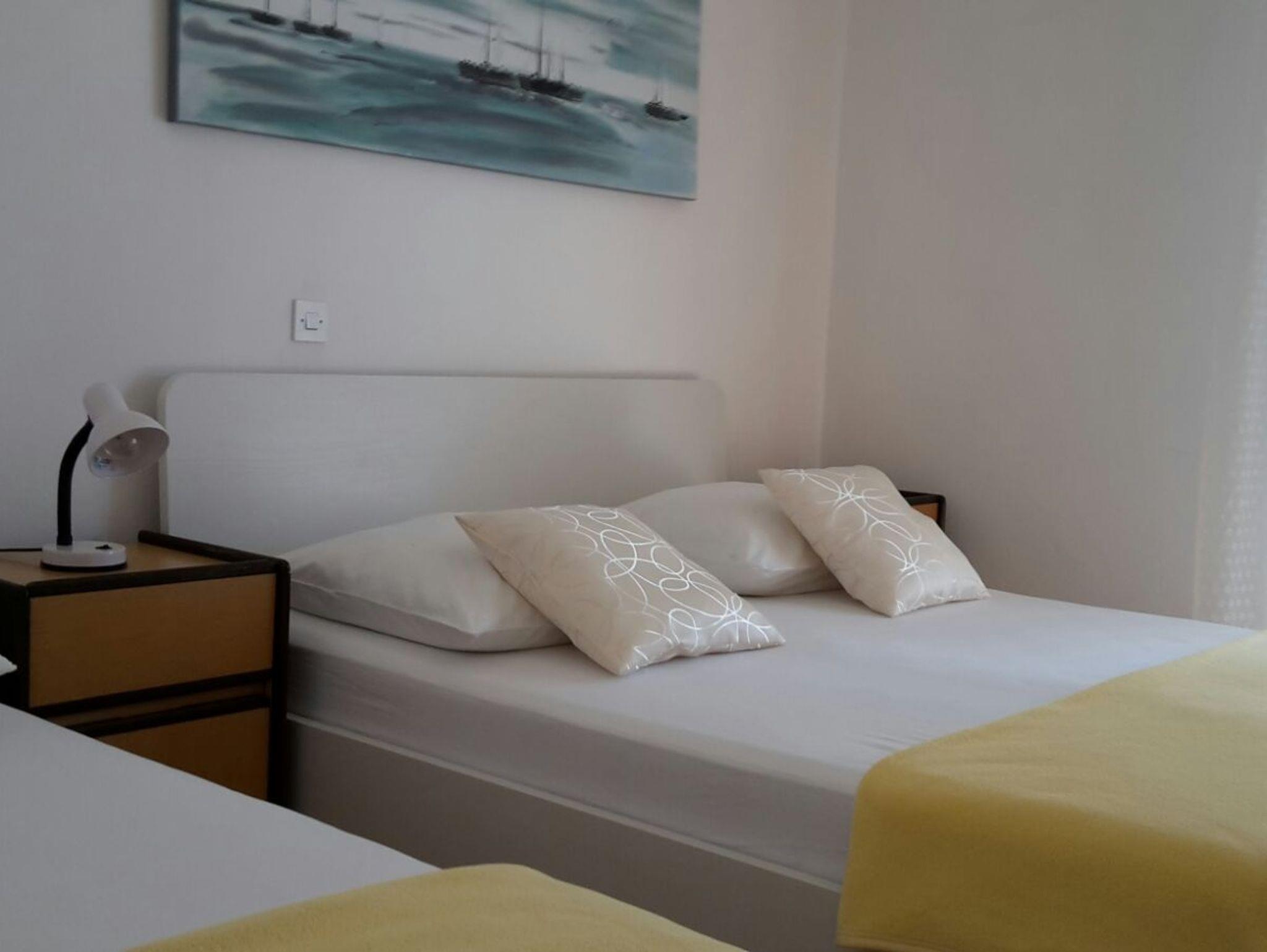 Zimmer bietet Platz für 3 Gäste. Die Betten sind in Schlafzimmern, die es 1 gibt, innerhalb einer Gesamtfläche von 17m2, angeordnet. Die Nutzung einer gemeinsamen Küche ist möglich. Die Gäste haben eine eigene Terrasse zur Verfügung, auf der sie in warmen Sommernächten genießen können. Es ist erlaubt, Speisen auf dem Gemeinschafts-Grill vorzubereiten. Die reservierte Unterkunftseinheit ist ein Zimmer mit eigenem Badezimmer mit der Möglichkeit der Nutzung einer Küche ohne Zuzahlung. IM PREIS INBEGRIFFEN: Kurtaxe, Endreinigung, gemeinsame Küche, Parkplatz, Internet, Wäschewaschen, Bootsanlegeplatz, Kinderbett. VERBINDLICHE ZUSÄTZLICHE KOSTEN: Aufzahlung für Kurzaufenthalte (prozentualer Zuschlag pro Nächtigungsanzahl: 30% - 1, 20% - 2, 10% - 3). Die Verfügbarkeit zusätzlicher Dienstleistungen in Ihrem reservierten Termin und die Preise derselben (falls nicht aufgeführt) müssen im Voraus überprüft werden. Zusätzliche Dienstleistungen die in der Zahlungsaufforderung nicht aufgeführt sind werden direkt beim Vermieter bezahlt, angenommen der Gast nutzt auch diese. Ermäßigung auf den Grundpreis: Gratistag 14=13 (bei einem Aufenthalt von 14 Tagen oder mehr erhalten Sie einen Gratistag für den Aufenthalt bis 31.12.26).